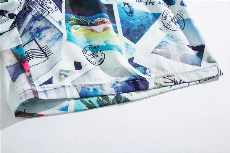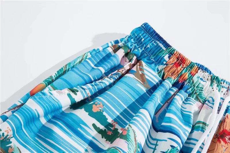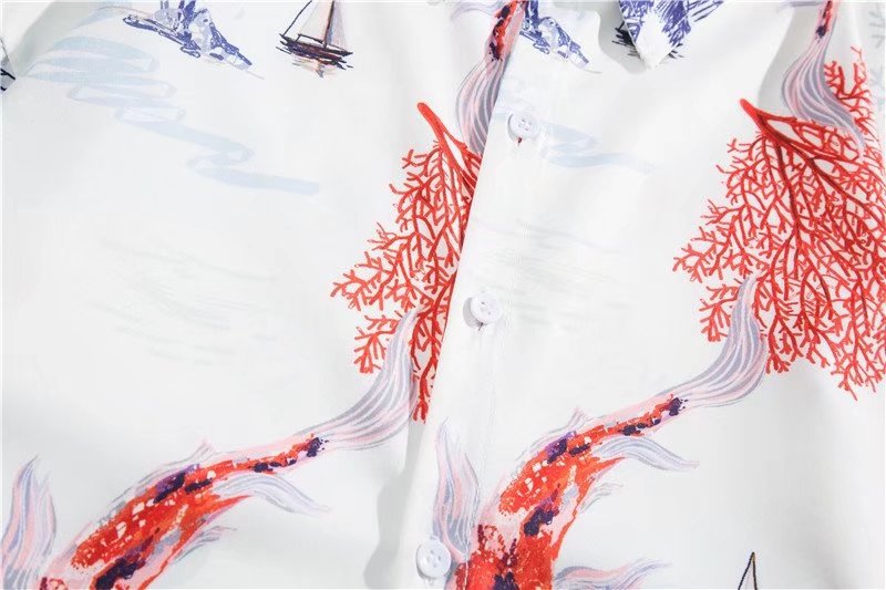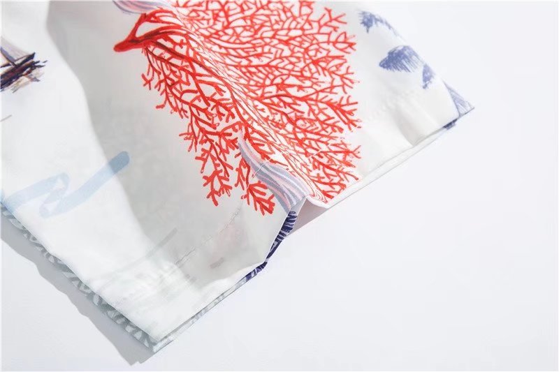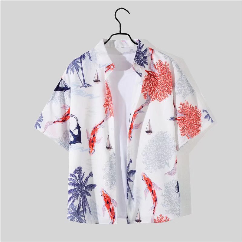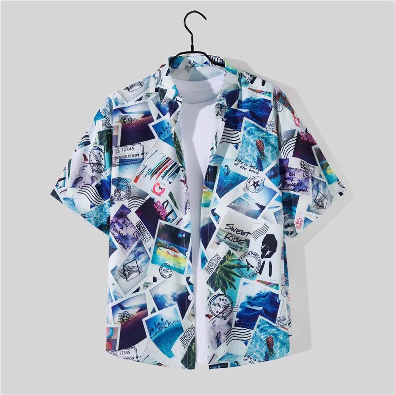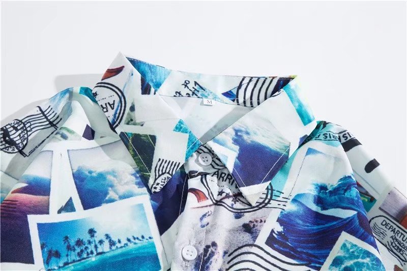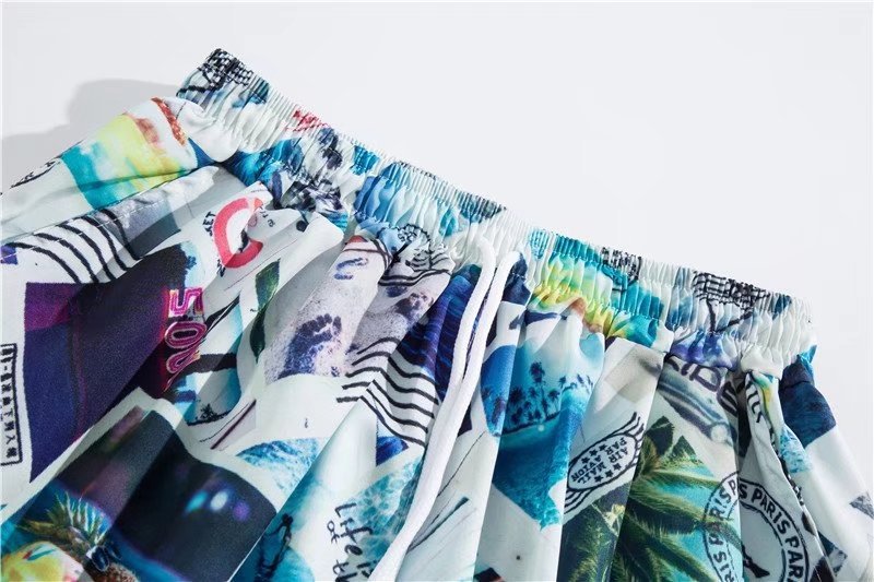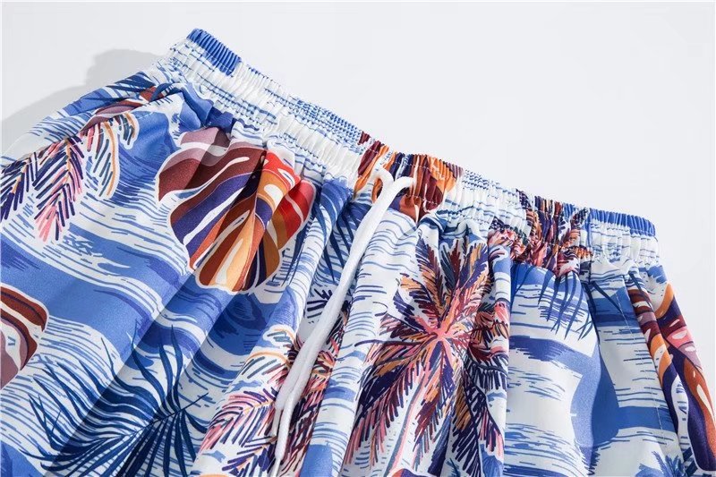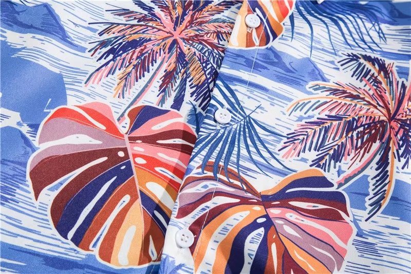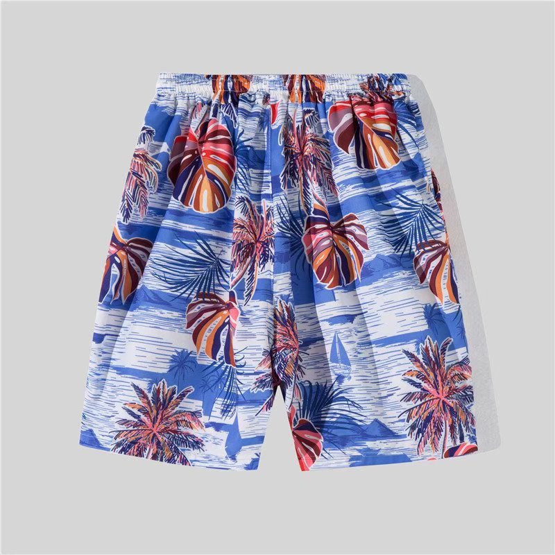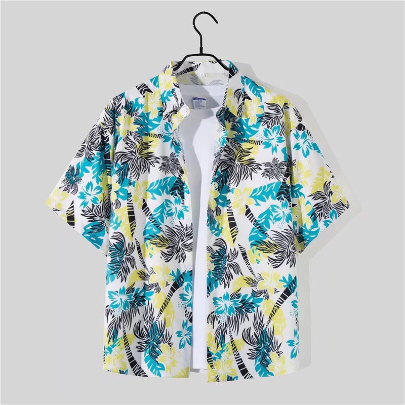 아이스 실크 반팔 꽃 셔츠 세트 남자의 여름 얇은 하와이안 프린트 셔츠 비치 바지 큰 바지 세트 남자