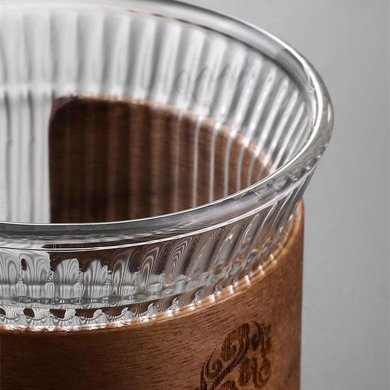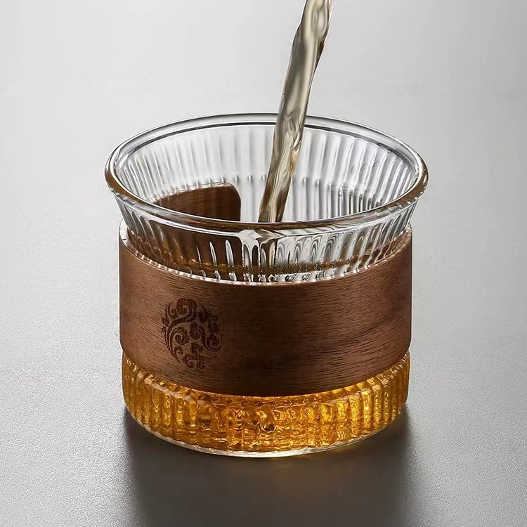 우드 칩 단열 쿵푸 유리 찻잔 맞춤 수직 입자 가공 고 색상 가치 유리 거품 찻잔