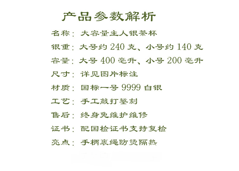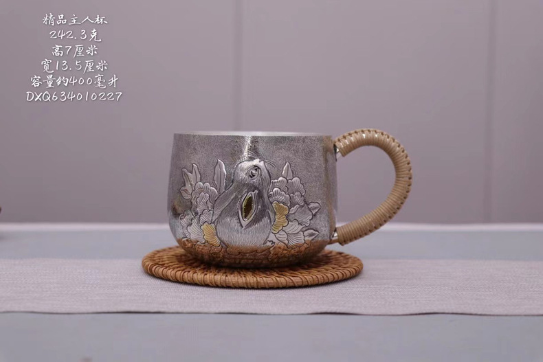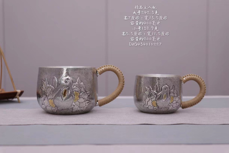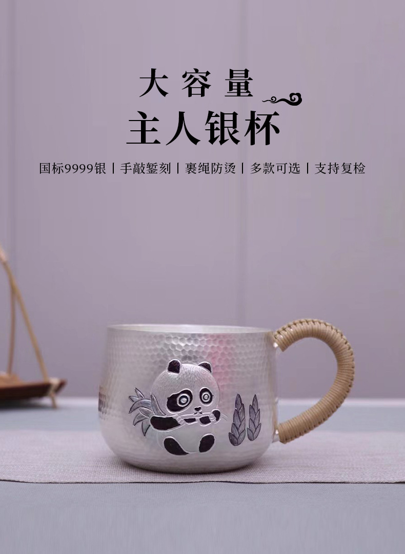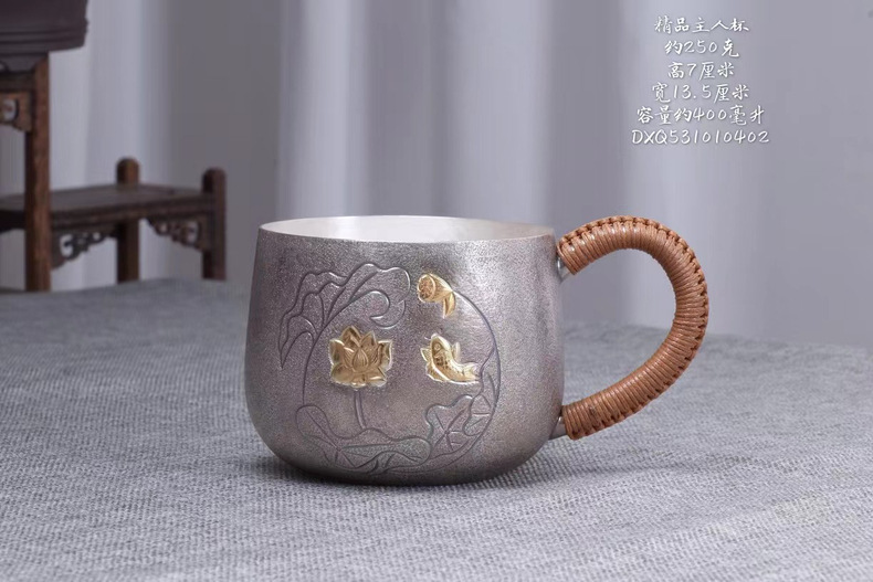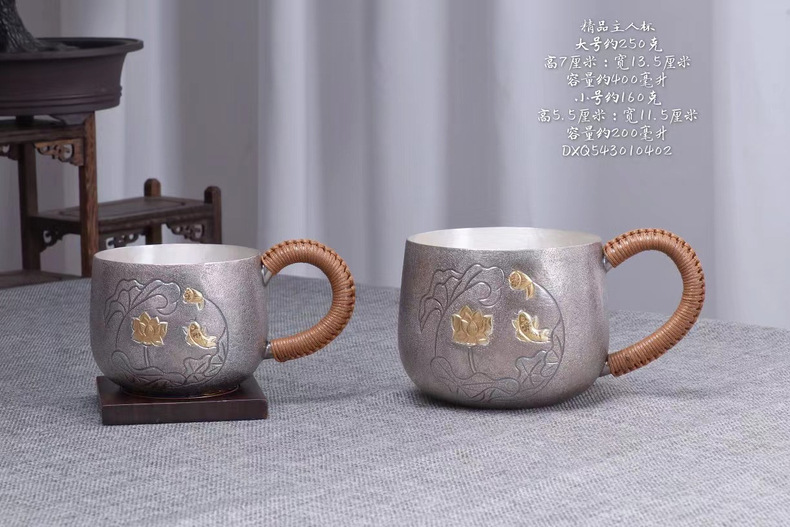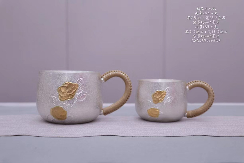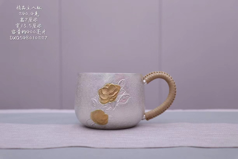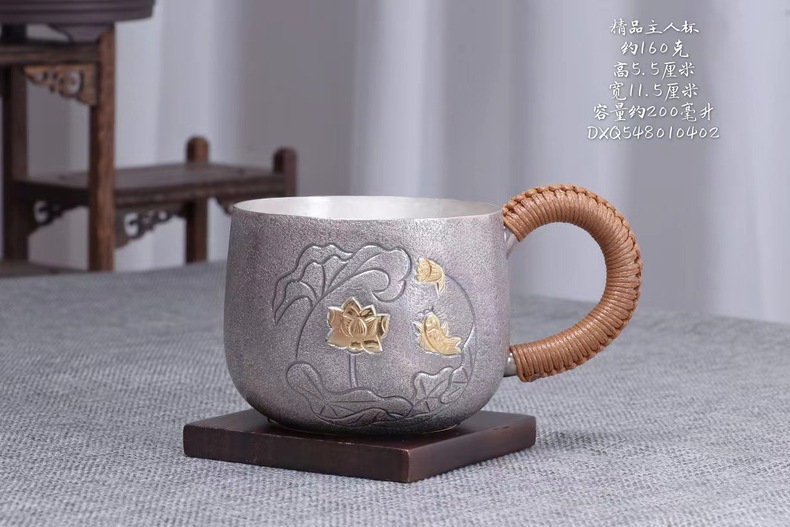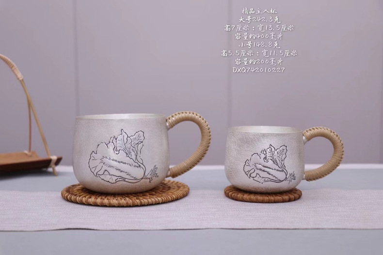 스털링 실버 마스터 컵 찻그릇 999 고급 찻잔 차 시음 컵 한 컵 차 홀더 쿵푸 차 세트 큰 컵 물 컵