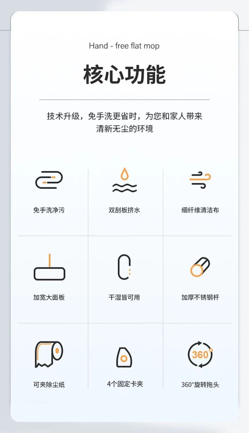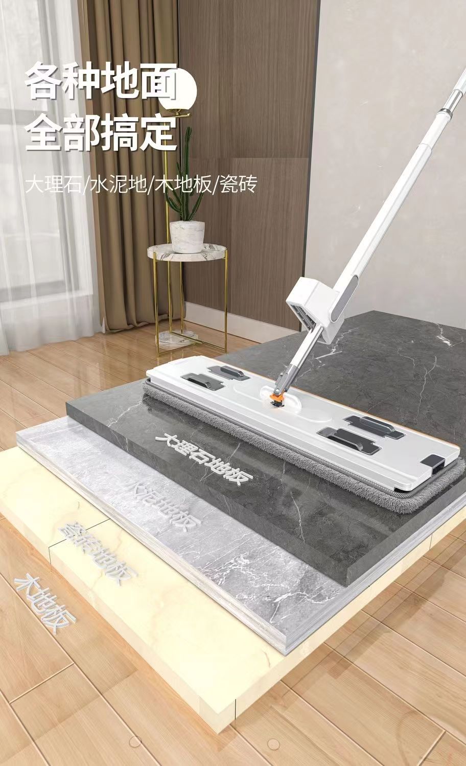 2023 새로운 45*15 와이드 핸즈프리 걸레 가정용 게으른 걸레 깨끗한 대형 소독 천 걸레