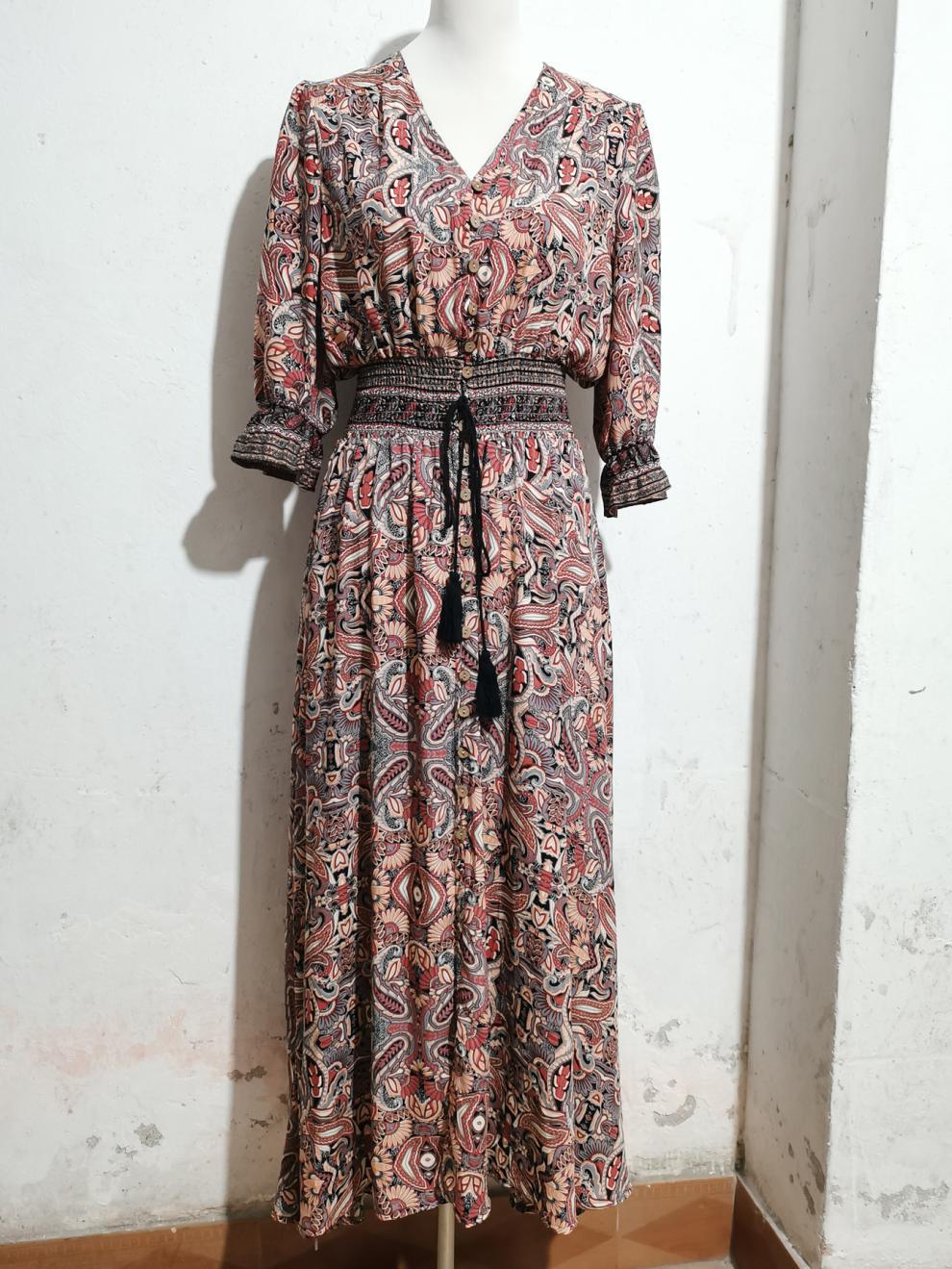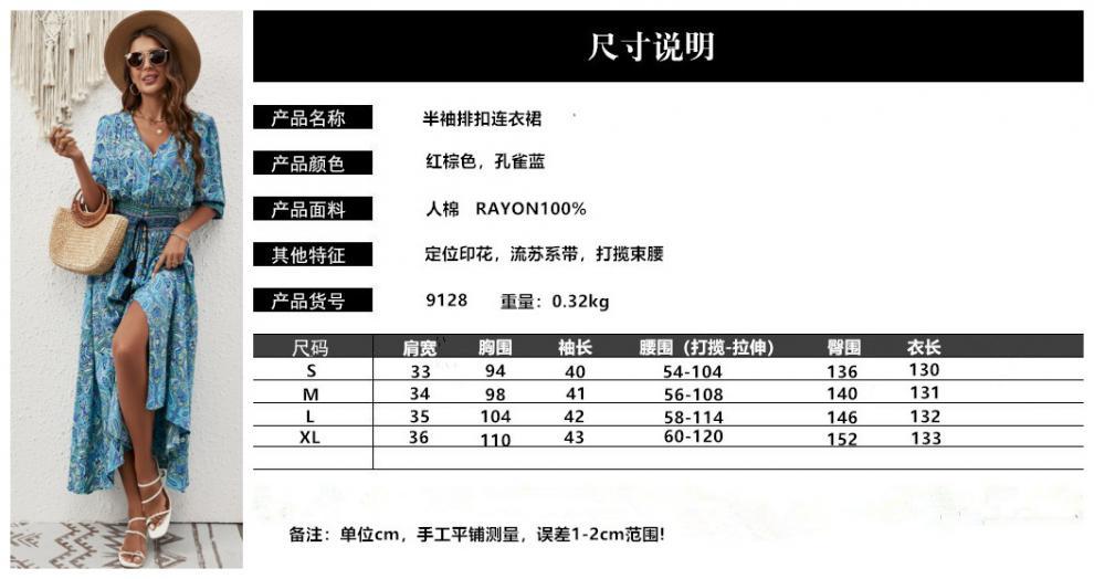 대외 무역 여성 의류 아마존 여름 V-넥 인쇄 벨트 허리 보헤미안 원피스 휴일 브레스트 비치 원피스