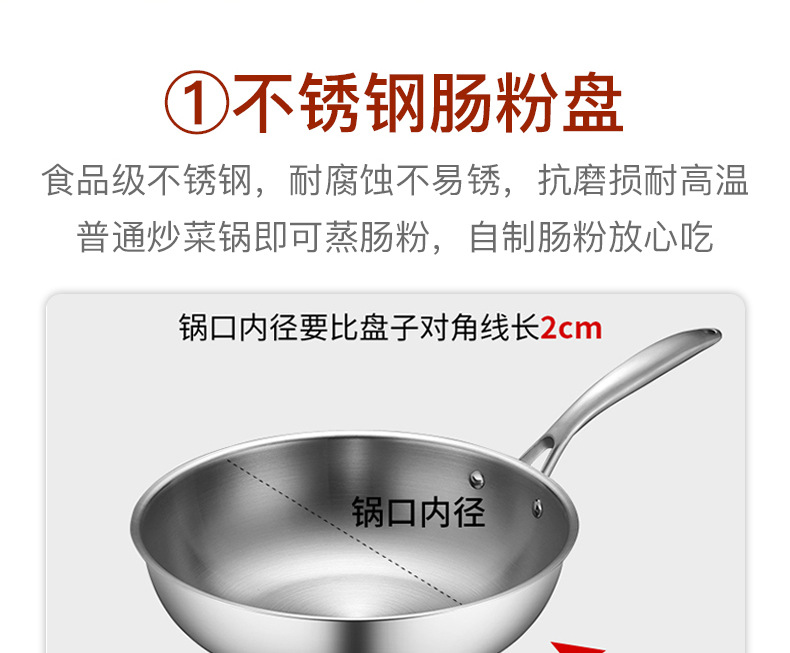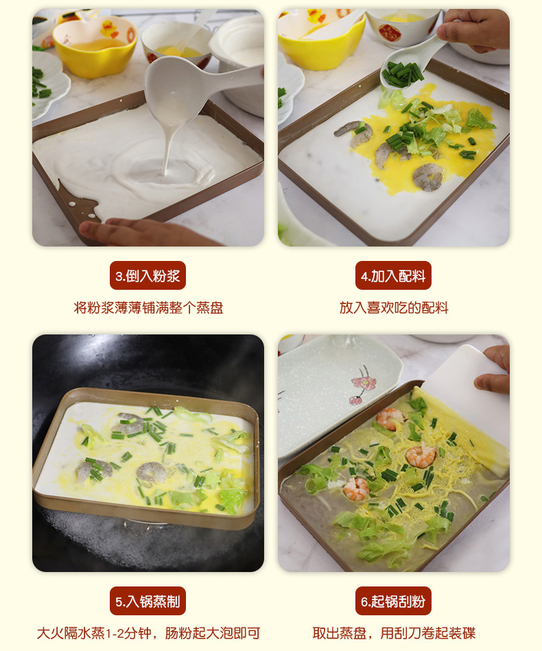 가정용 직사각형 스테인레스 스틸 광동 쌀 창자 찜 접시 세트 도구 자체 제작 광동 쌀 창자 특별 요리