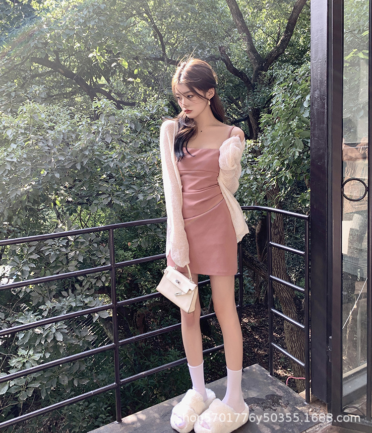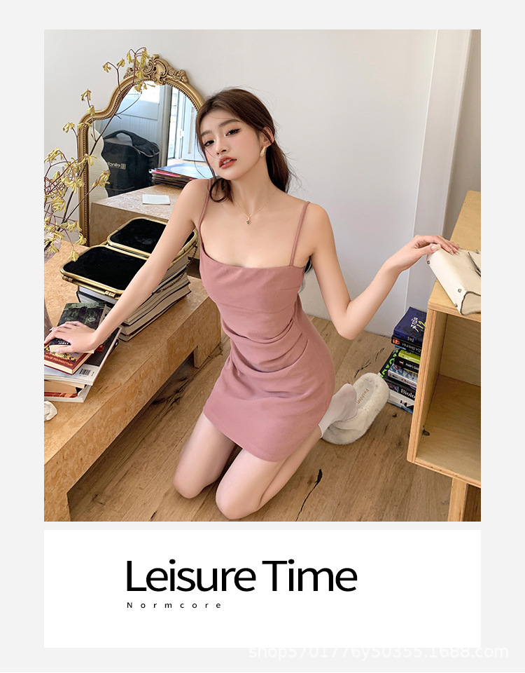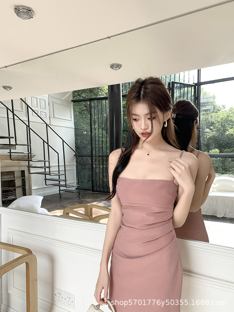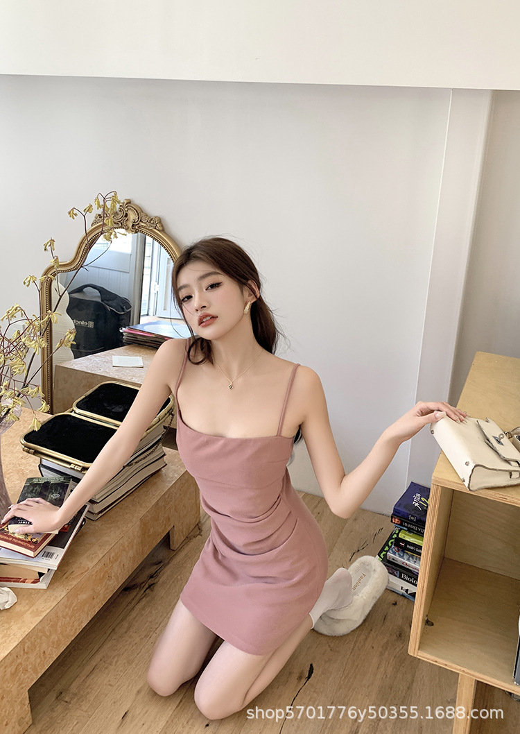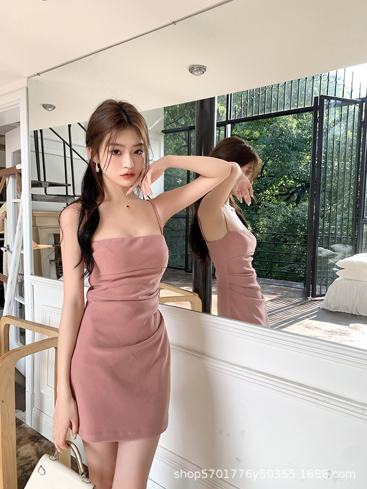 핑크 슬링 원피스 민소매 2023 여름 새로운 스타일 이너웨어 섹시 슬림 핏 힙베이스 스커트 나이 감소 트렌디
