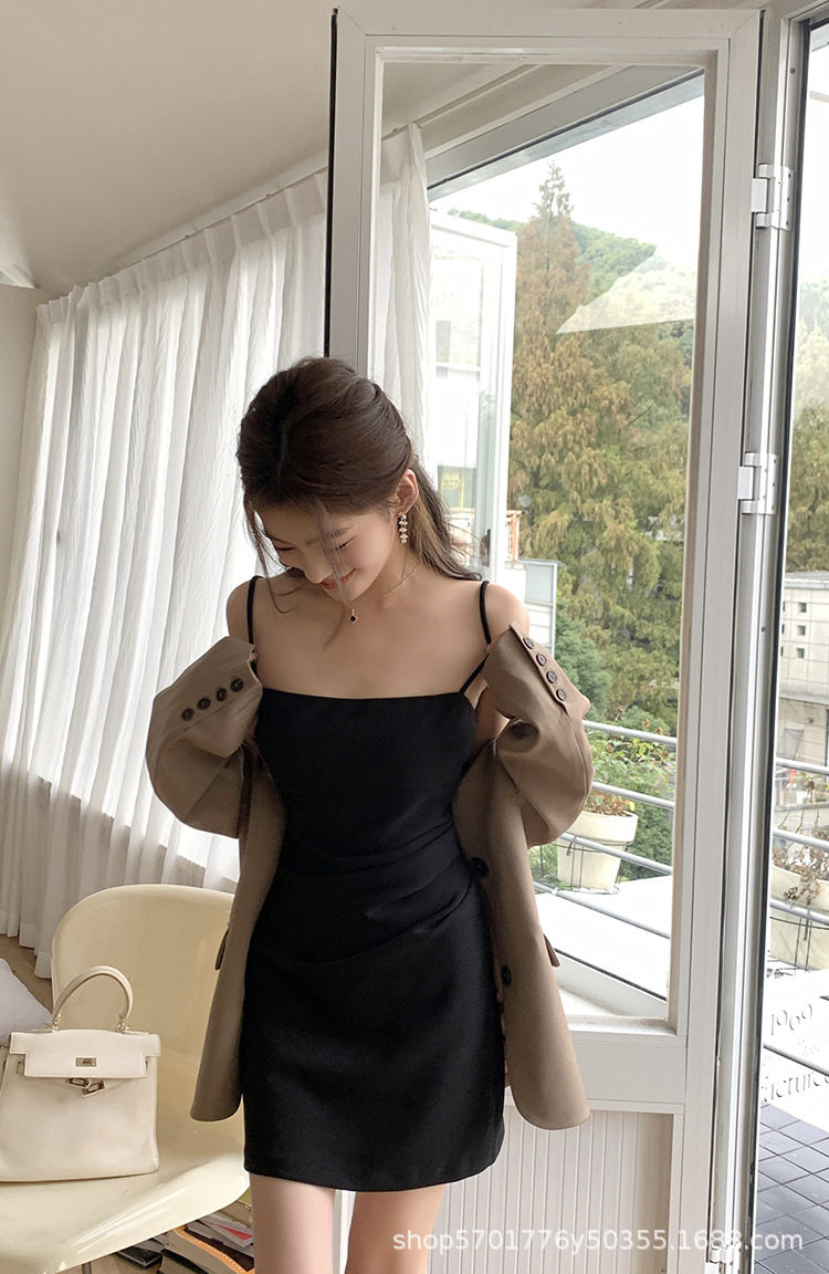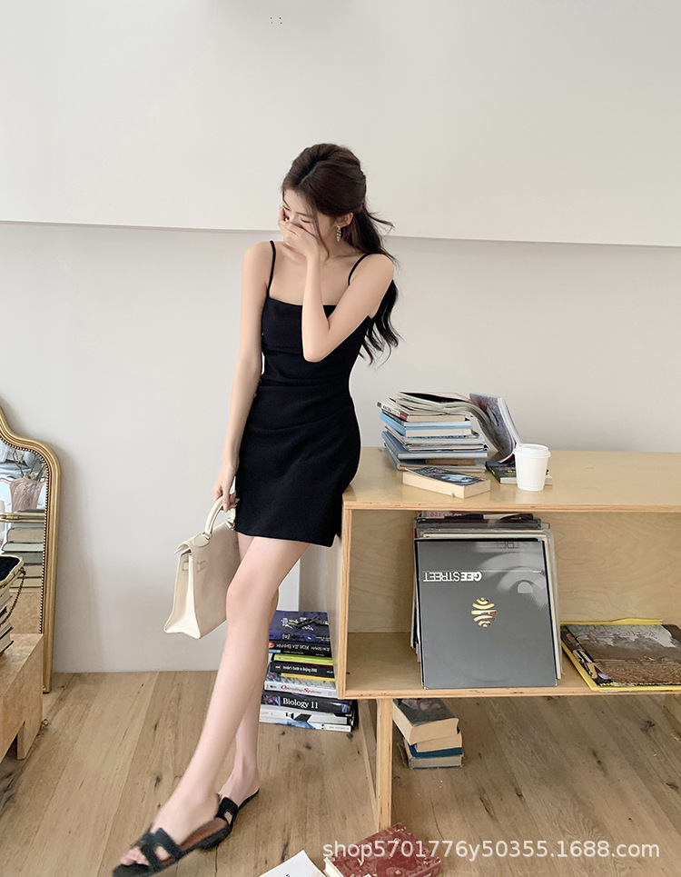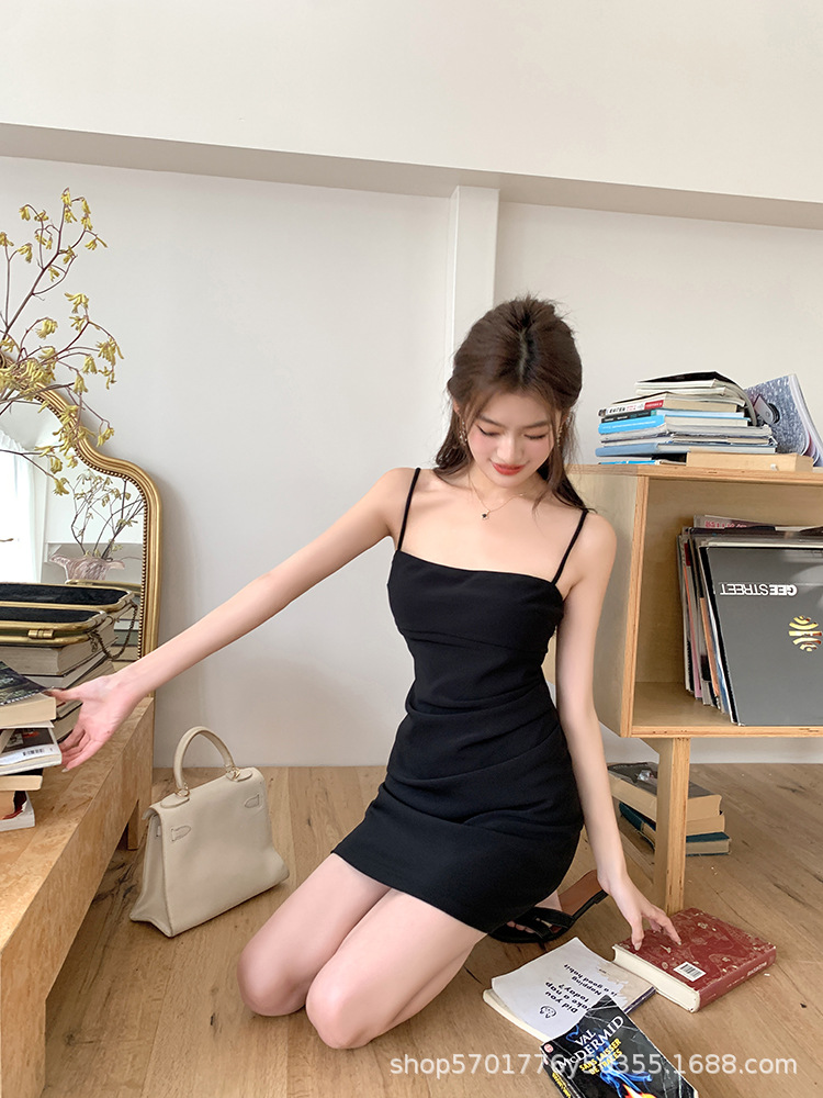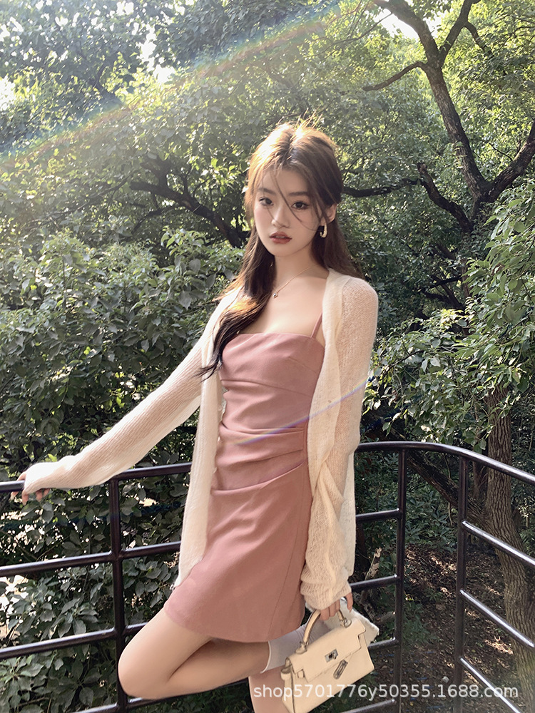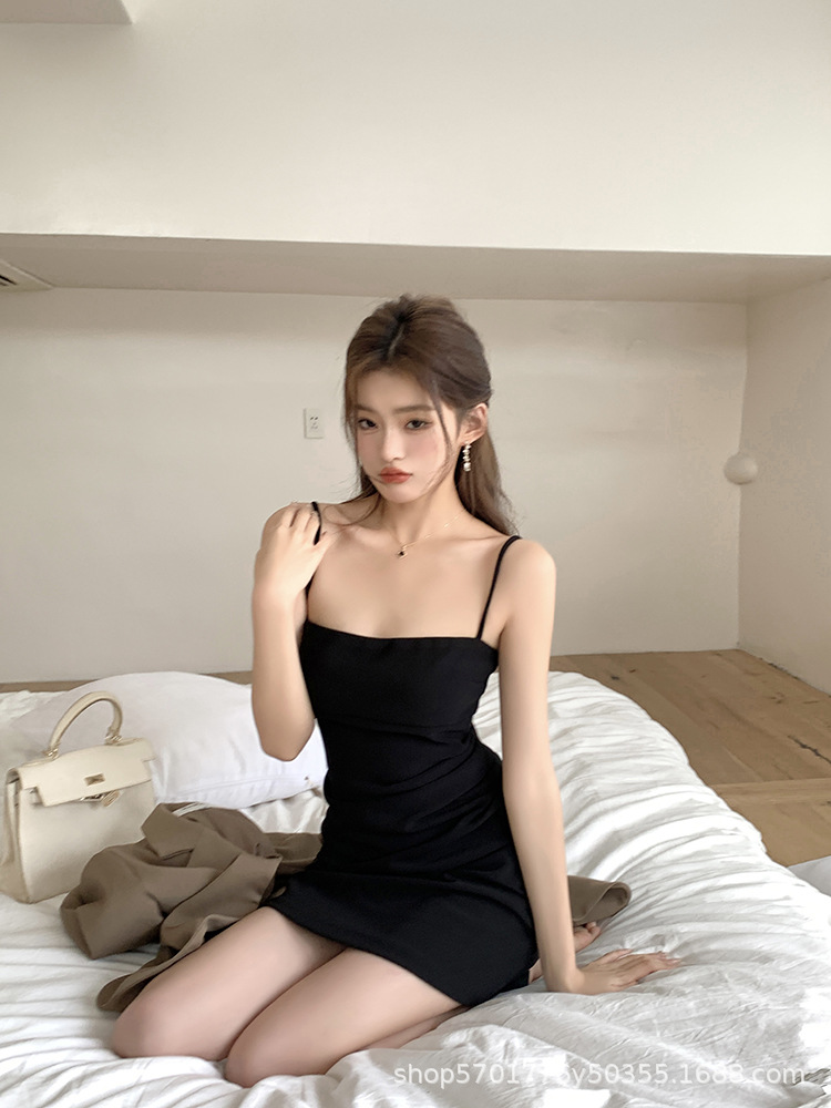 핑크 슬링 원피스 민소매 2023 여름 새로운 스타일 이너웨어 섹시 슬림 핏 힙베이스 스커트 나이 감소 트렌디