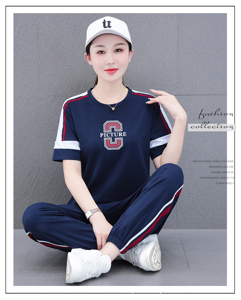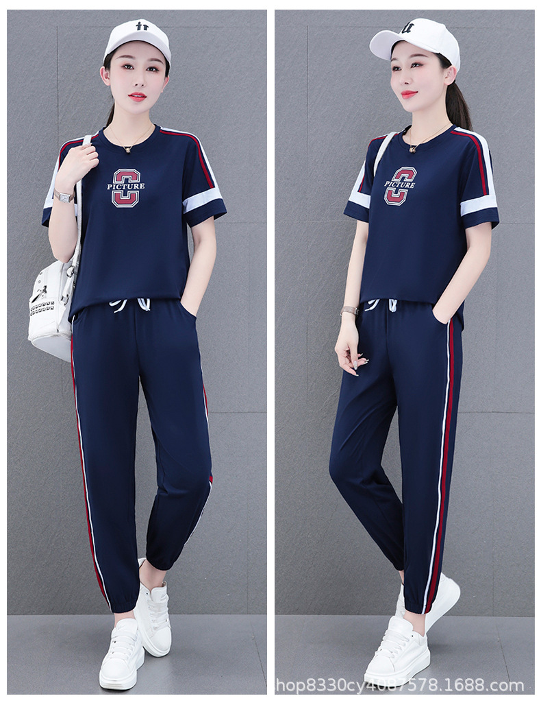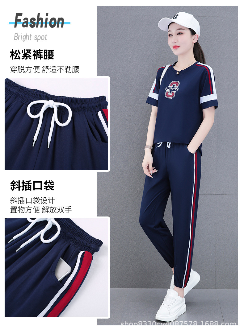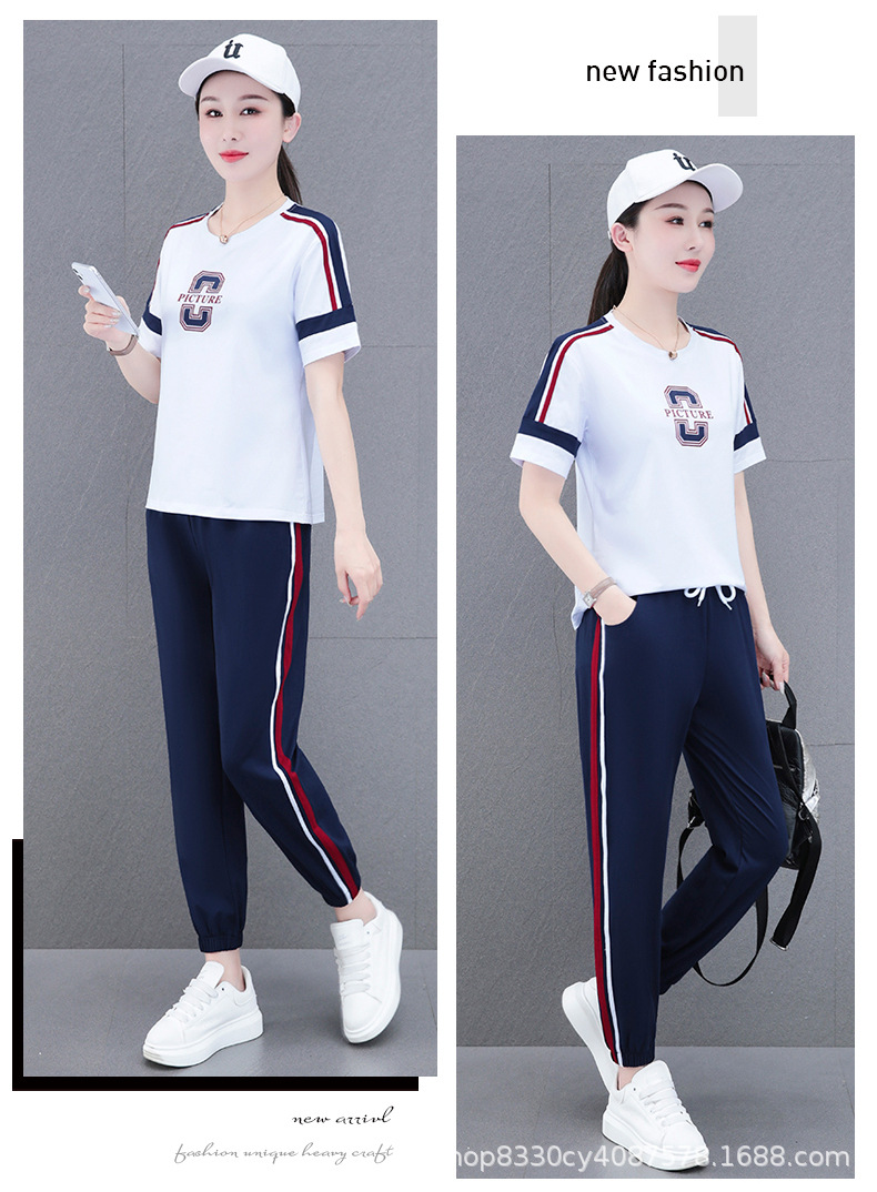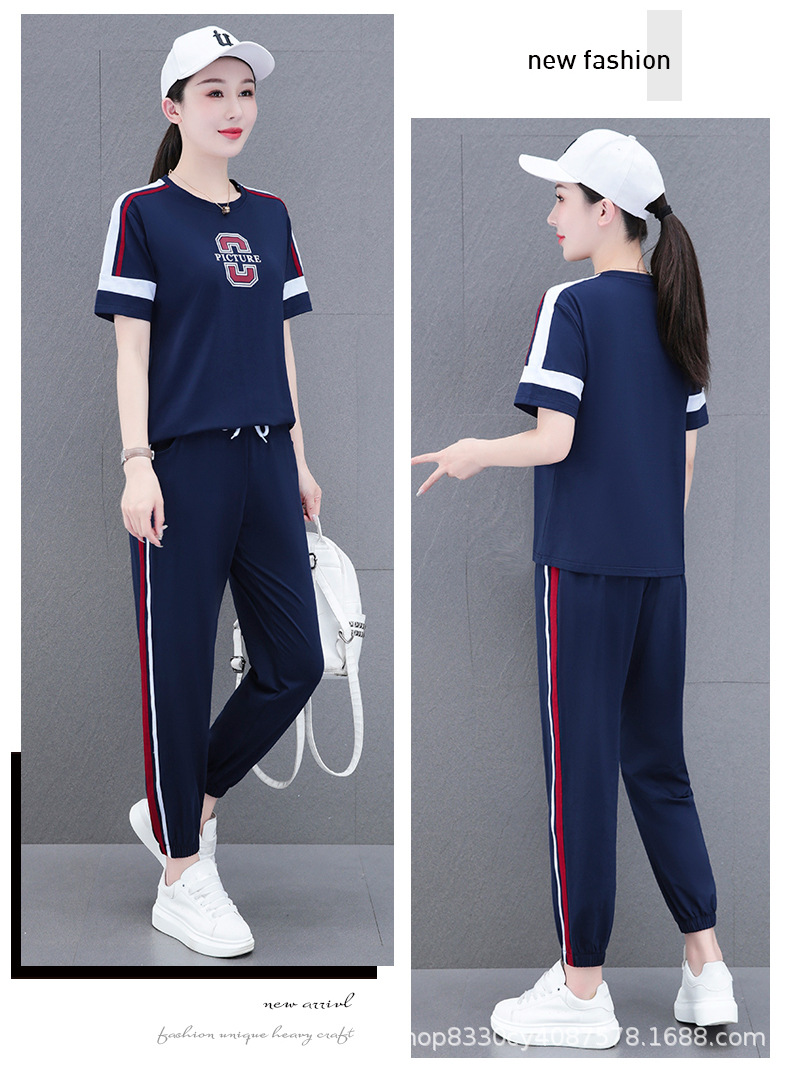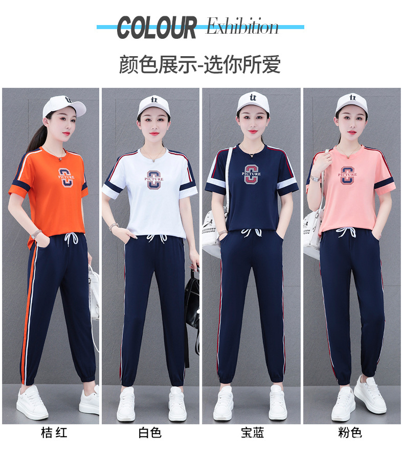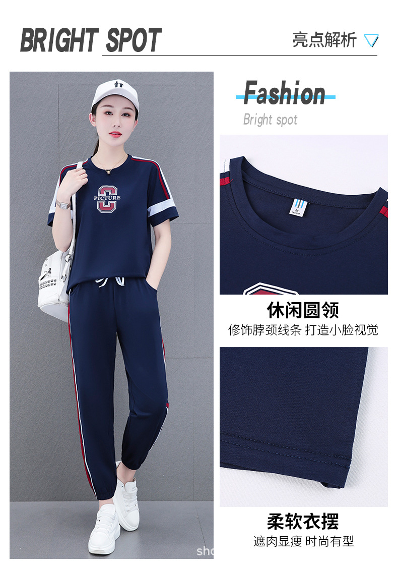 여름 캐주얼 스포츠 반팔 세트 여성용 얇은 유행 나이 감소 플러스 사이즈 세련된 가정복 통기성 러닝 투피스 세트