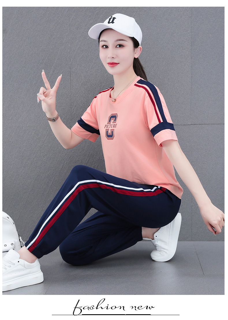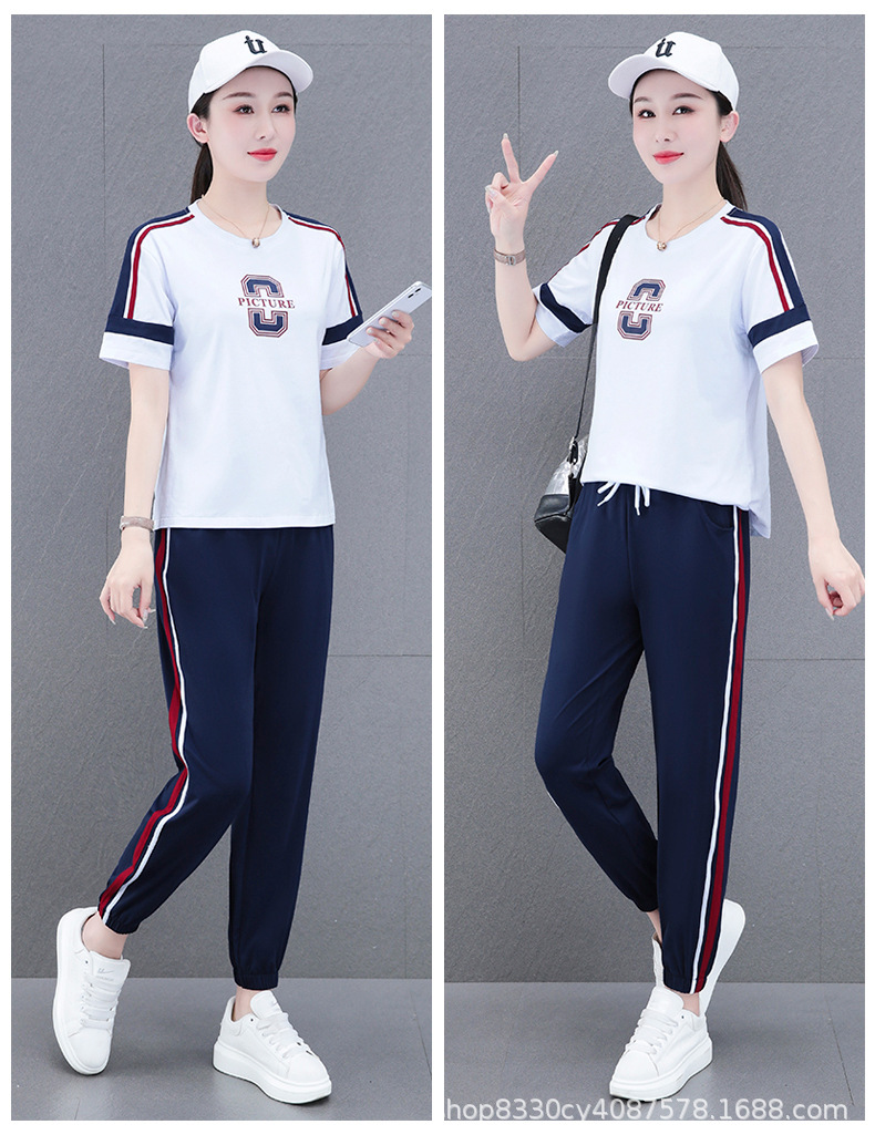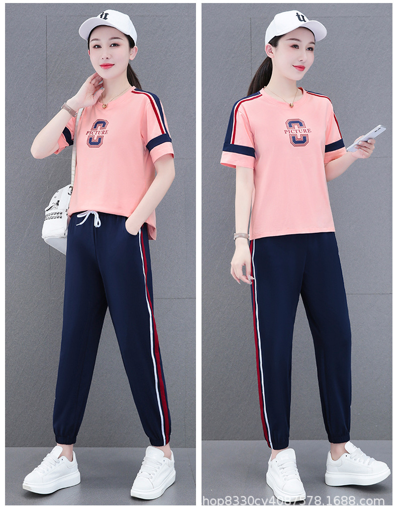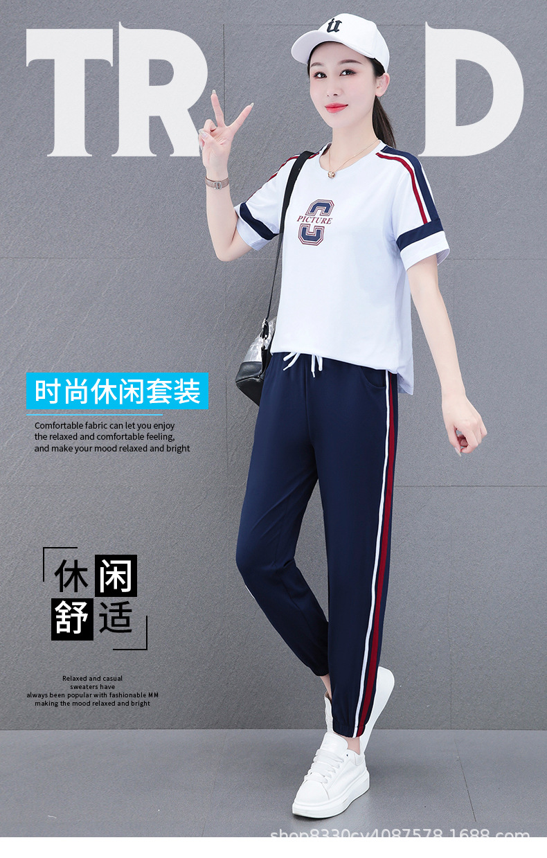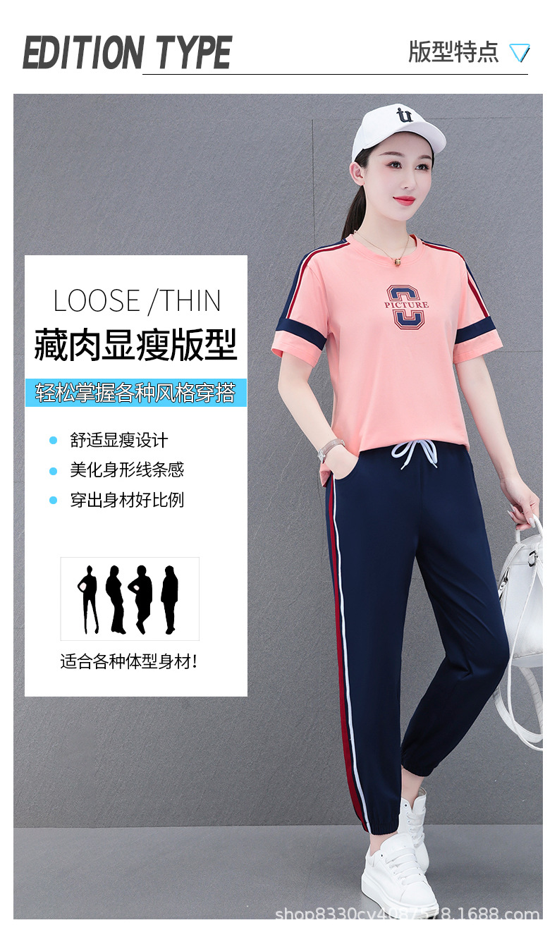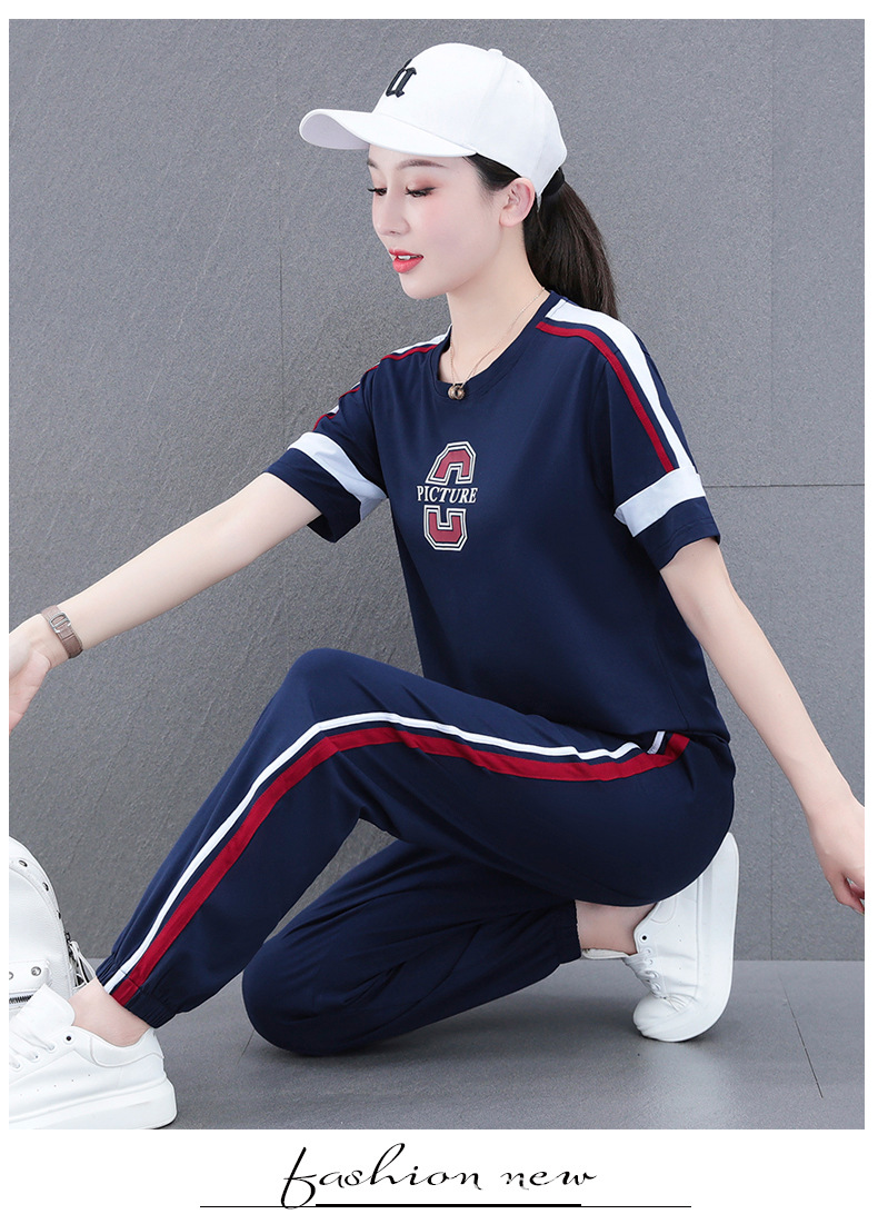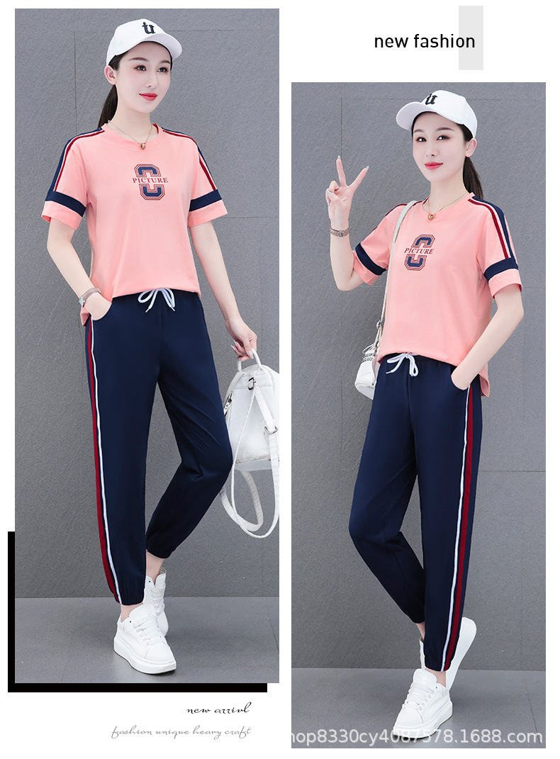 여름 캐주얼 스포츠 반팔 세트 여성용 얇은 유행 나이 감소 플러스 사이즈 세련된 가정복 통기성 러닝 투피스 세트