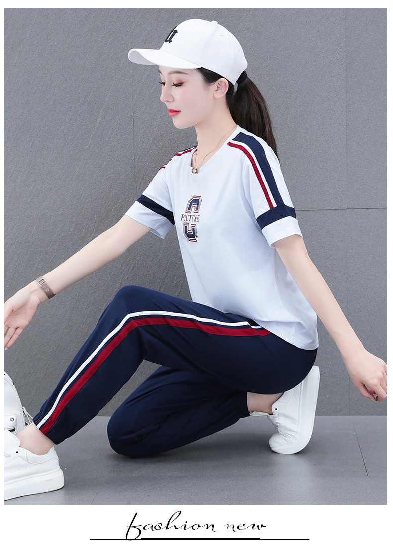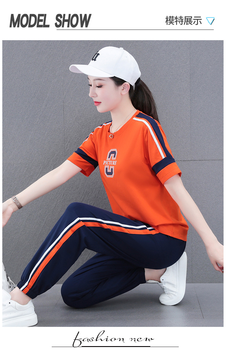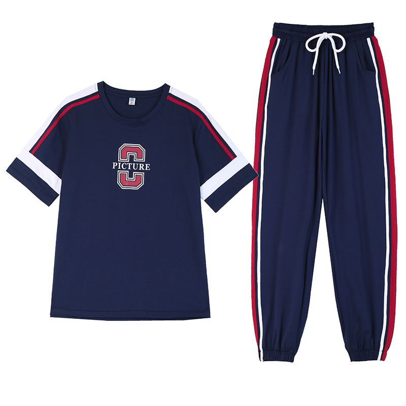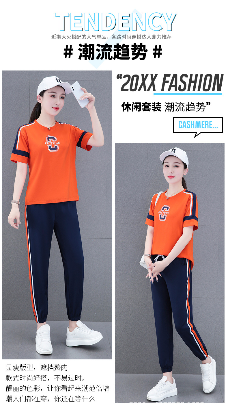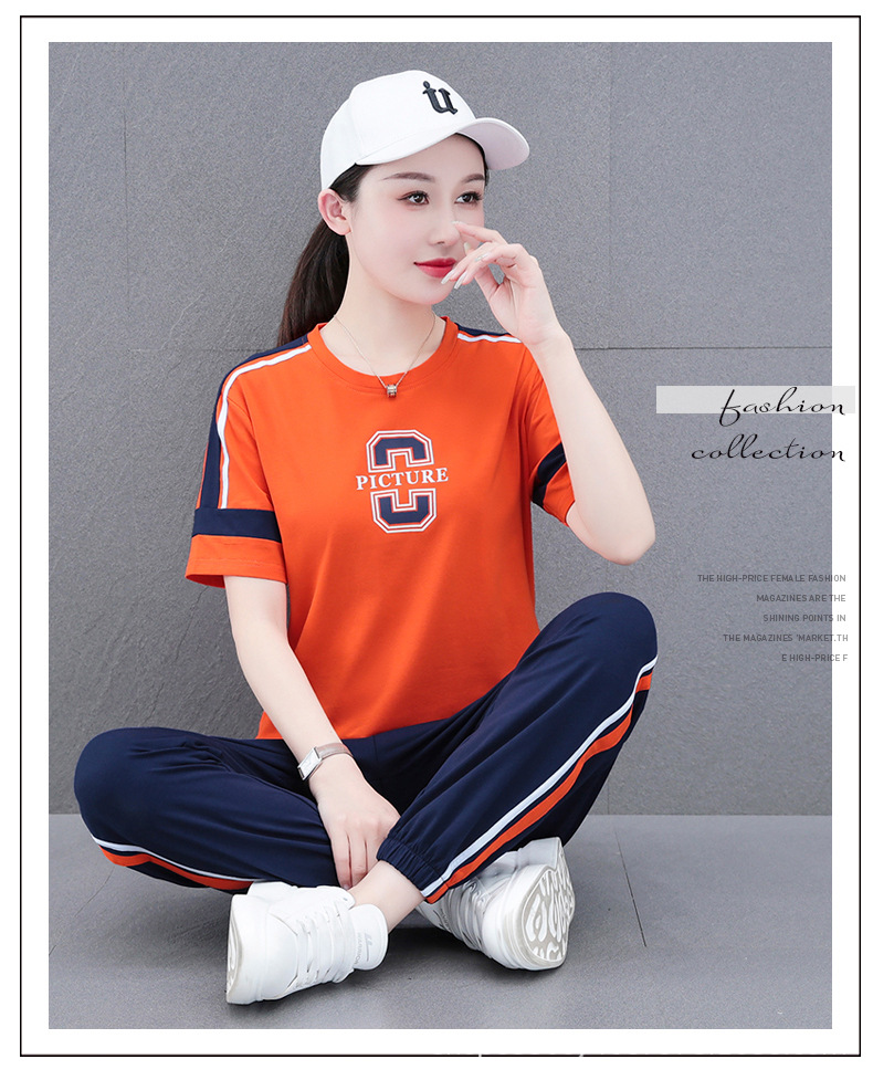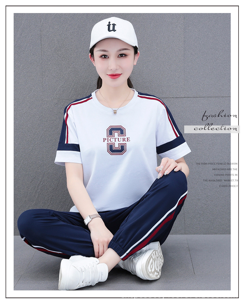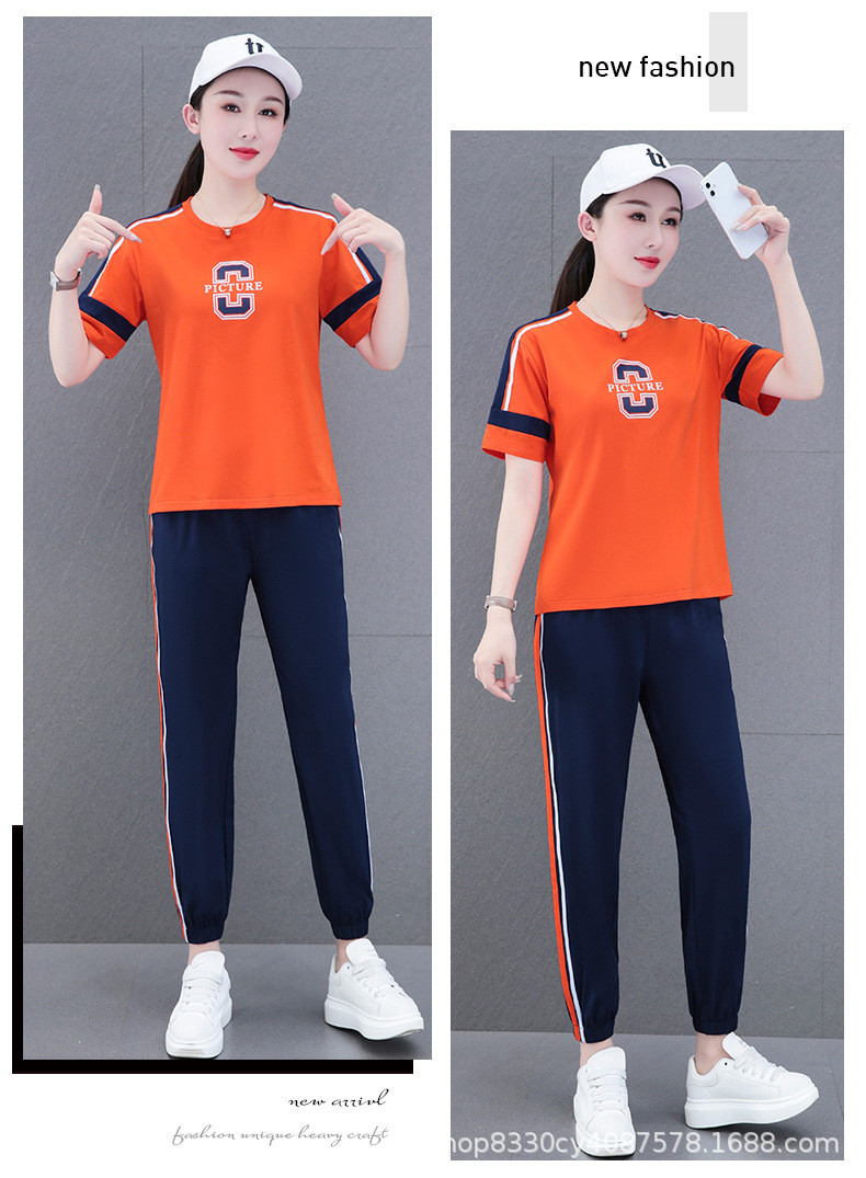 여름 캐주얼 스포츠 반팔 세트 여성용 얇은 유행 나이 감소 플러스 사이즈 세련된 가정복 통기성 러닝 투피스 세트