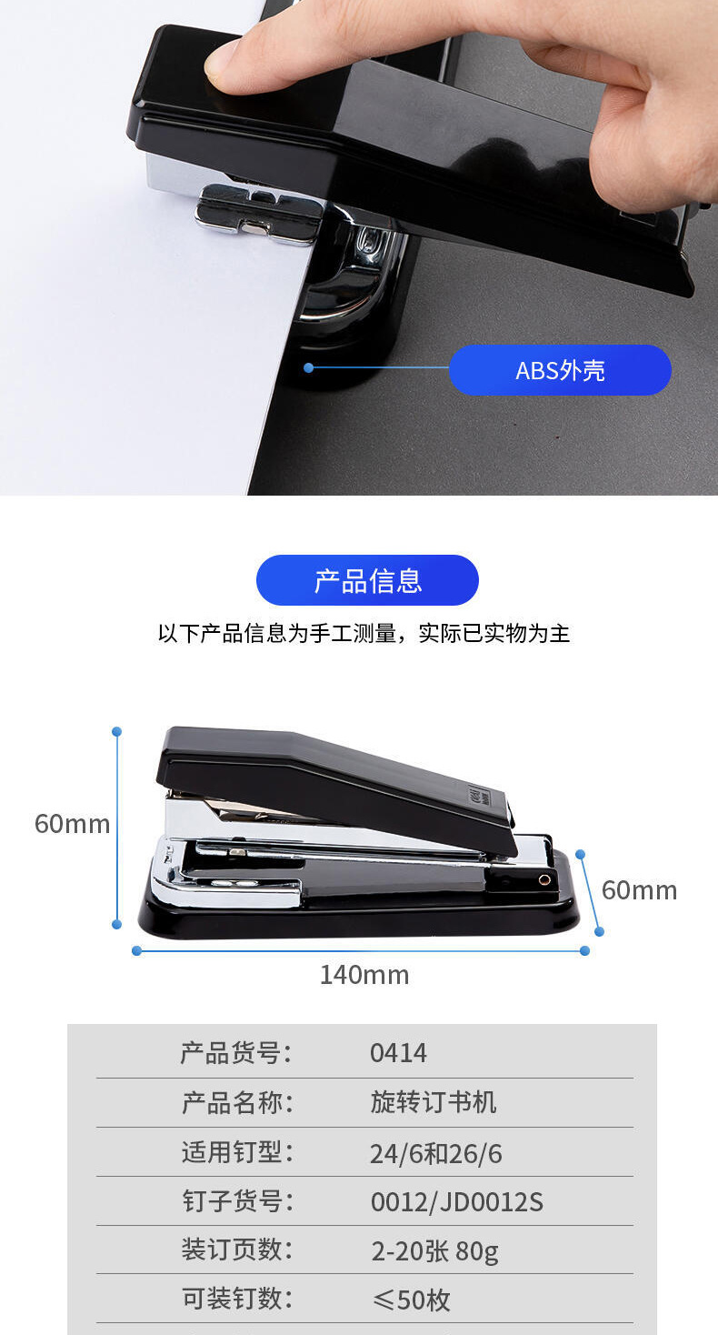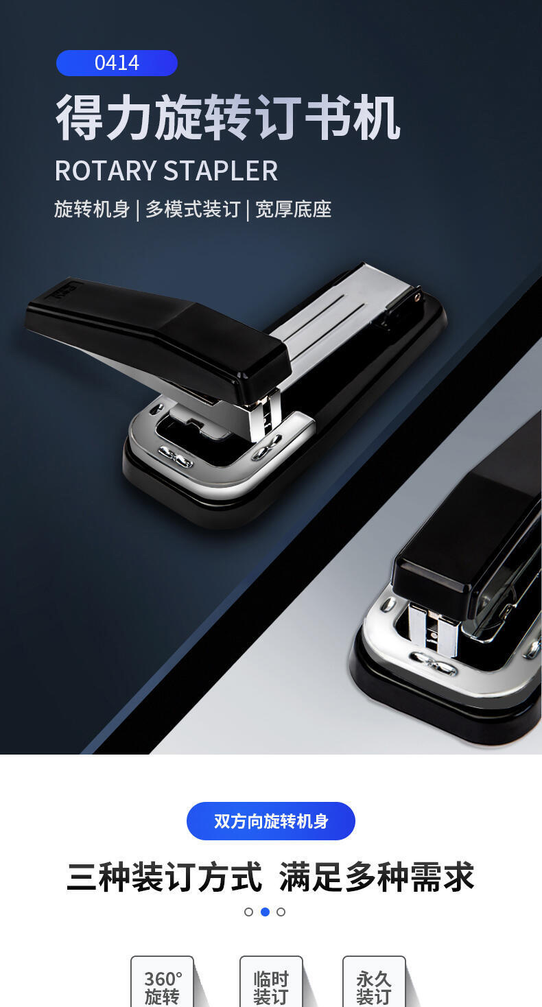 델리 0414 스테이플러 회전식 학생 대형 중형 두꺼운 스테이플러 표준 다기능 사무용품