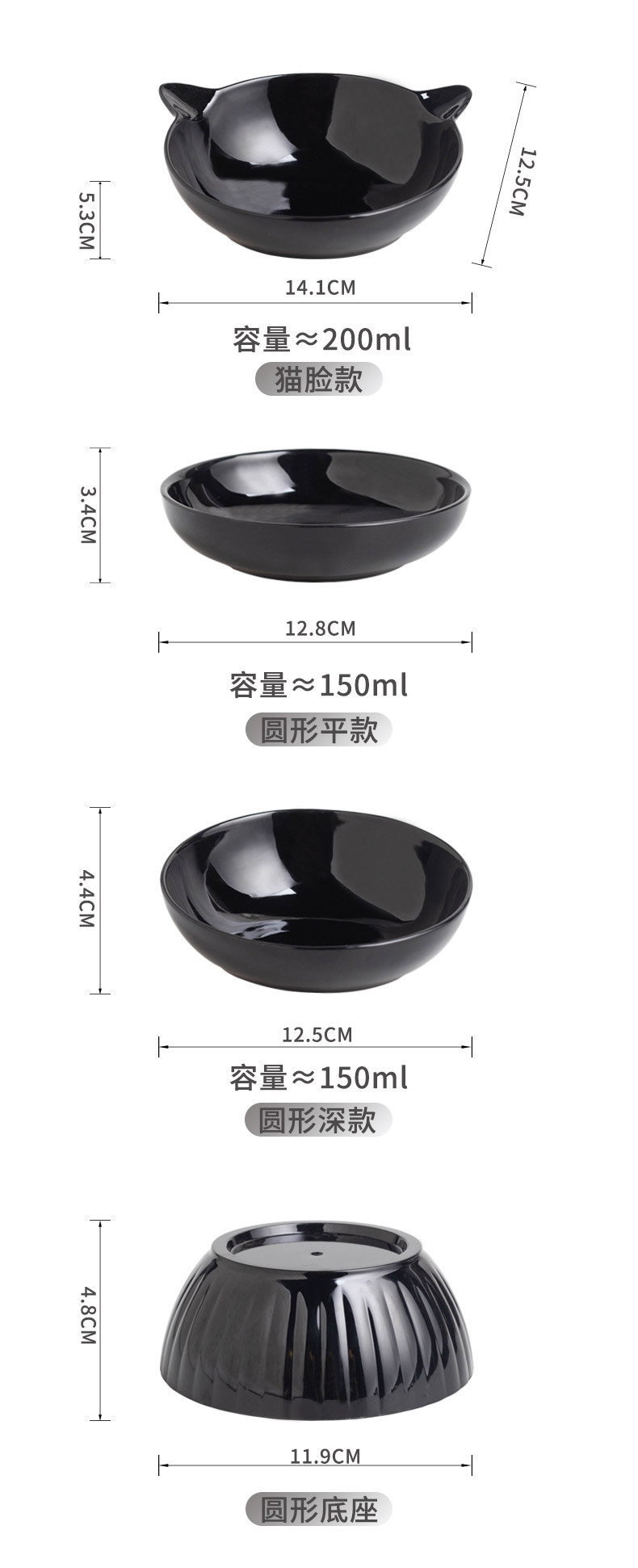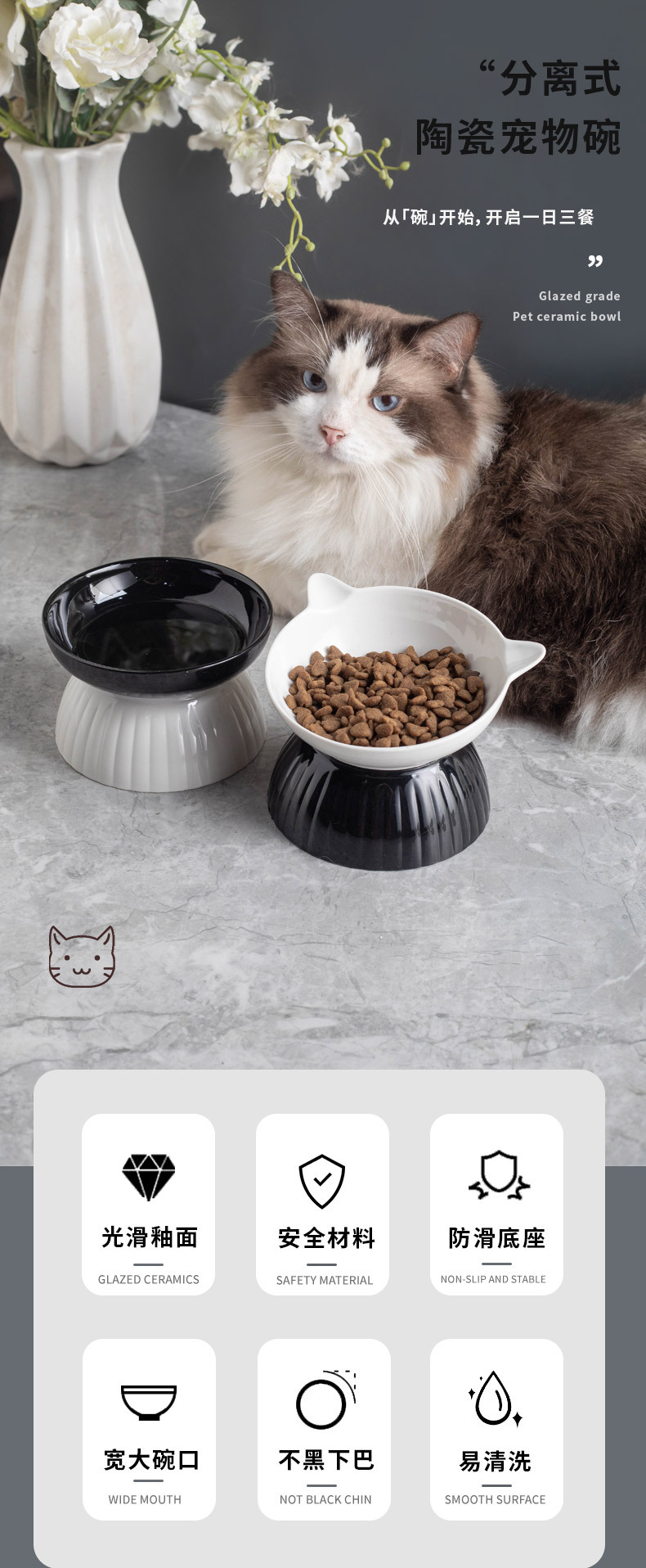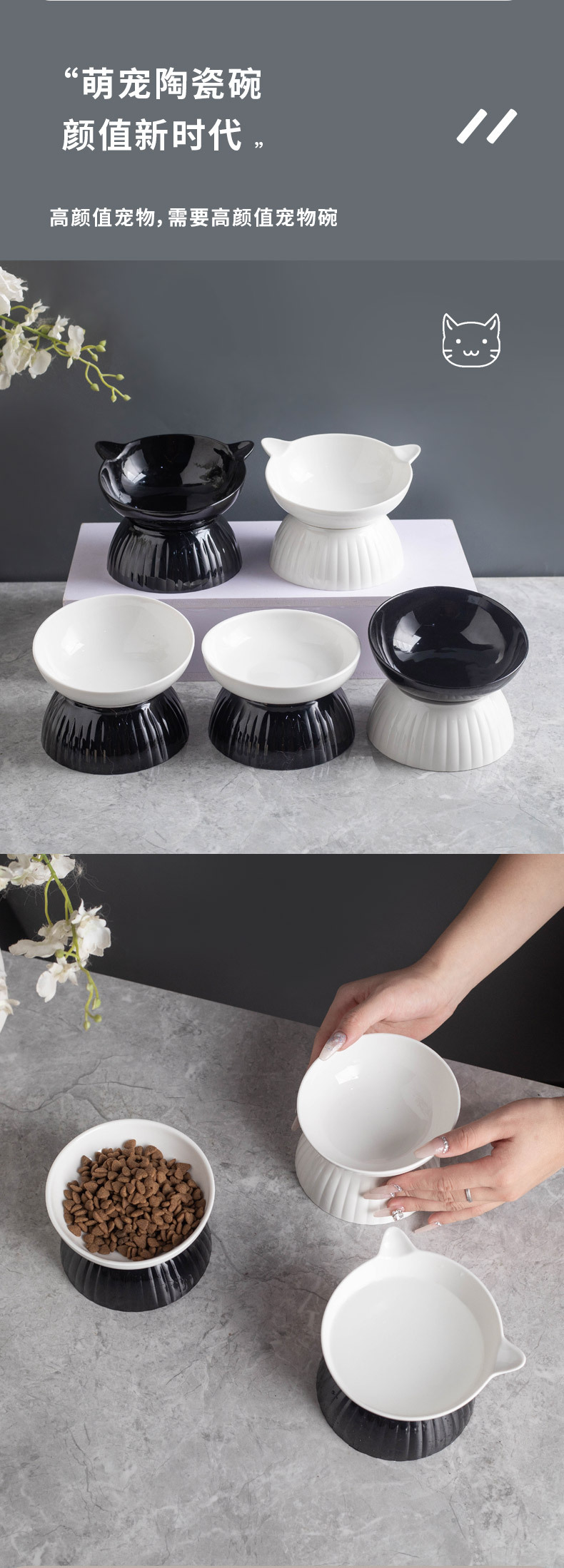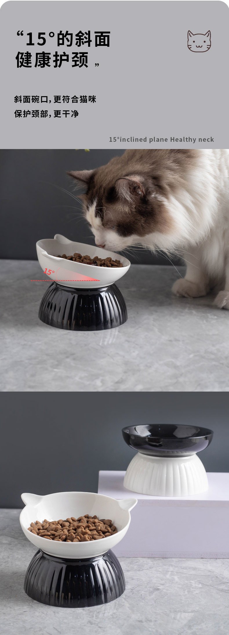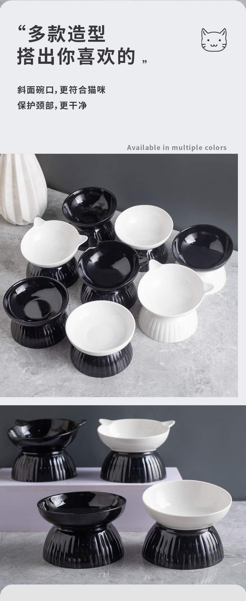 세라믹 고양이 그릇 개 그릇 애완 동물 그릇 비스듬한 입 높은 발 보호 경추 고양이 음식 분지 고양이 검은 물 그릇 애완 동물 용품
