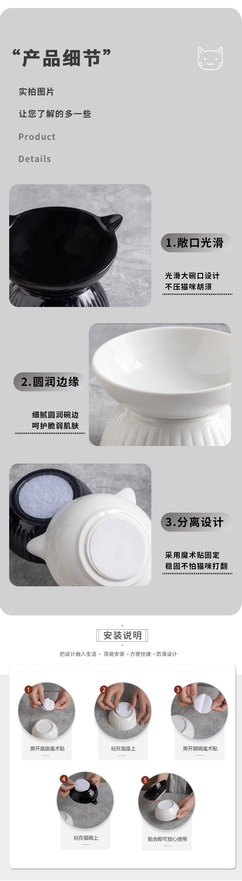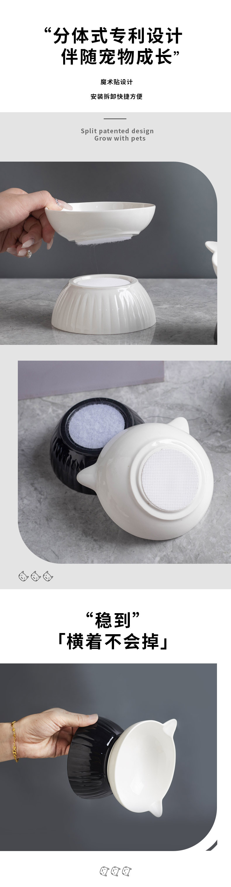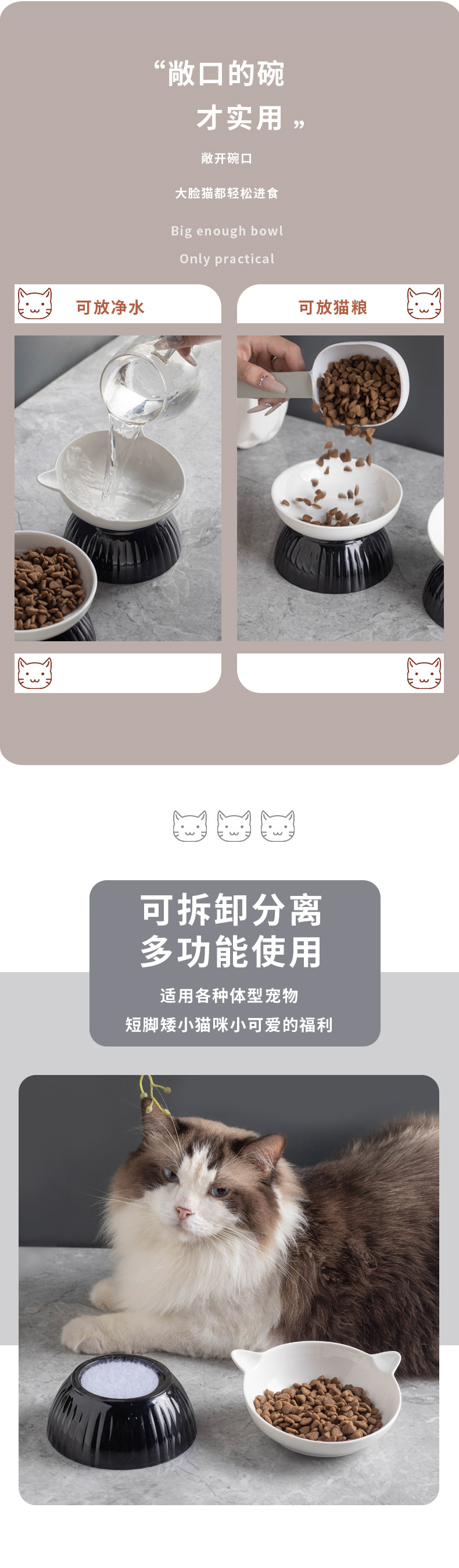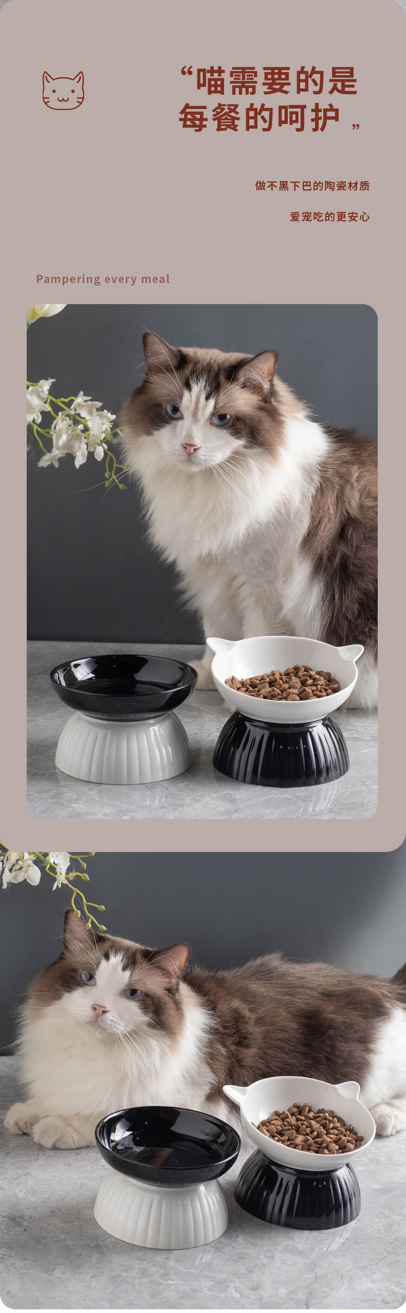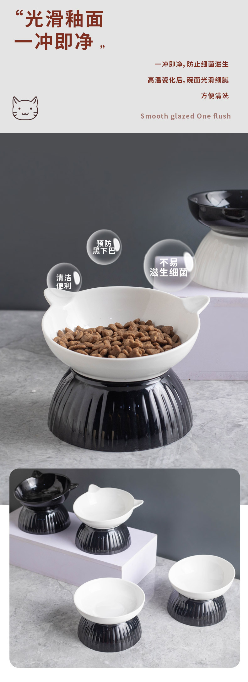 세라믹 고양이 그릇 개 그릇 애완 동물 그릇 비스듬한 입 높은 발 보호 경추 고양이 음식 분지 고양이 검은 물 그릇 애완 동물 용품