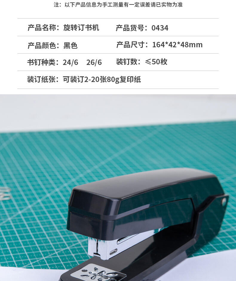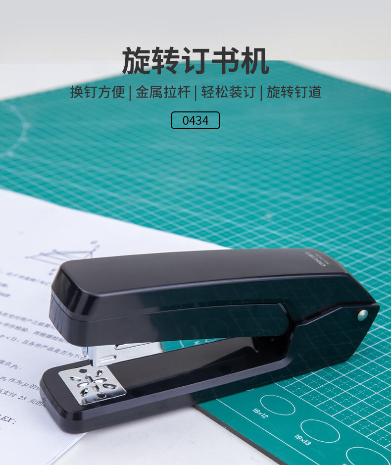 델리 0434 회전식 스테이플러 학생 용품 책 미들 스티치 스테이플러 사무실 농축 노동 절약 스테이플러