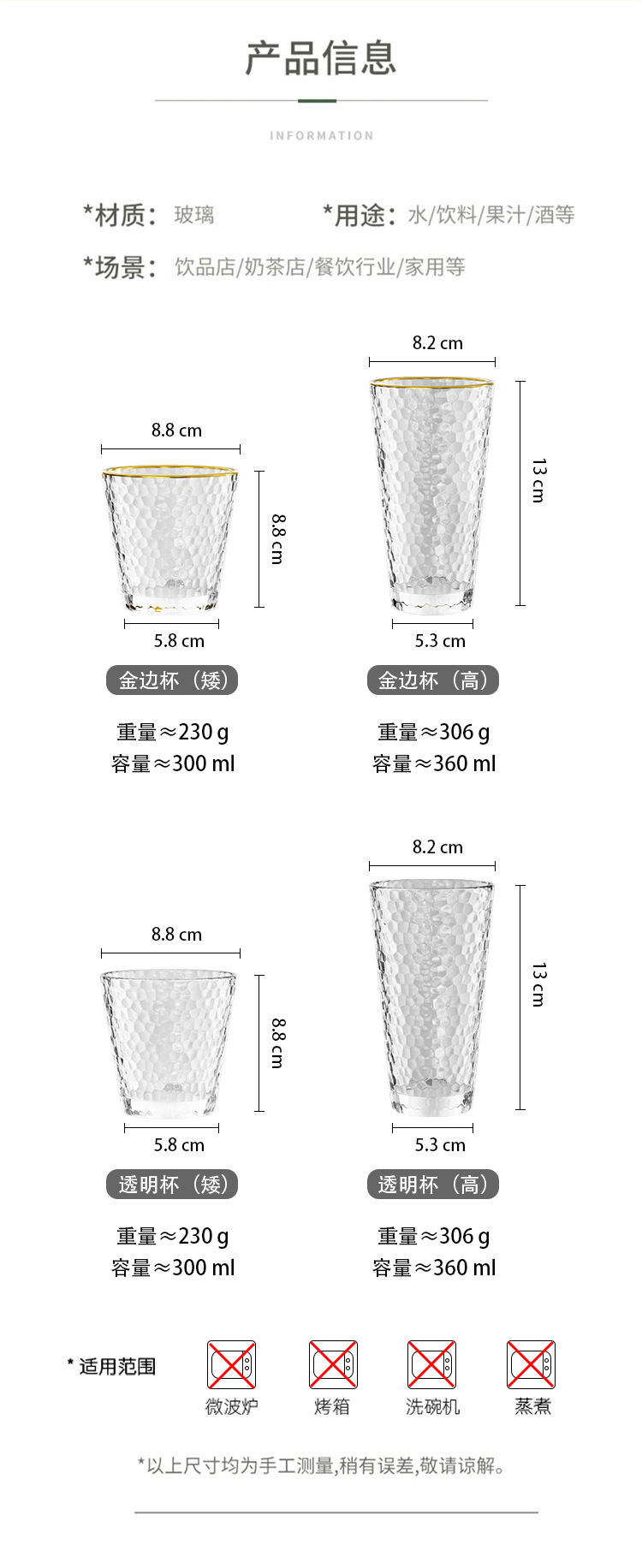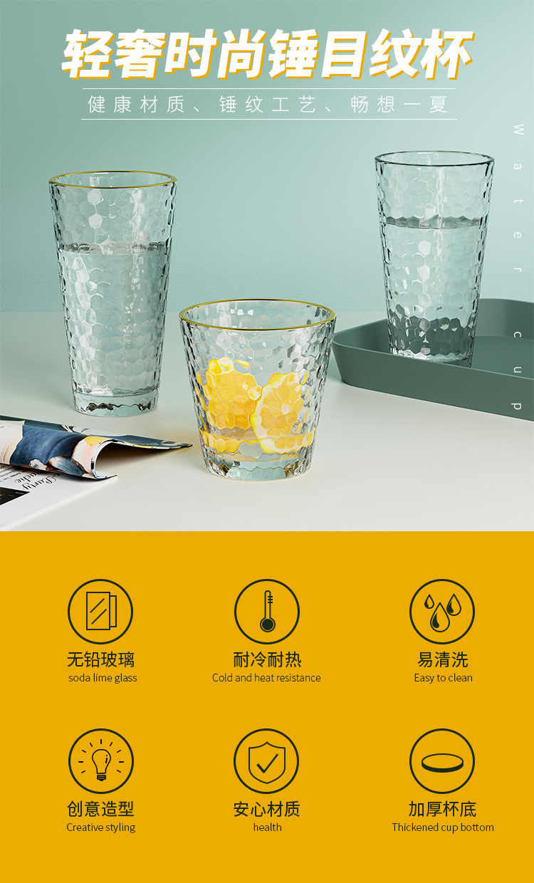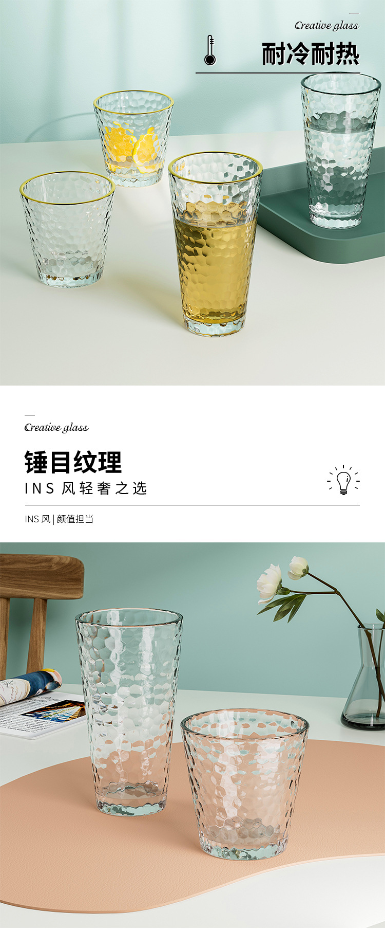 일본식 프놈펜 해머 유리 여성용 고급 가정용 내열 유리 음료 컵 주스 음료 컵