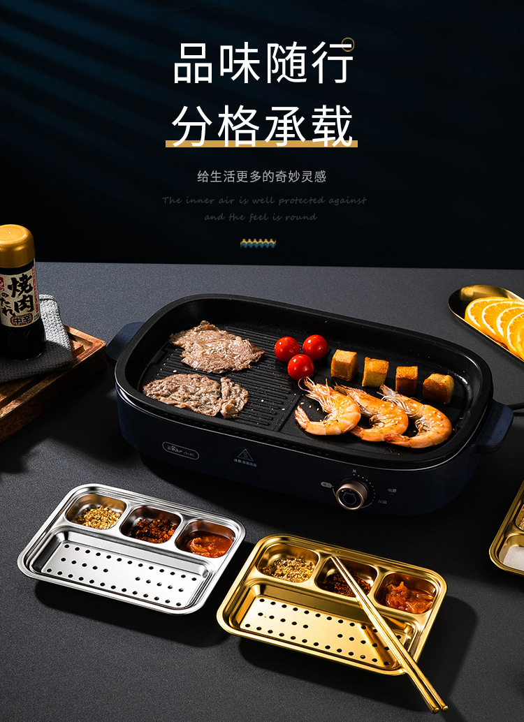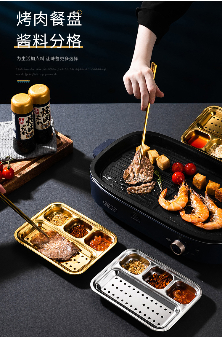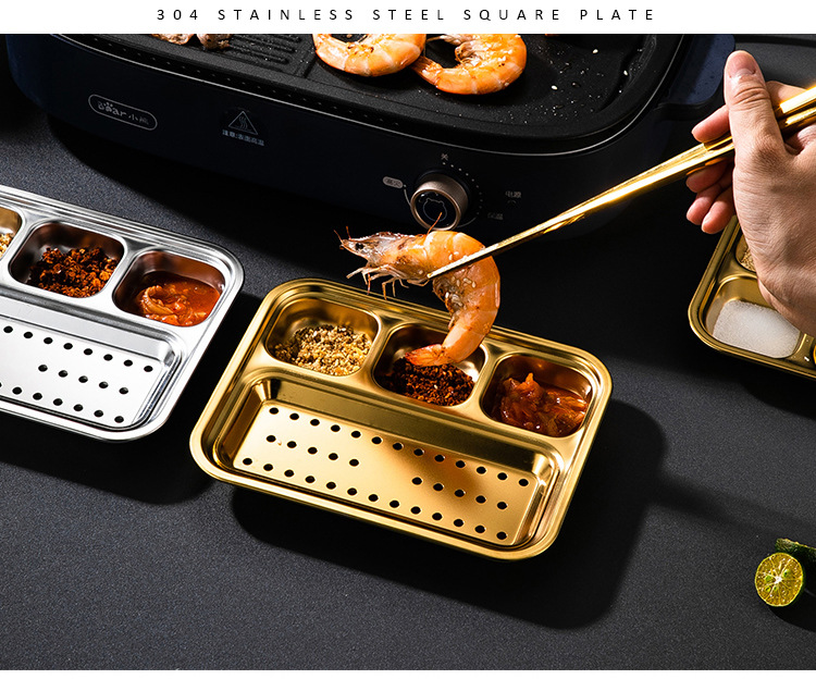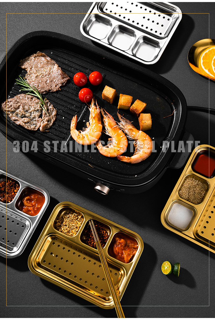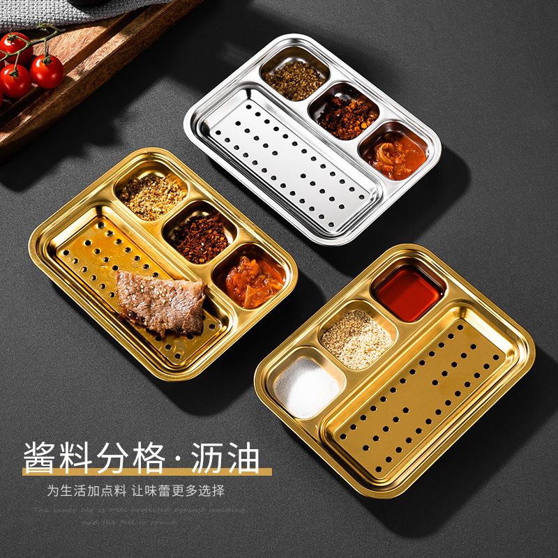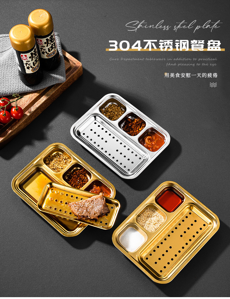 304 스테인리스 바베큐 딥 올인원 플레이트 한국식 바베큐 스플릿 조미료 플레이트 소스 플레이트 바베큐 가게 식기