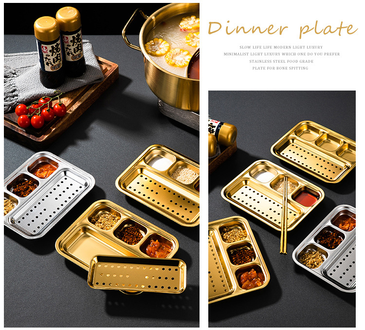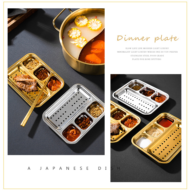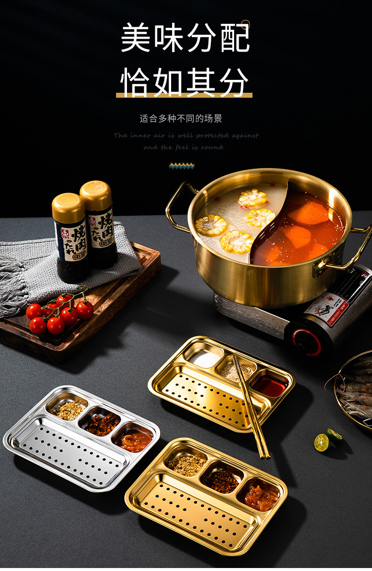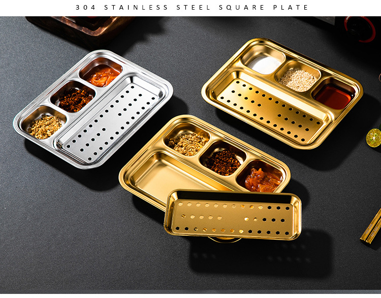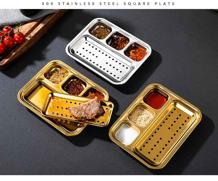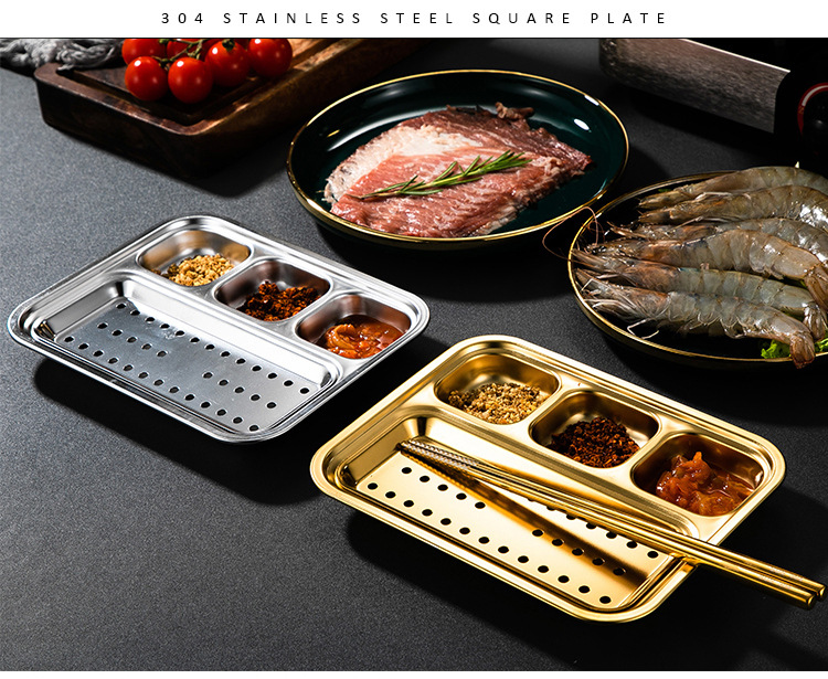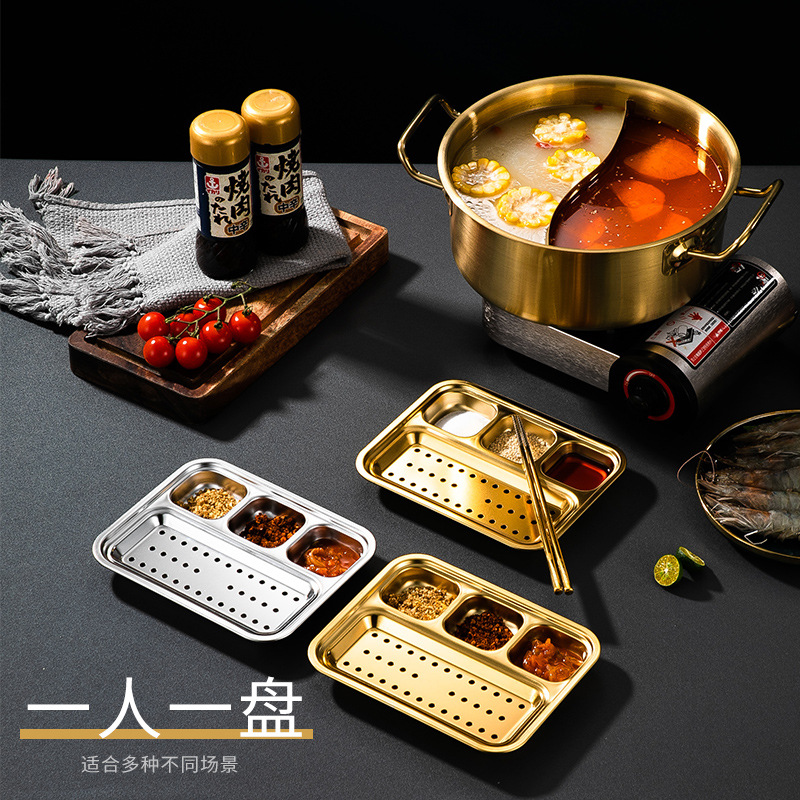 304 스테인리스 바베큐 딥 올인원 플레이트 한국식 바베큐 스플릿 조미료 플레이트 소스 플레이트 바베큐 가게 식기