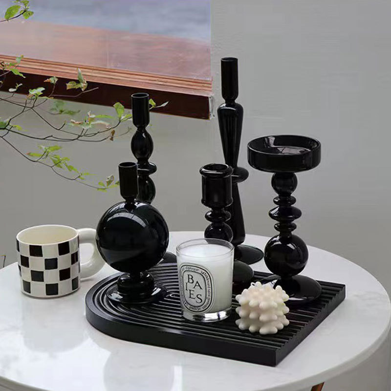 스타일 블랙 유리 촛대 장식품 북유럽 로맨틱 프랑스 가정 장식 의류 매장 부드러운 옷 촬영 소품