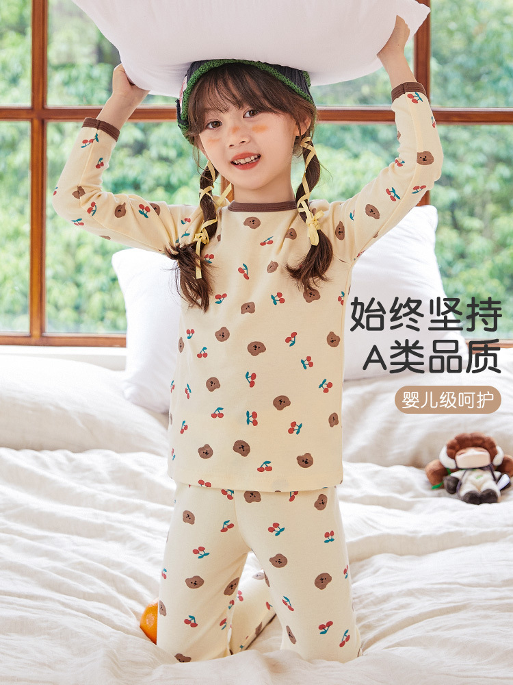 여자 가을 옷과 가을 바지 순수 코튼 클래스 A 어린이 열 속옷 세트 순수 코튼 2025 중소 아동 의류 유행 도매