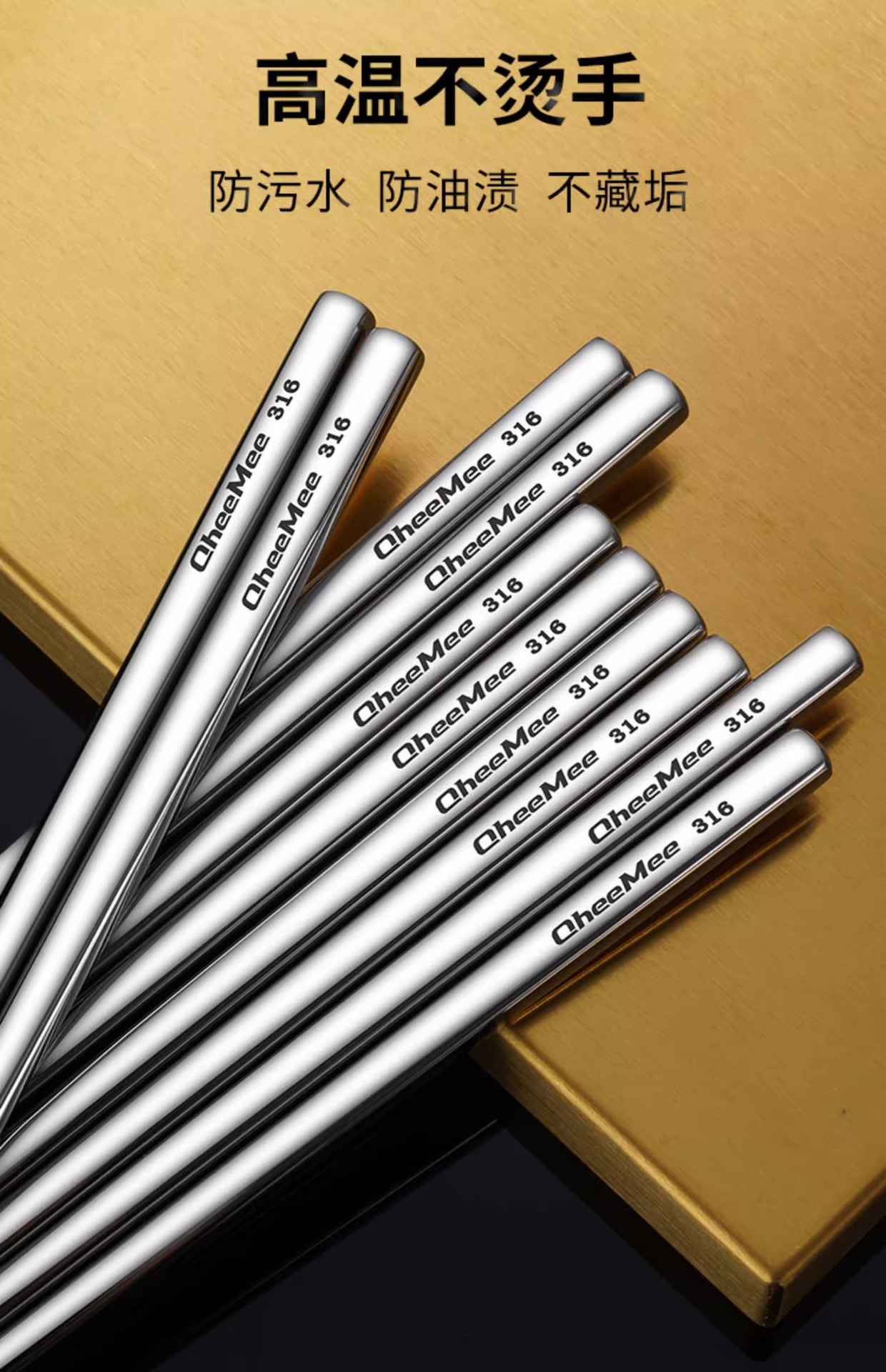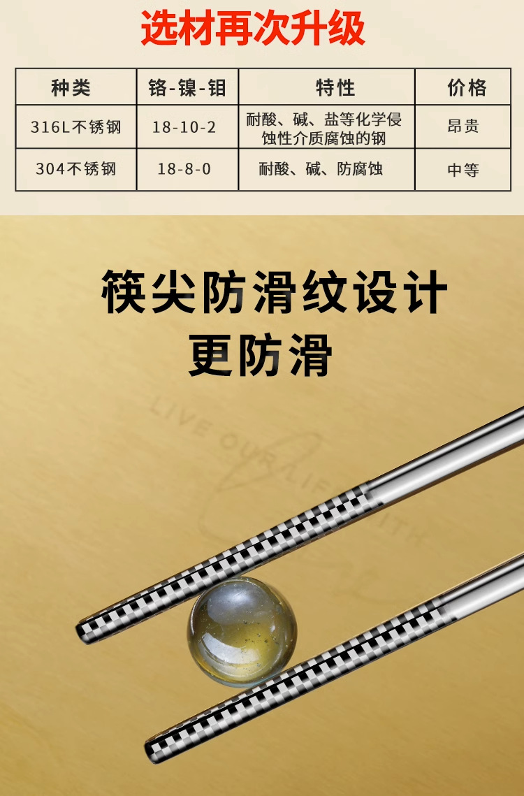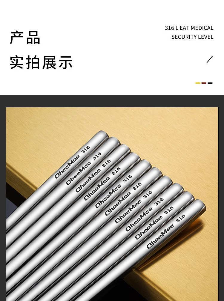316 스테인레스 스틸 젓가락 가정용 중공 미끄럼 방지 화상 호텔 식사 고급 식기 홀 고급 두꺼운 금속 젓가락