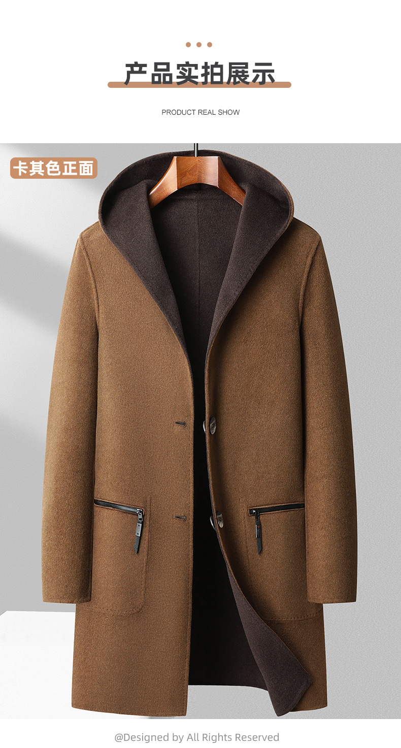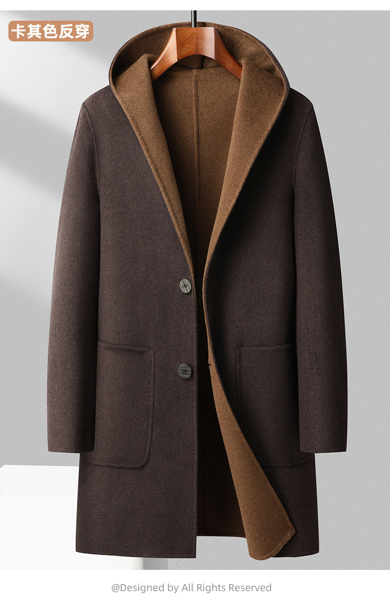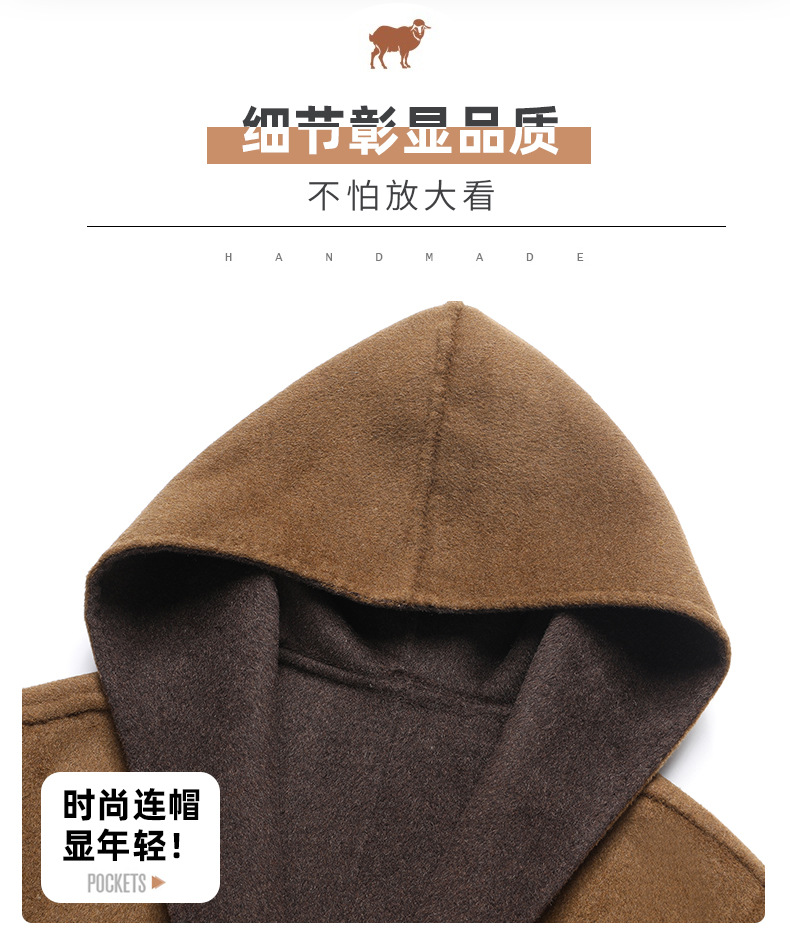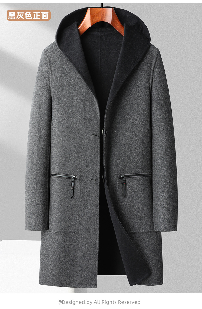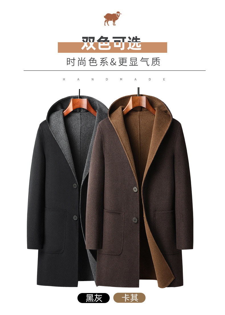 2023 가을과 겨울 새로운 남성용 대형 포켓 긴 모직 코트 후드 양면 수제 모직 코트