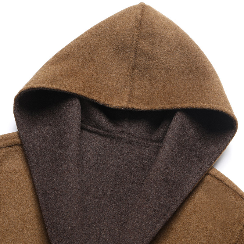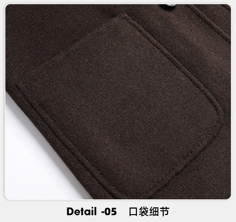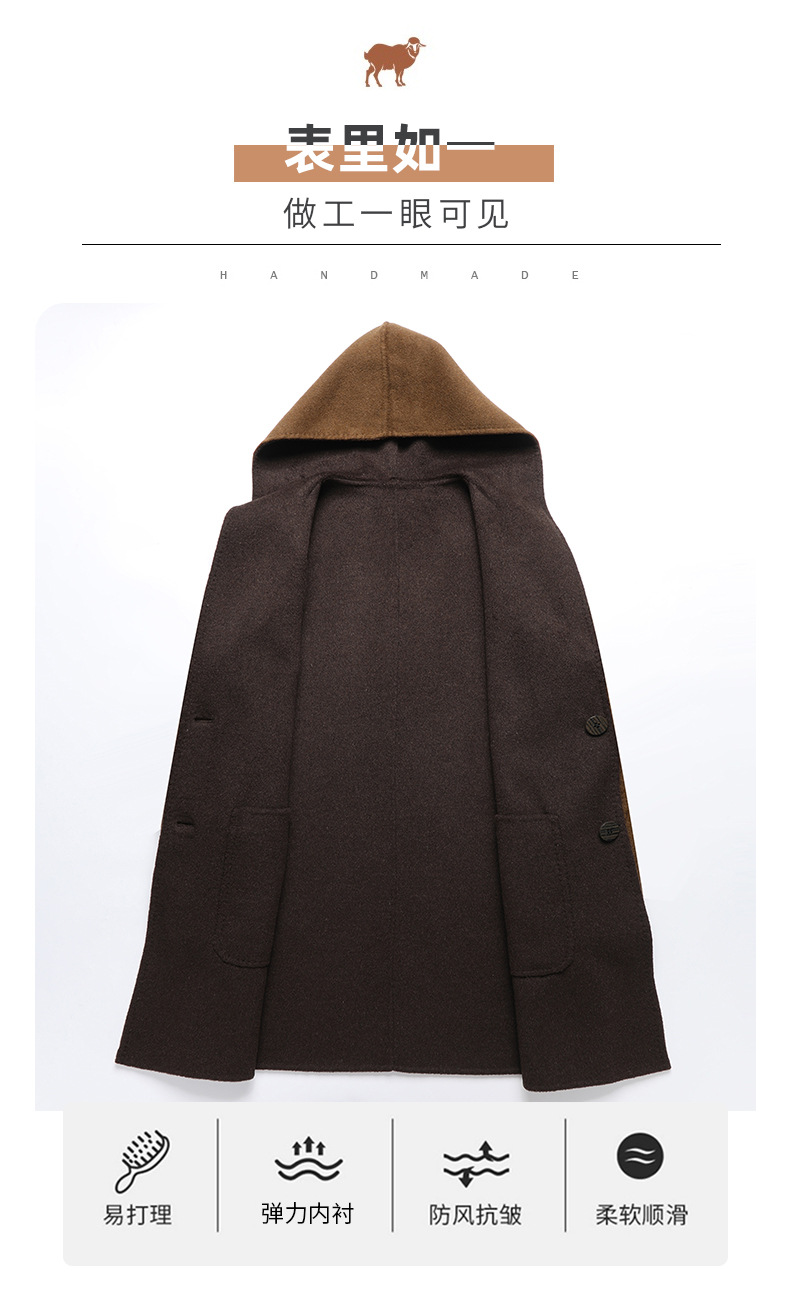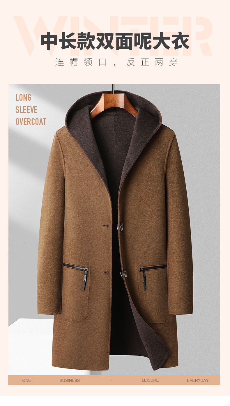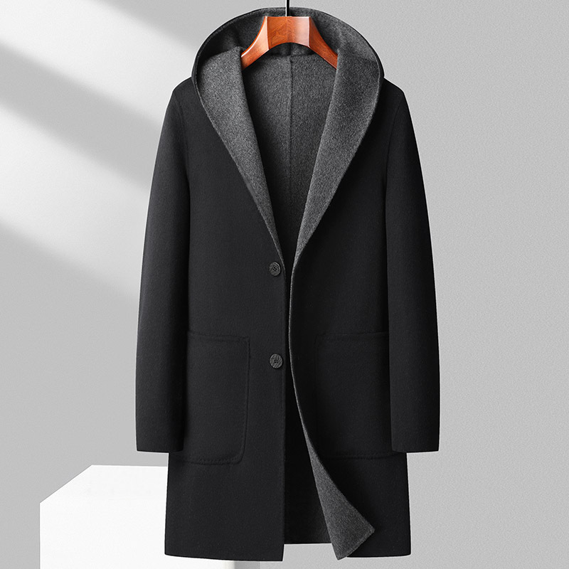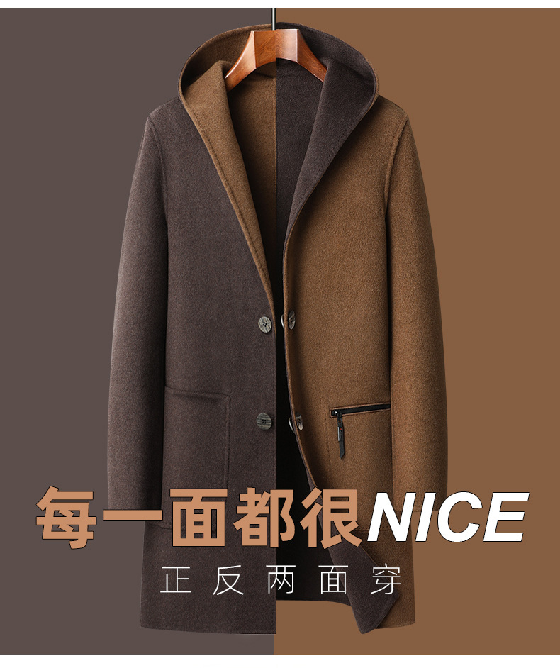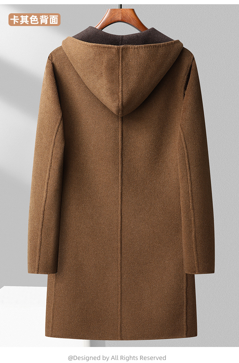 2023 가을과 겨울 새로운 남성용 대형 포켓 긴 모직 코트 후드 양면 수제 모직 코트