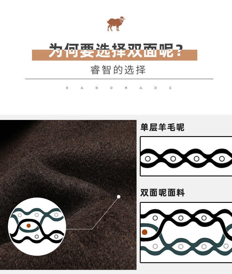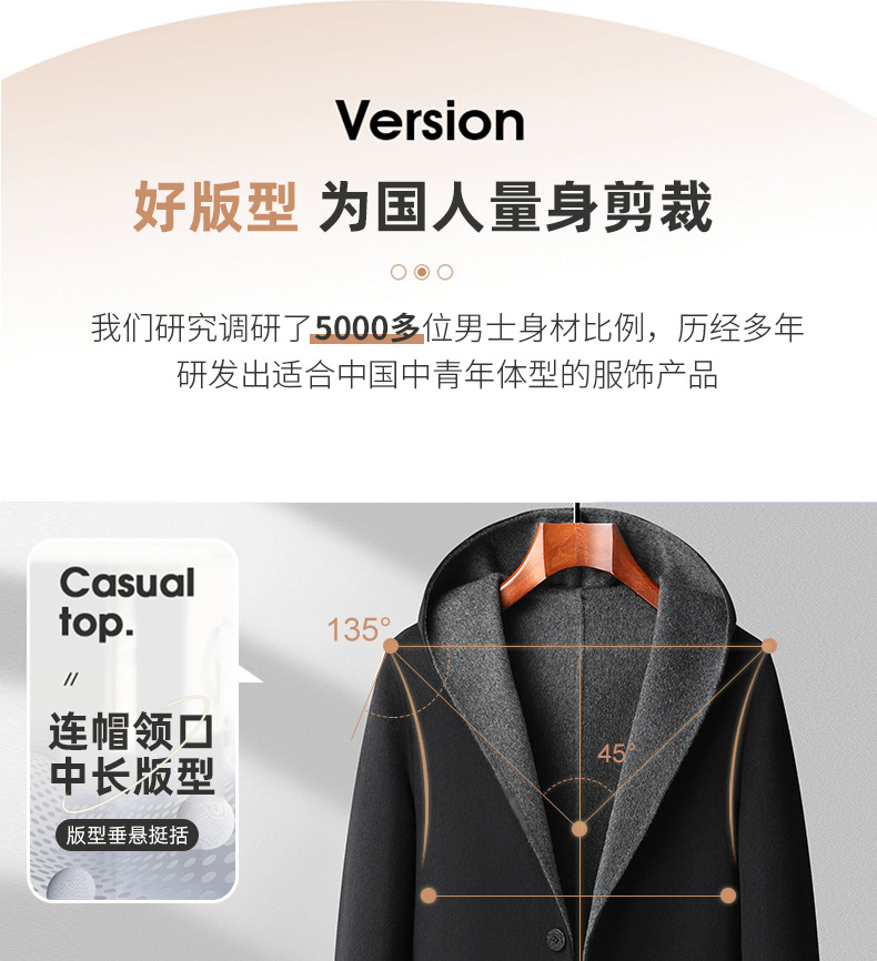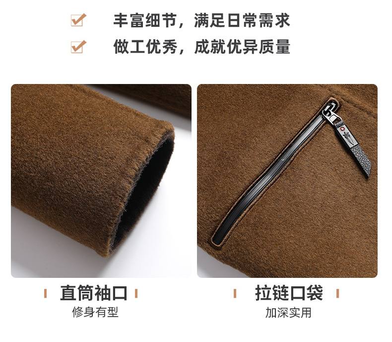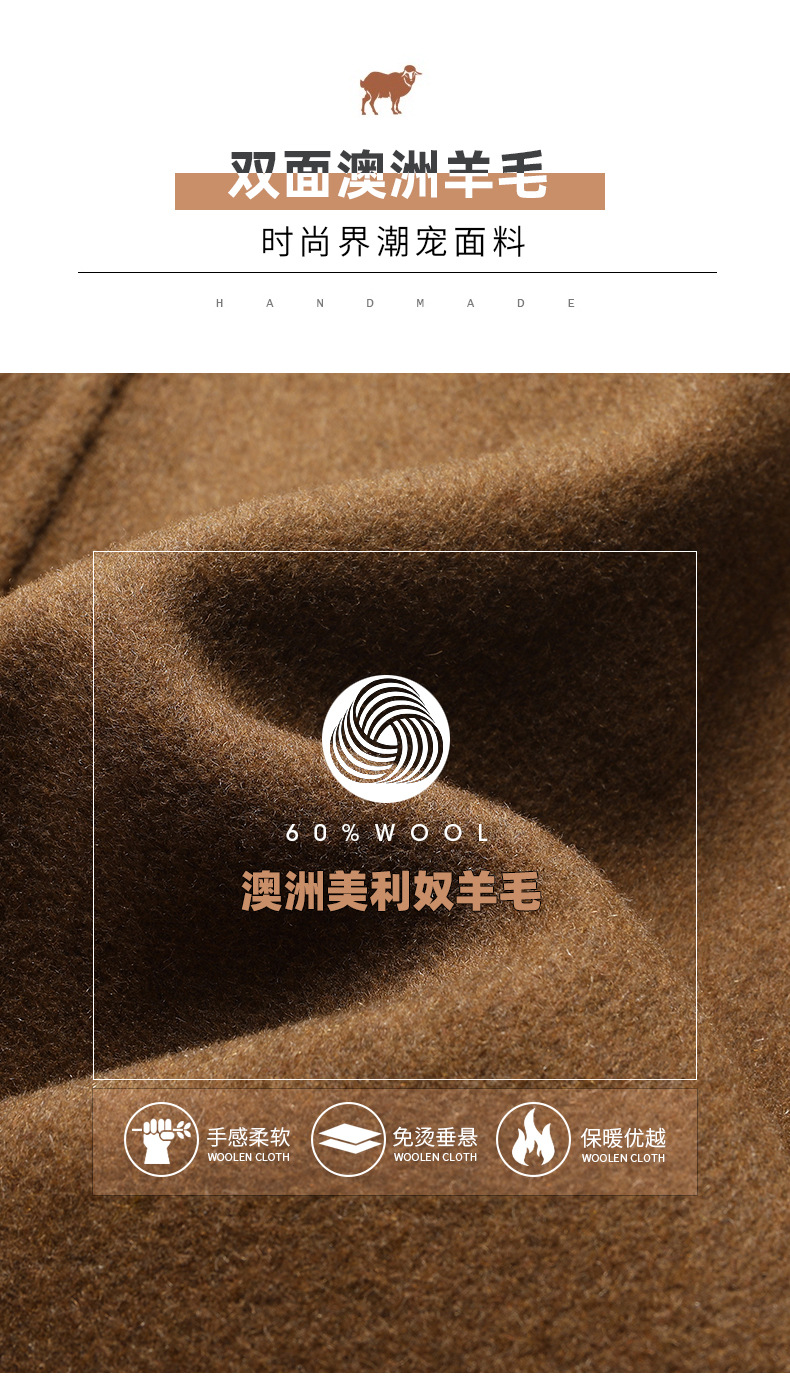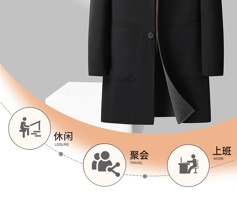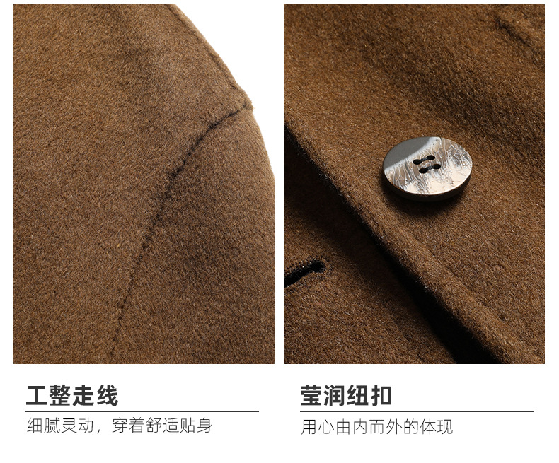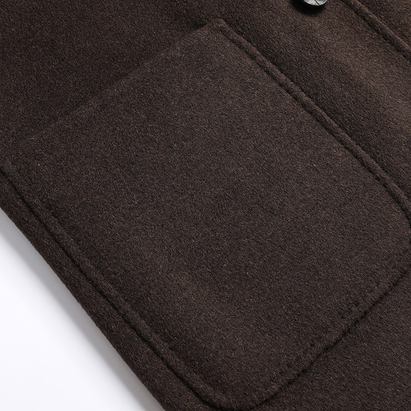 2023 가을과 겨울 새로운 남성용 대형 포켓 긴 모직 코트 후드 양면 수제 모직 코트