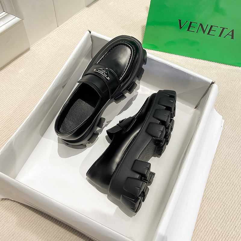 정품 가죽 페라리 슈즈 2022 가을 레트로 삼각 로고 작은 가죽 신발 두꺼운 밑창 두꺼운 굽 여성용 레트로 스타일