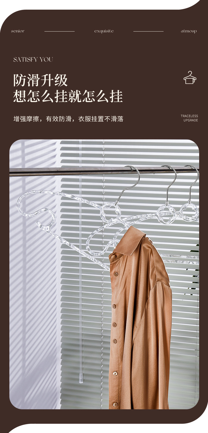 多功能衣撑防肩角批发衣架加粗款家用挂衣防滑无痕轻奢透明晾衣架
