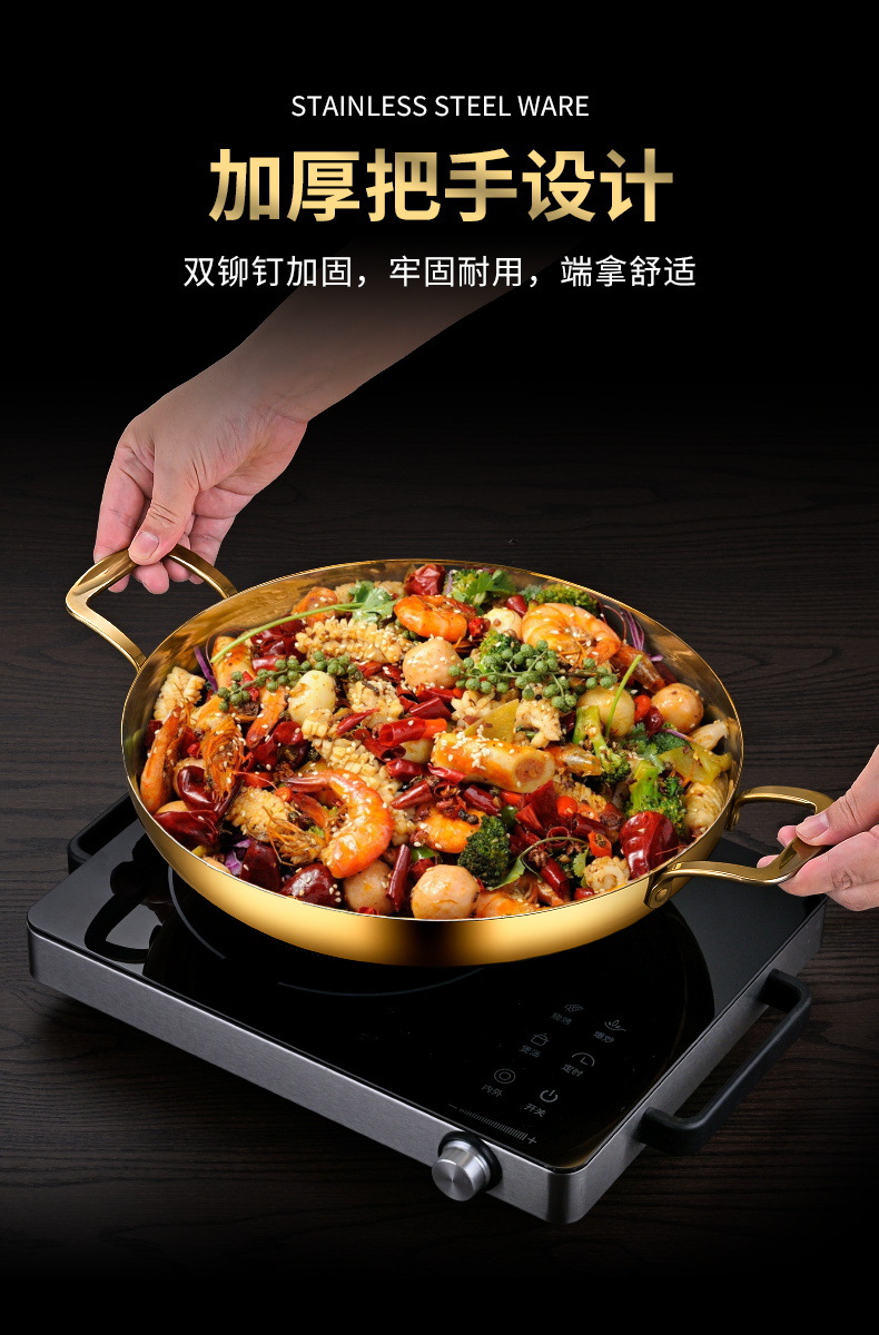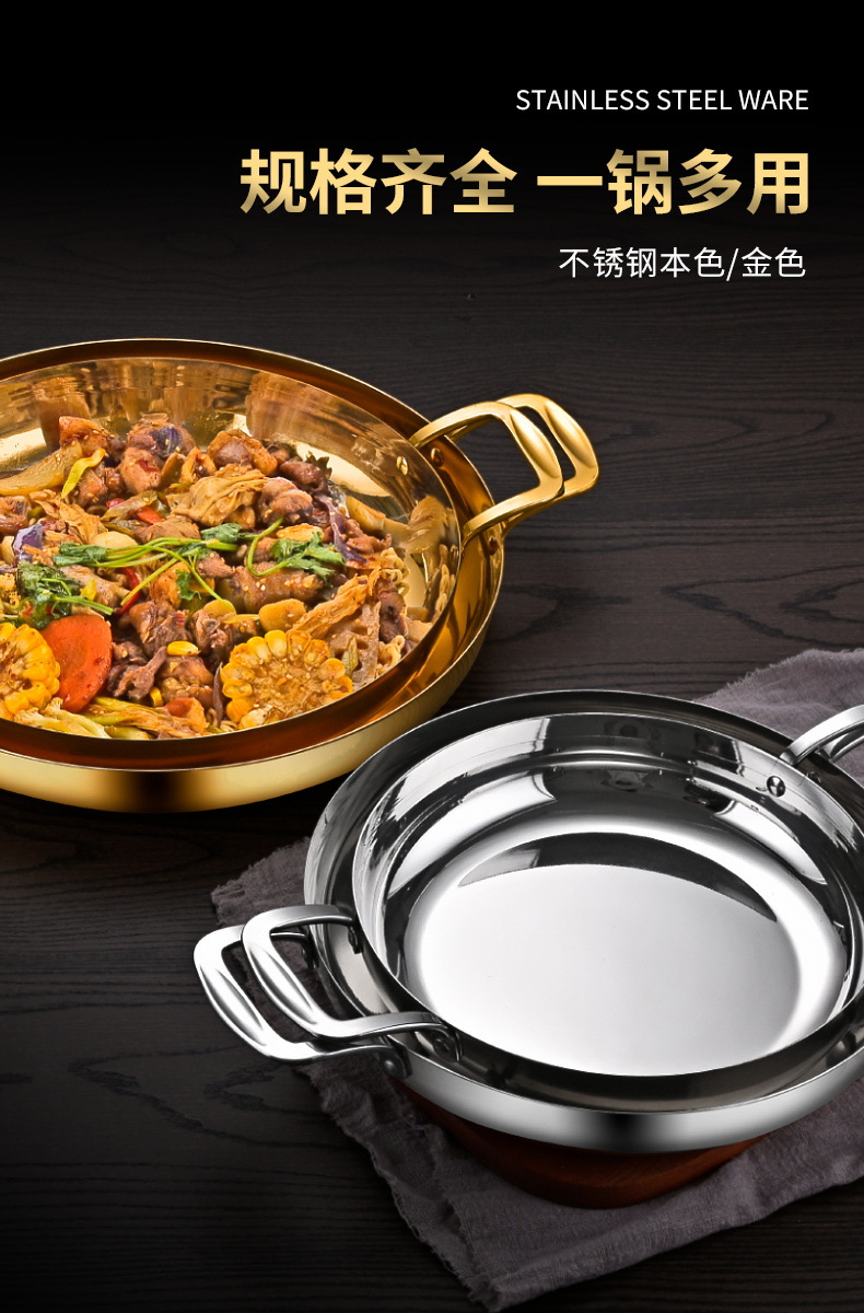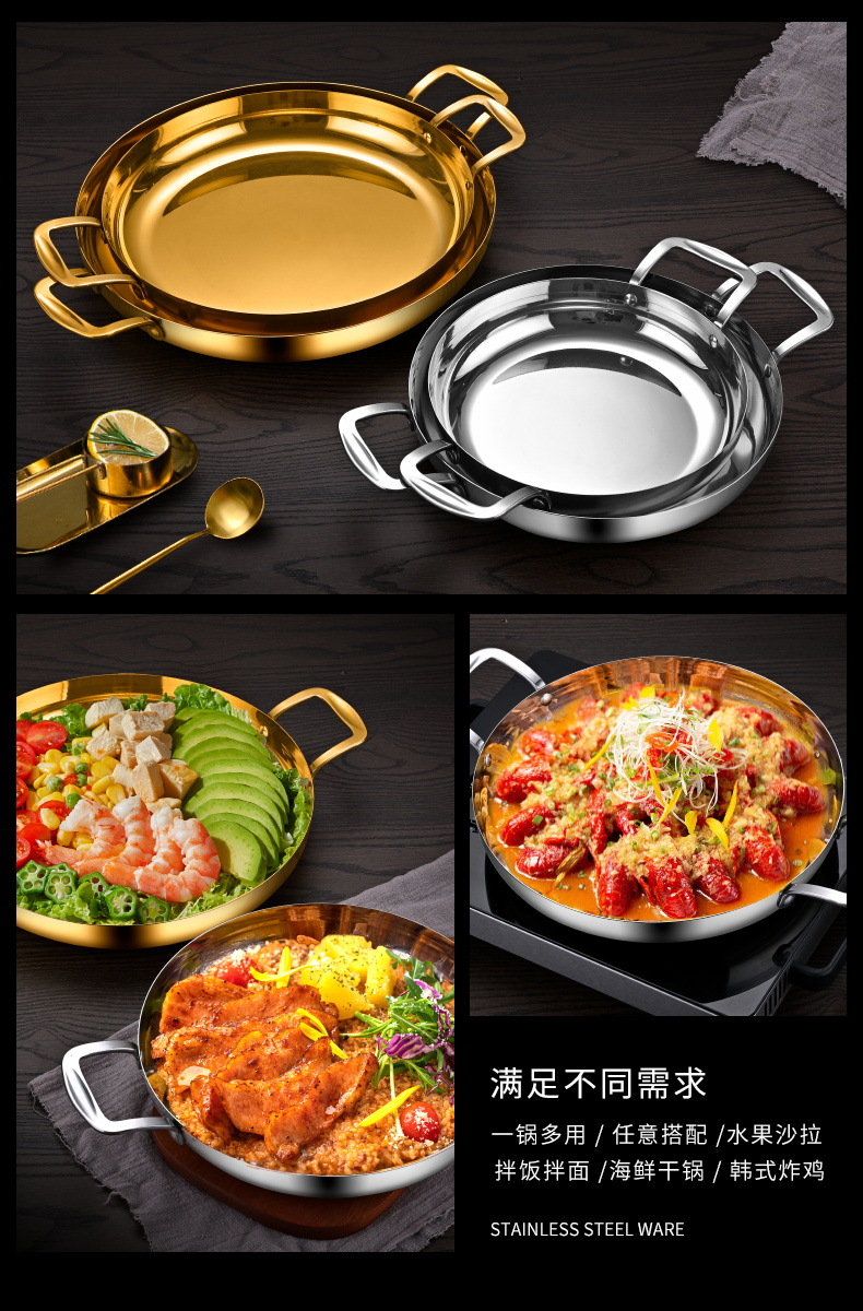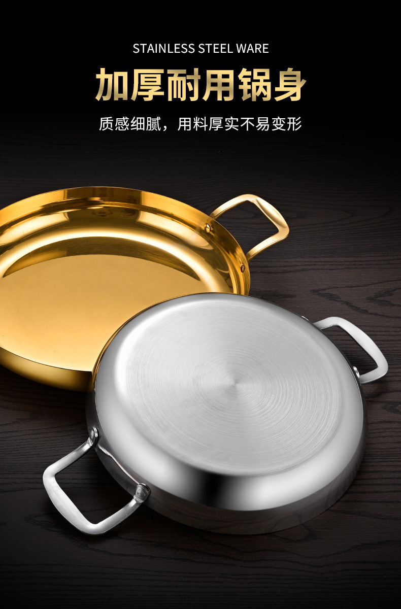 스테인레스 스틸 한국식 해산물 냄비 팬 골든 바이노럴 얕은 냄비 말린 냄비 상업용 소형 냄비 프라이드 치킨 접시