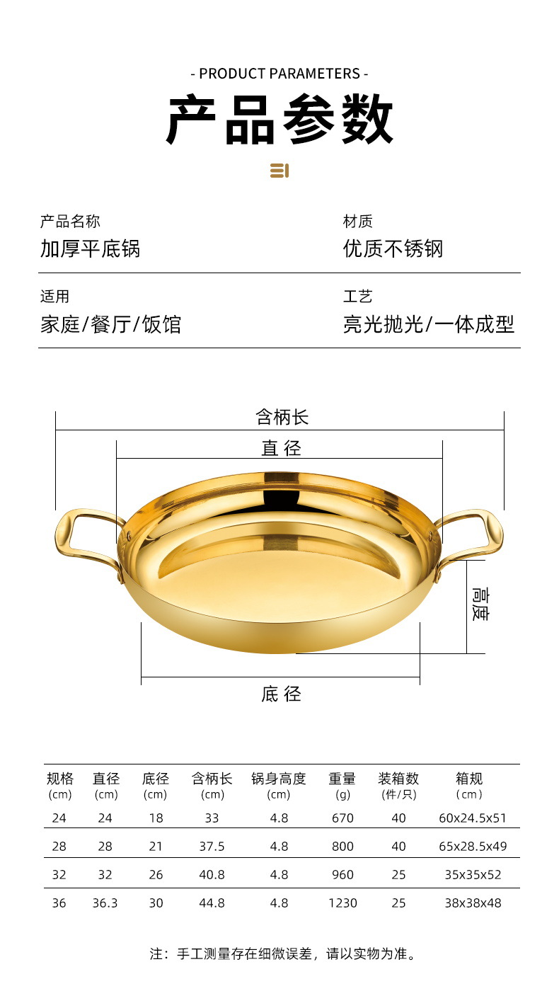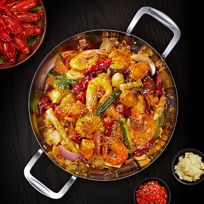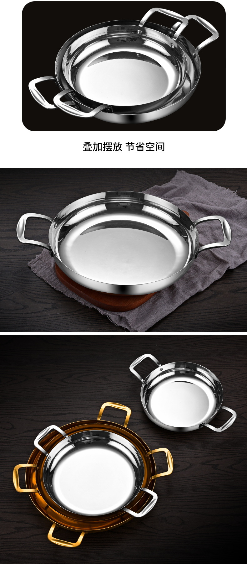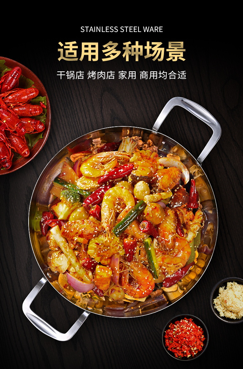 스테인레스 스틸 한국식 해산물 냄비 팬 골든 바이노럴 얕은 냄비 말린 냄비 상업용 소형 냄비 프라이드 치킨 접시