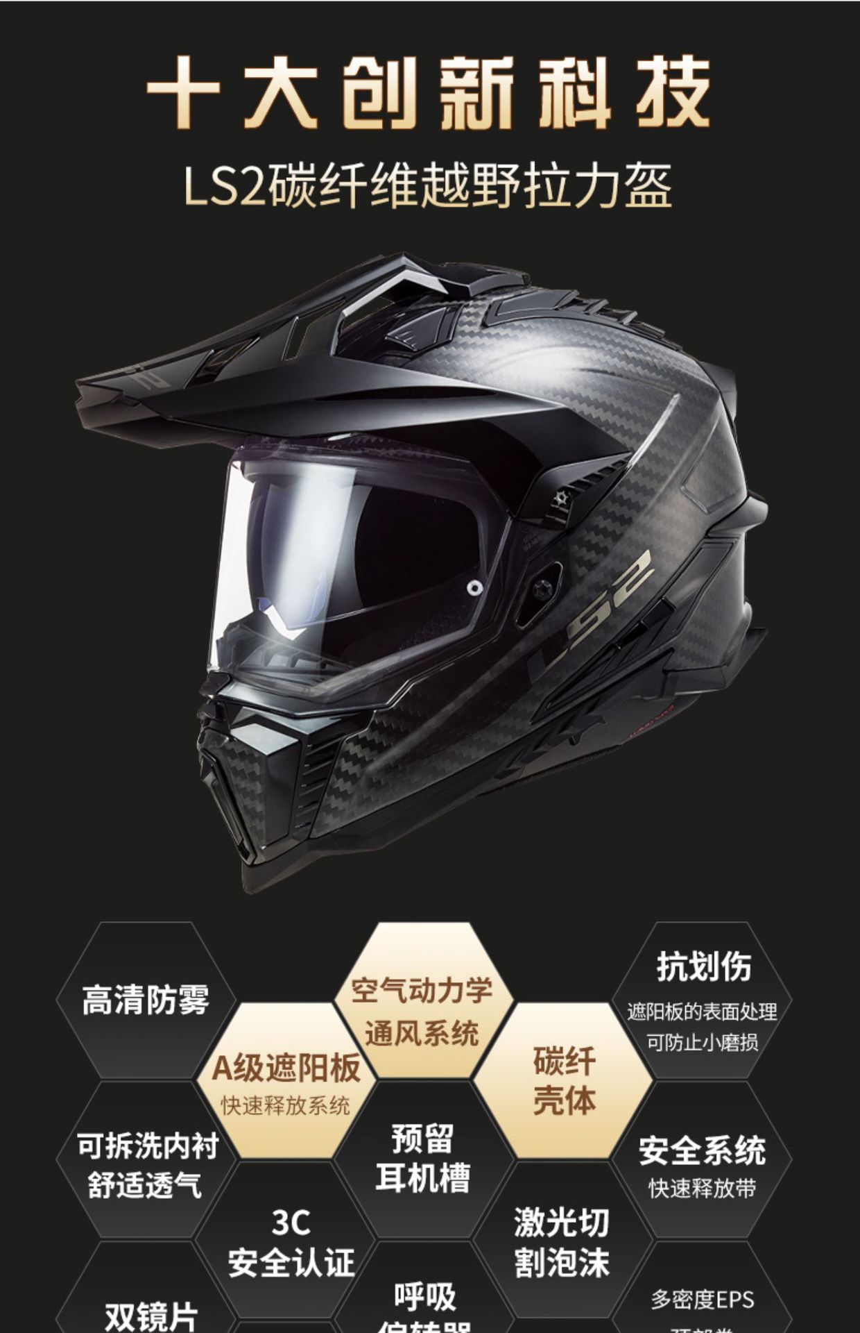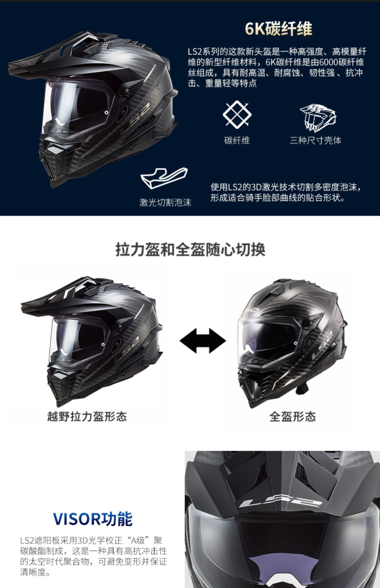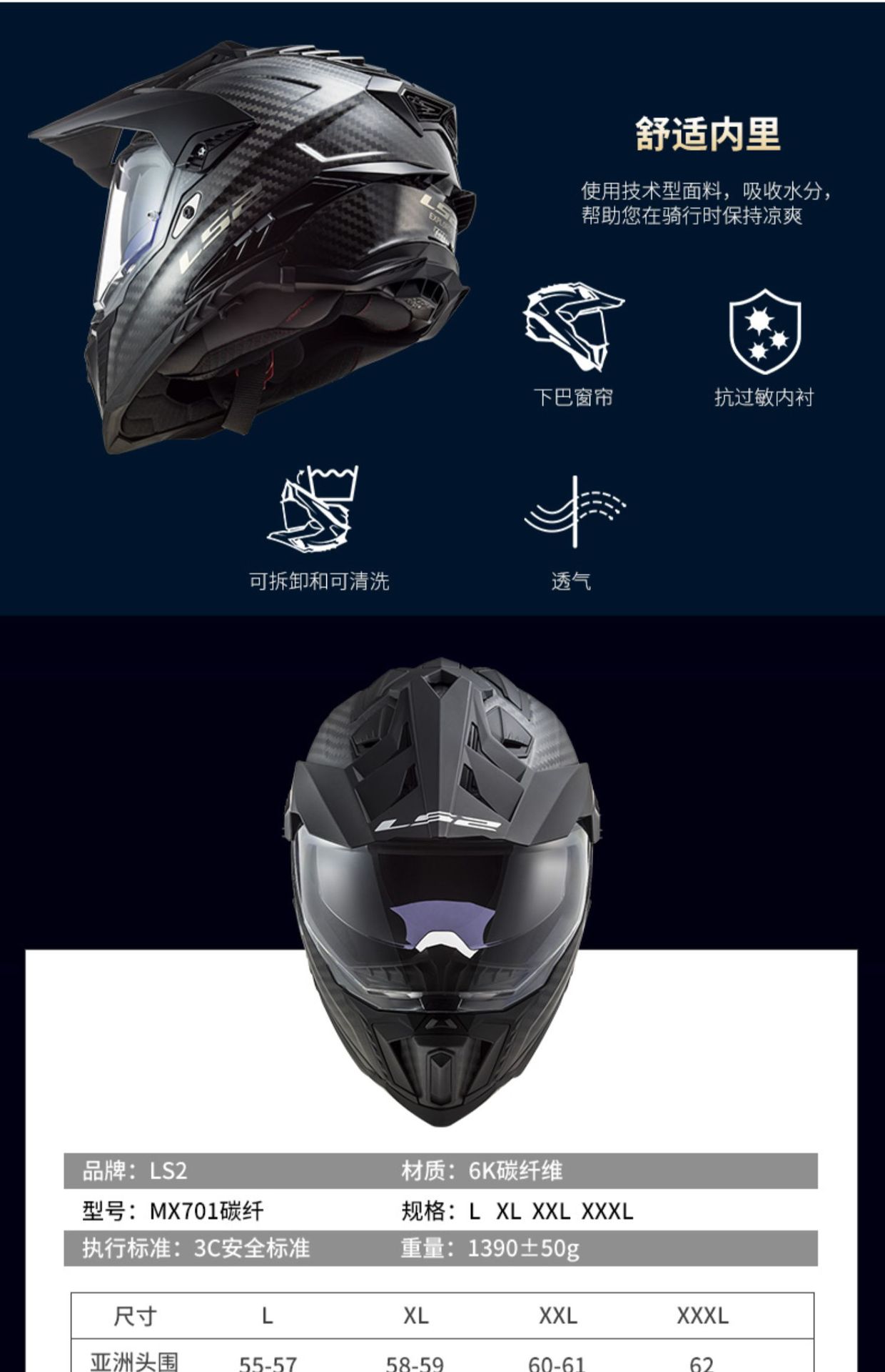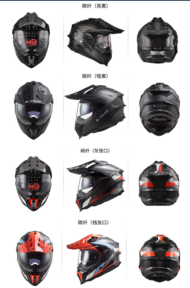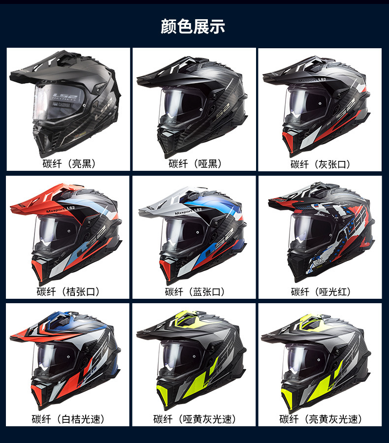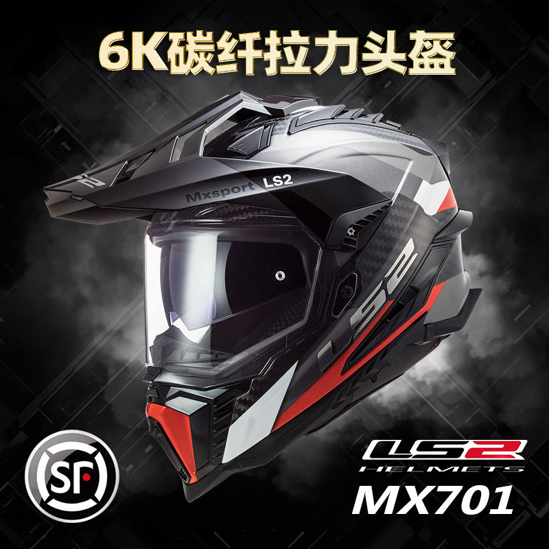 LS2MX701 탄소 섬유 풀 크로스 컨트리 헬멧 더블 렌즈 오토바이 헬멧 남성과 여성의 오토바이 풀 헬멧 안개 방지