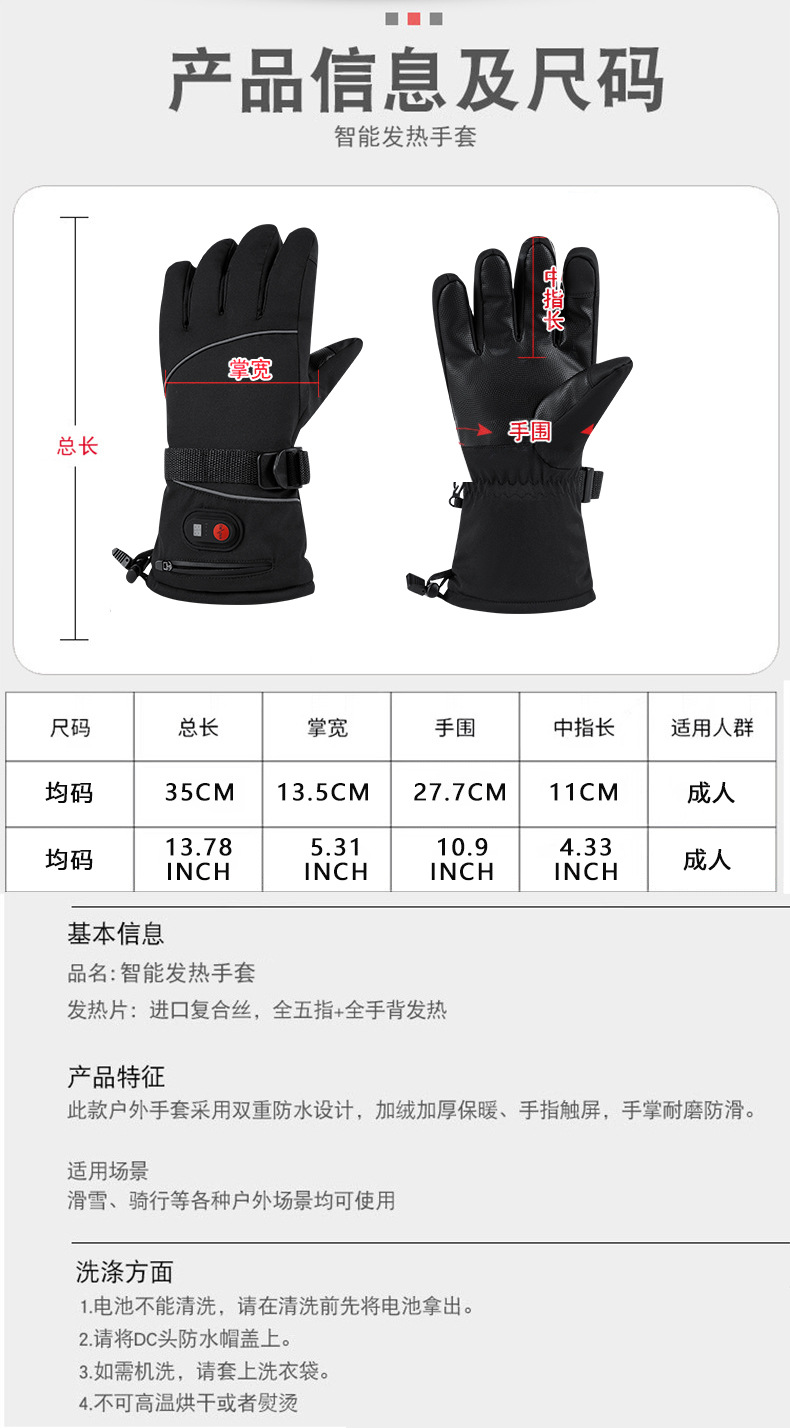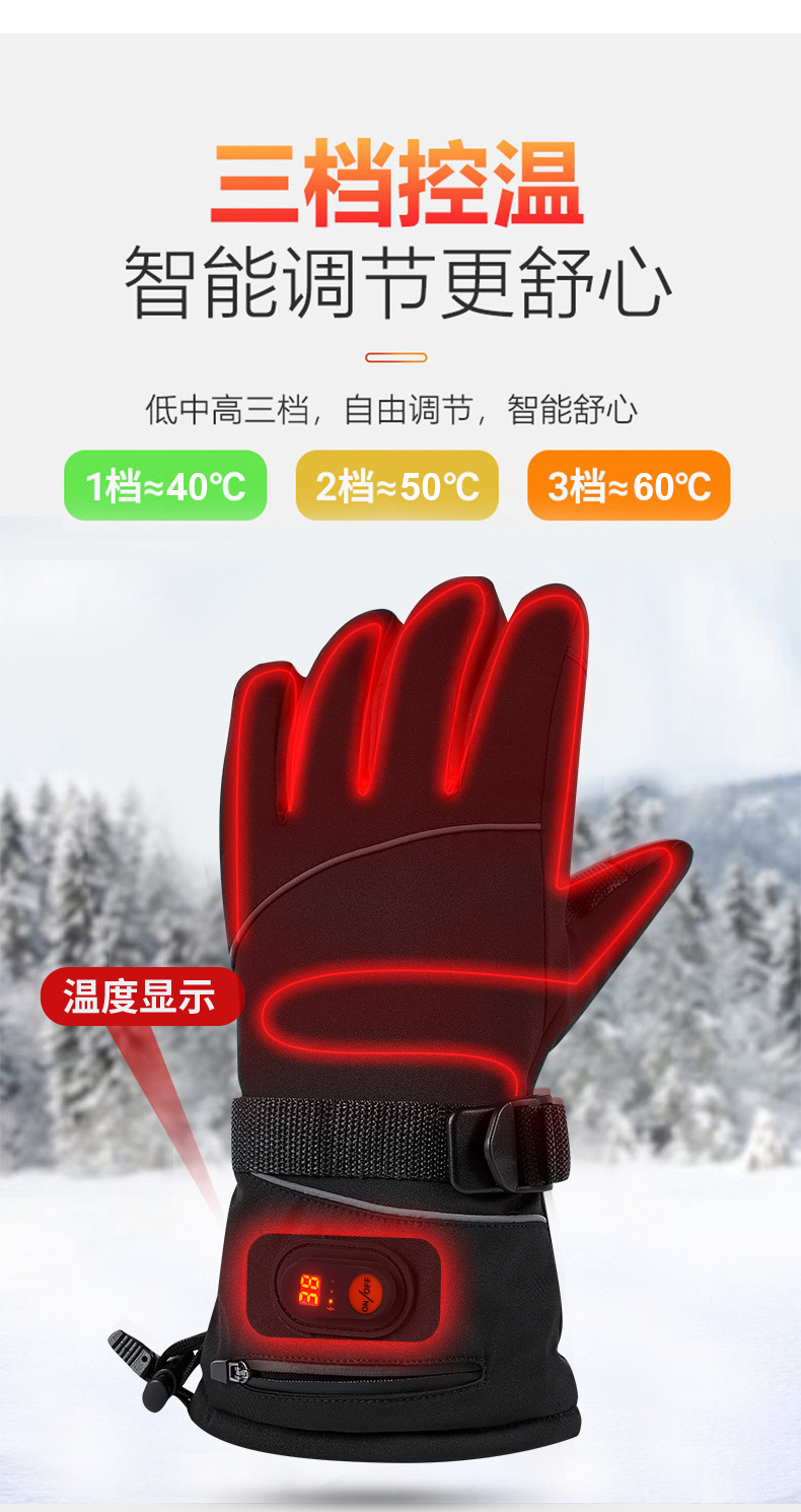겨울 난방 장갑 야외 승마 오토바이 스키 전기 난방 장갑 차가운 터치 스크린 가열 장갑