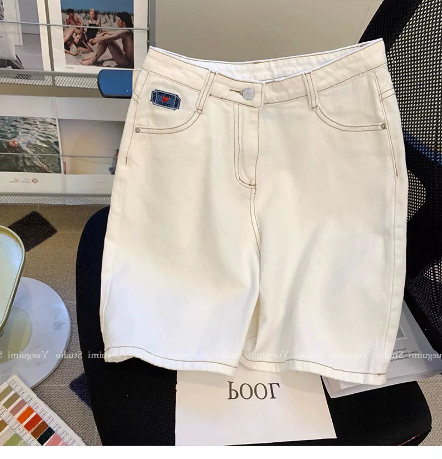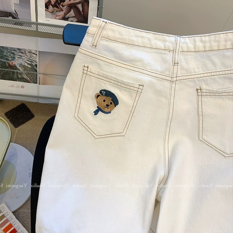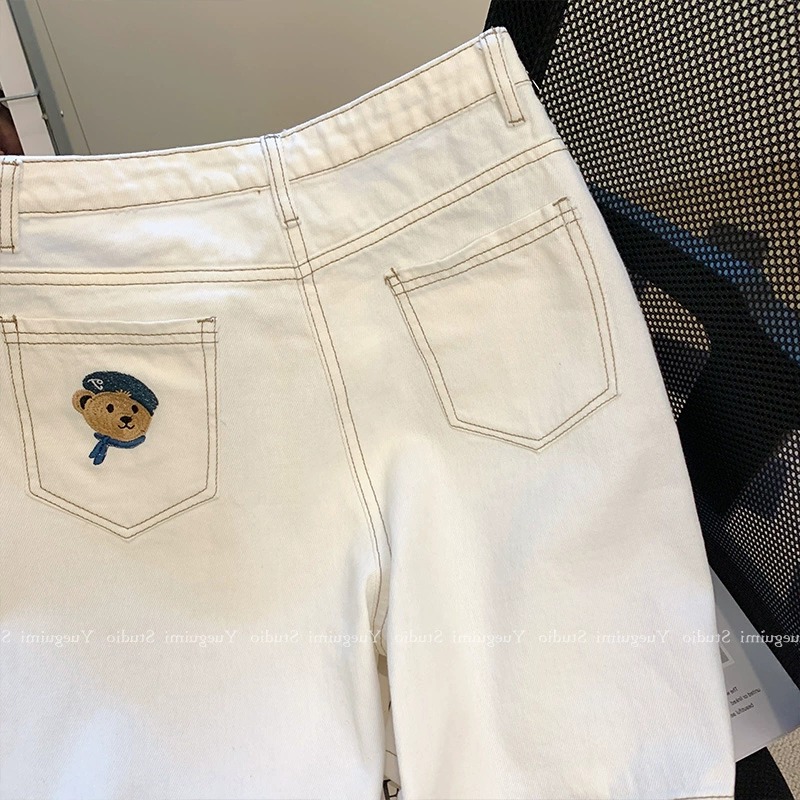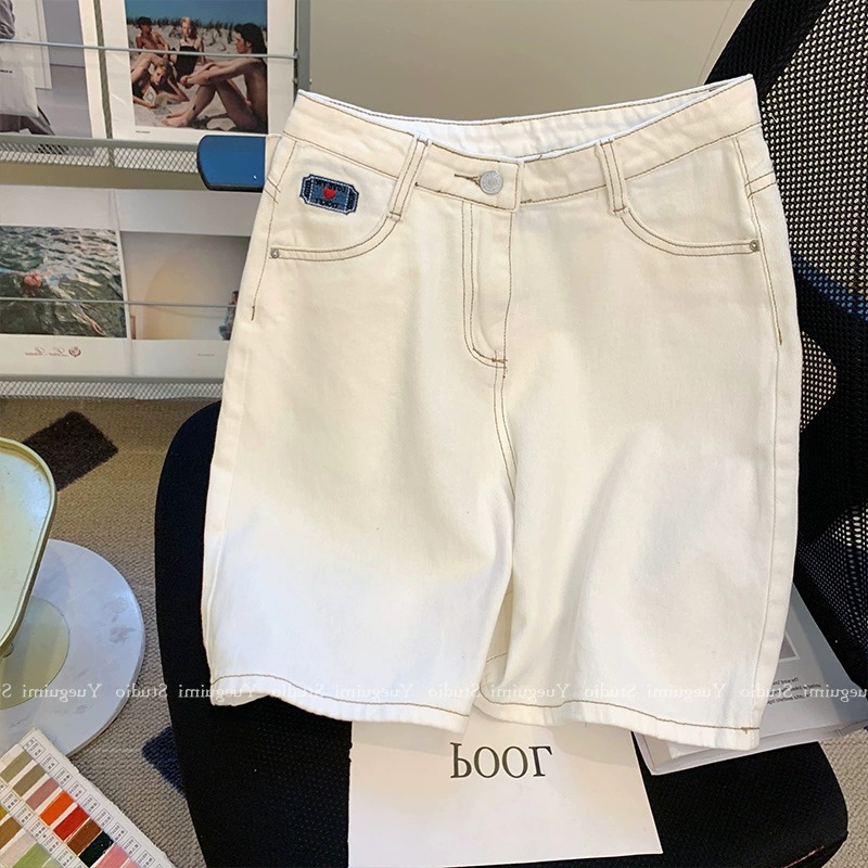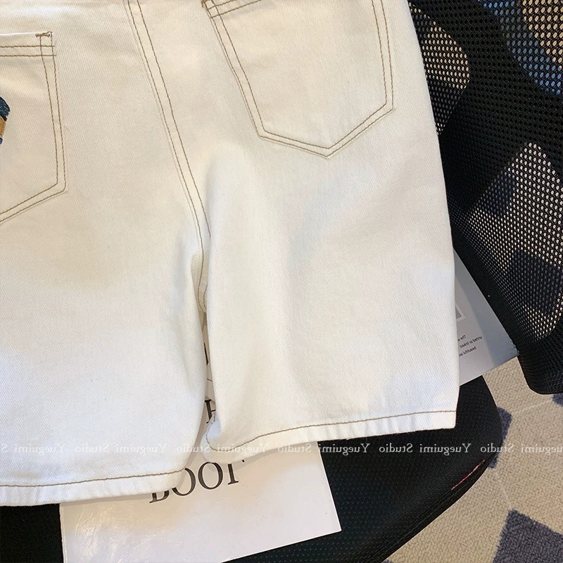 아울렛 ~ 정품 스페셜 화이트 데님 반바지 여성용 여름 하이 웨이스트 슬림 와이드 레그 팬츠 스트레이트 베어 팬츠