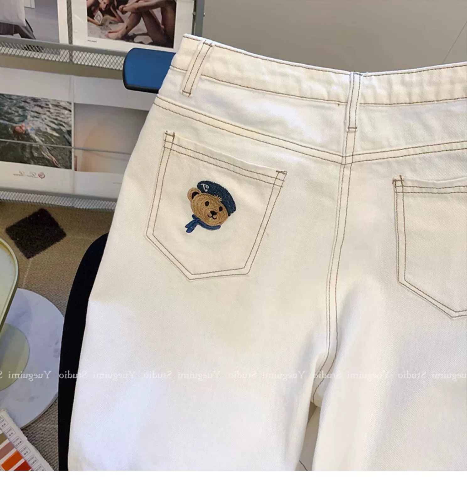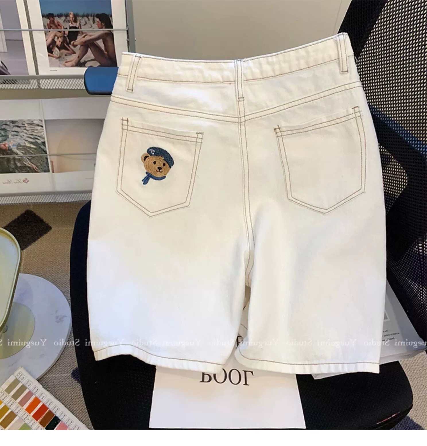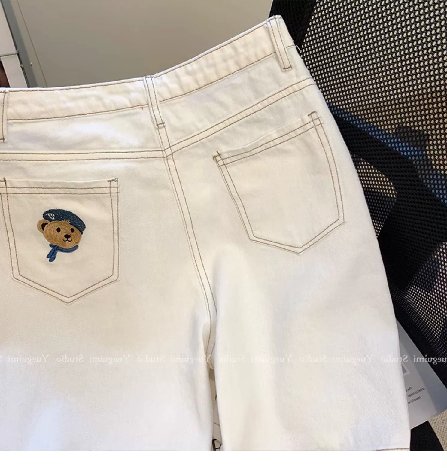 아울렛 ~ 정품 스페셜 화이트 데님 반바지 여성용 여름 하이 웨이스트 슬림 와이드 레그 팬츠 스트레이트 베어 팬츠