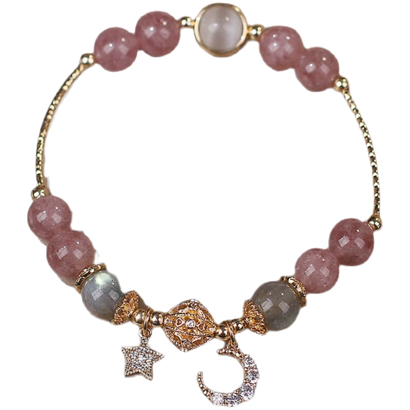 패션 엔트리 럭셔리 마노 구슬 팔찌 다이아몬드 작은 문 펜던트 팔찌 여성을위한 달콤한 우아한 틈새 디자인 팔찌