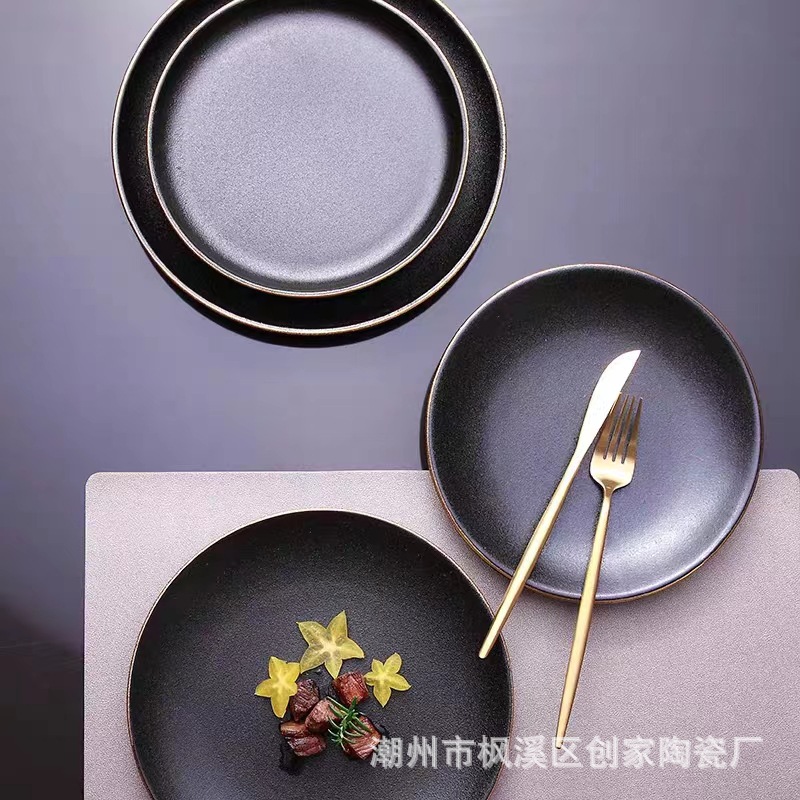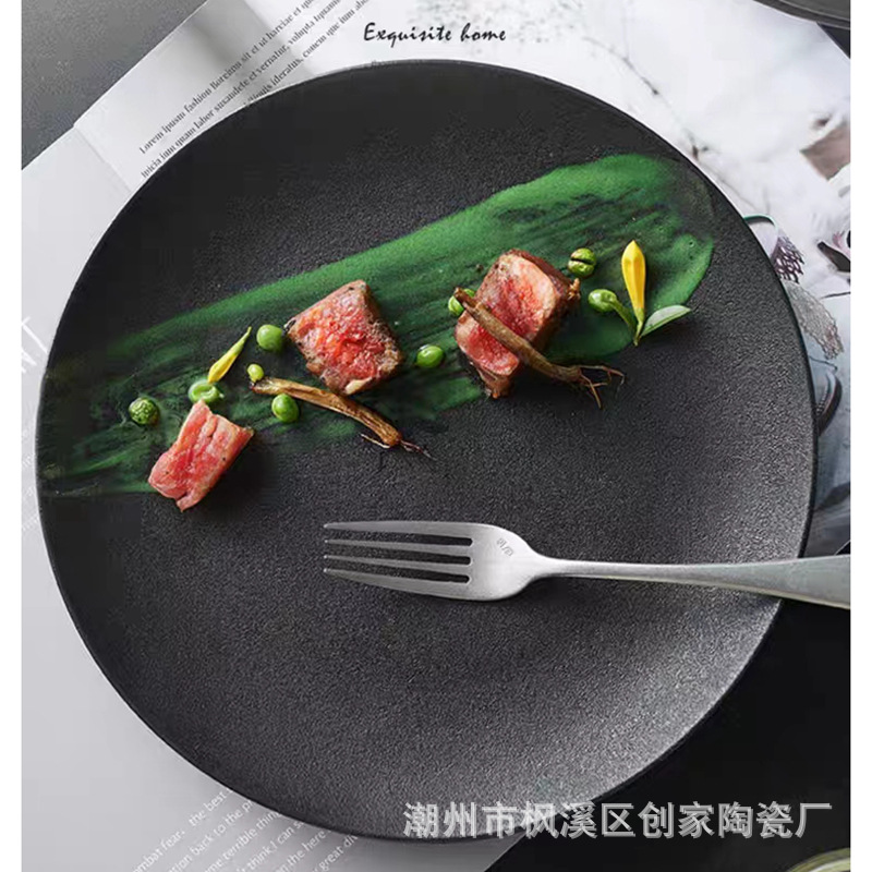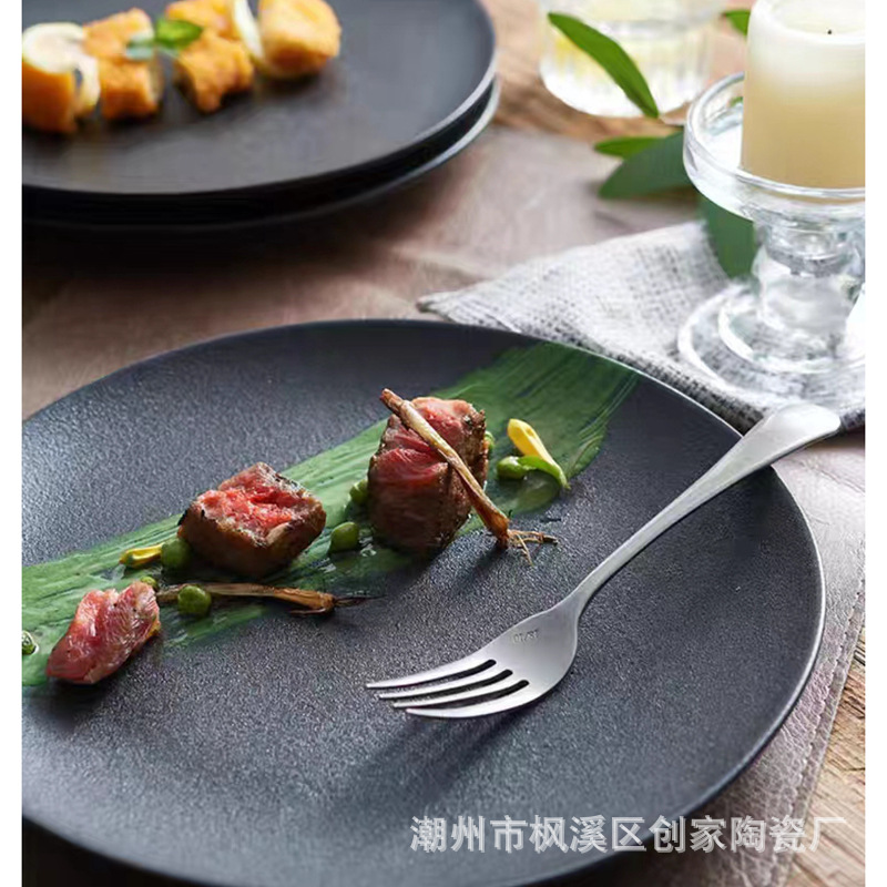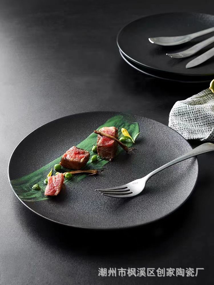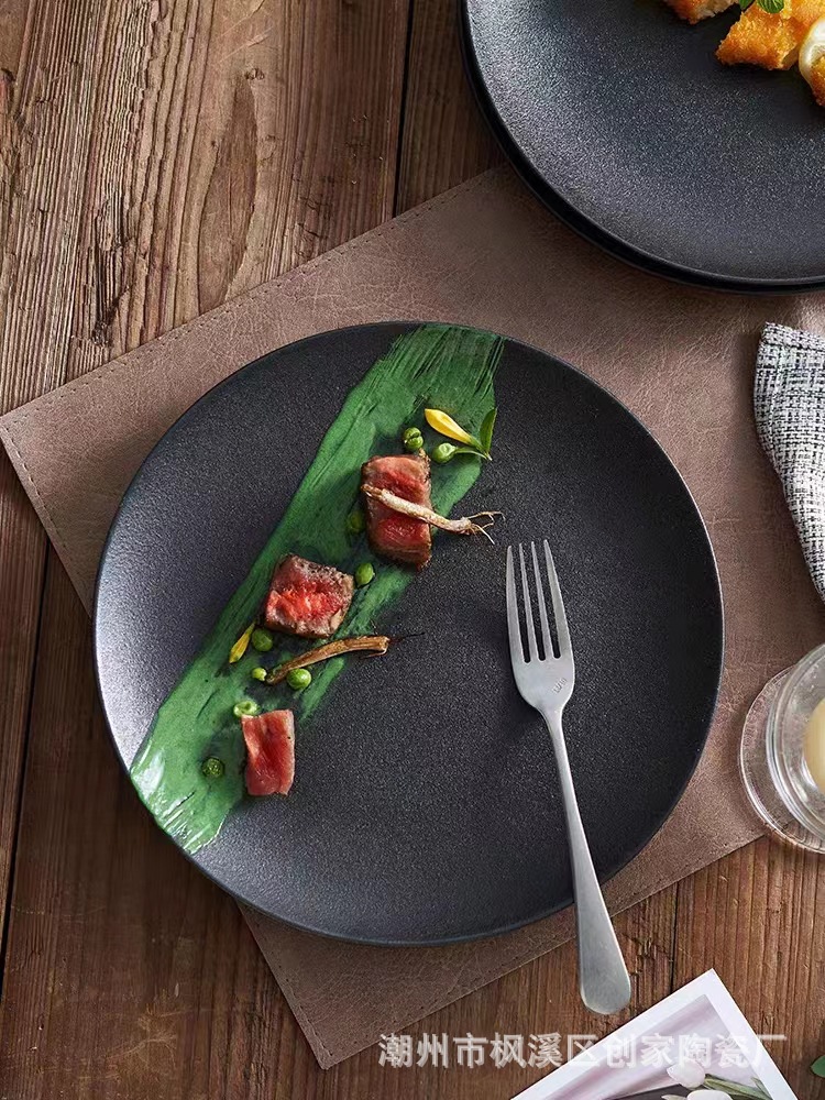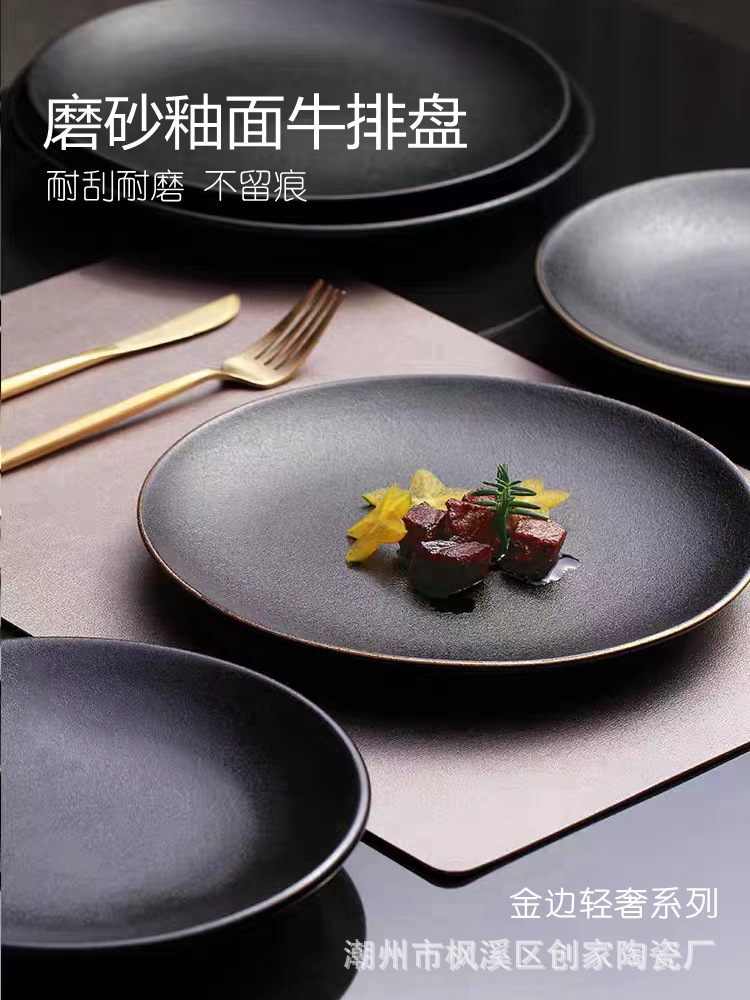 핫 세일 블랙 프로스트 스테이크 플레이트 웨스턴 푸드 식기 호텔 접시 프리미엄 센스 레스토랑 도매 크리에이티브 웨스턴 푸드 플레이트