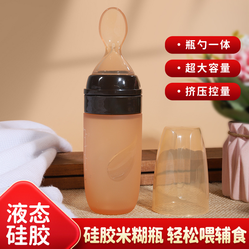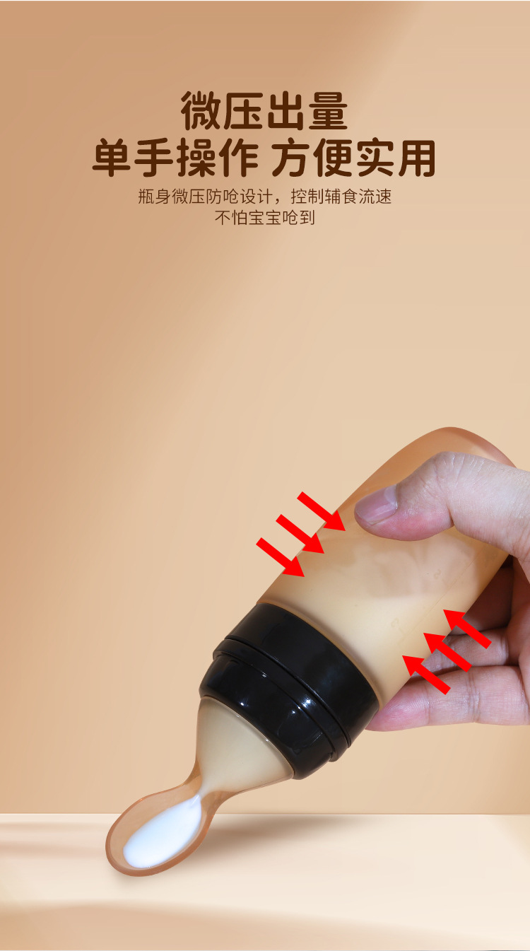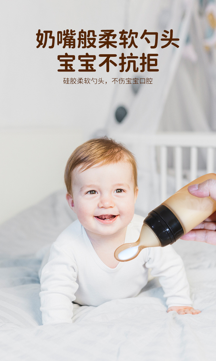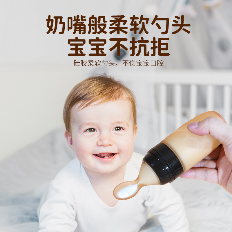 젖병형 스퀴즈식 쌀가루 실리콘 수유용 소프트 스푼 유아용 스푼 이유식 쌀가루병 어린이 보조식품 도구