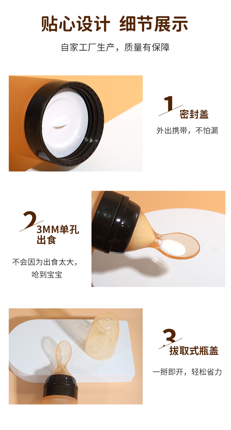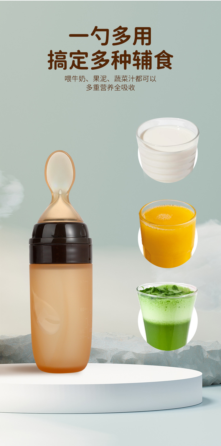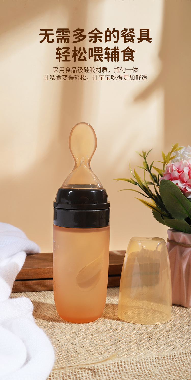젖병형 스퀴즈식 쌀가루 실리콘 수유용 소프트 스푼 유아용 스푼 이유식 쌀가루병 어린이 보조식품 도구