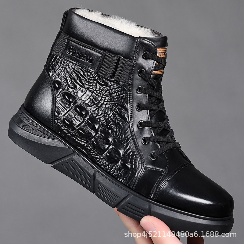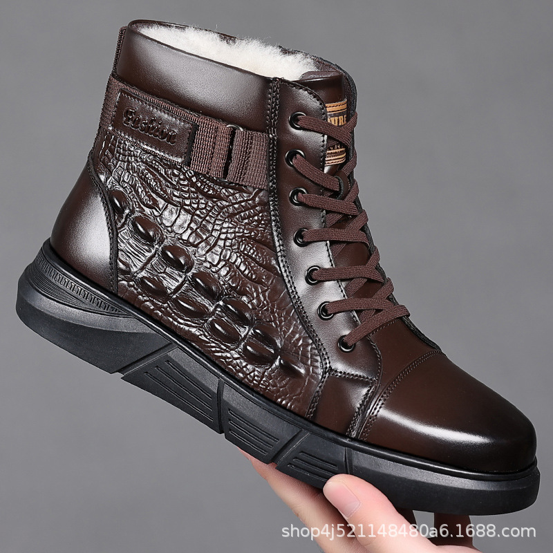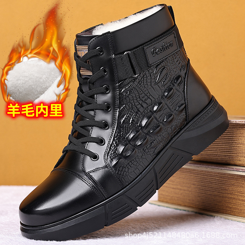 2023 겨울 기모 면화 신발 남성 가죽 신발 마틴 부츠 야외 레저 신발 남자의 스노우 부츠 아버지 두꺼운 신발