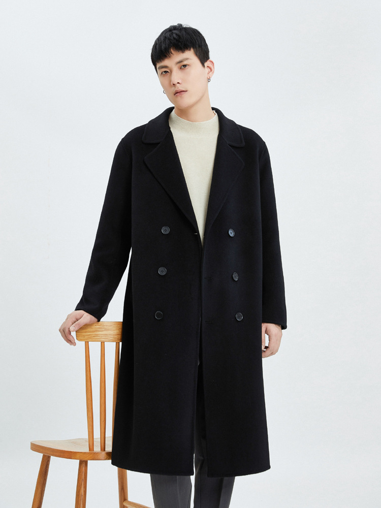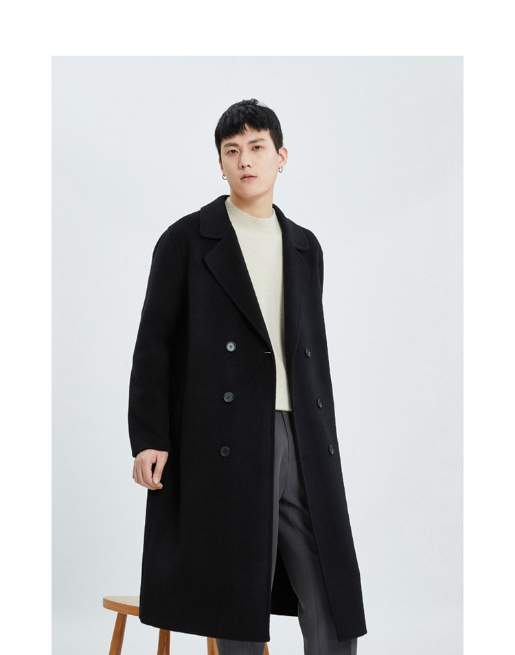 가을과 겨울 긴 무릎 길이 양면 캐시미어 코트 남성용 더블 브레스트 한국식 세트 느슨한 울 코트