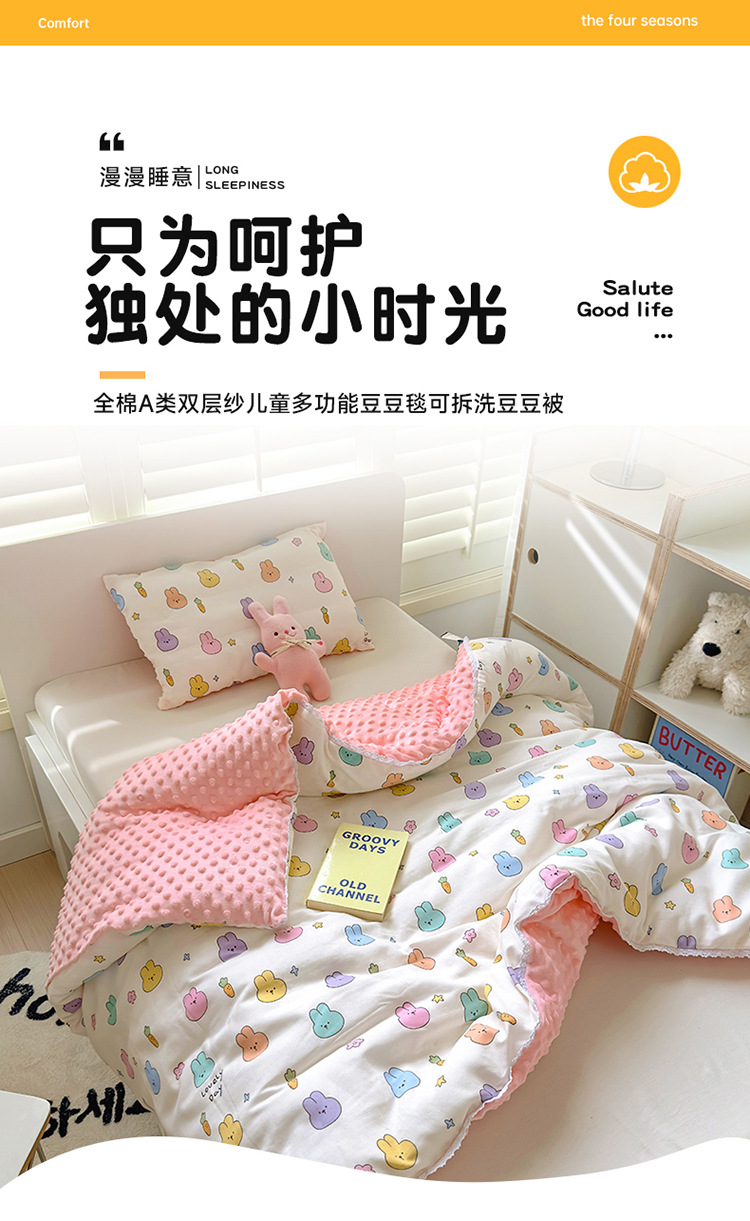 탈부착 가능한 콩알 담요, 순면 A급 이중 거즈 콩알 담요, 아기 이불, 신생아 포대기, 어린이 이불 커버