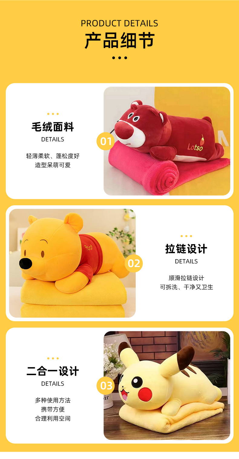 도매 귀여운 베개 이불 이중 사용 2 대 1 만화 베개 이불 이중 사용 다기능 낮잠 담요