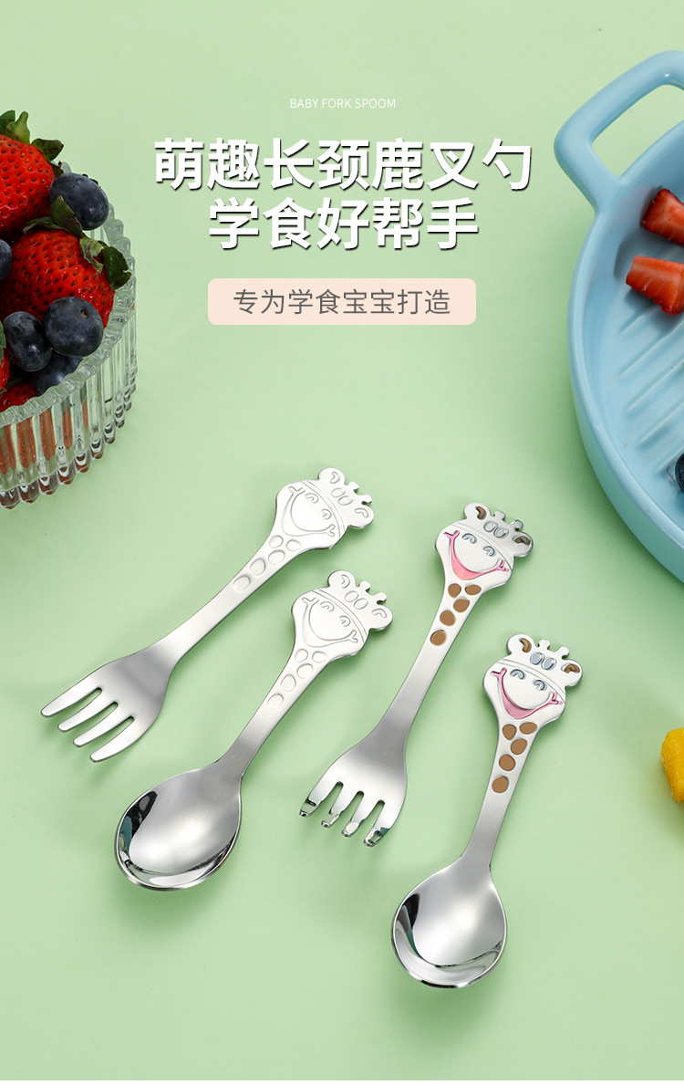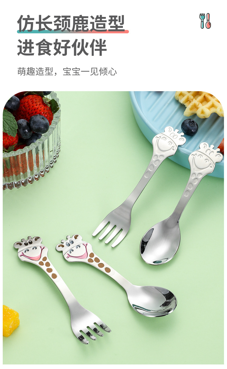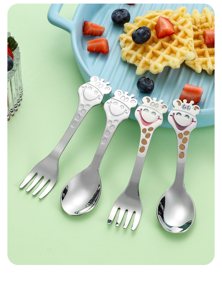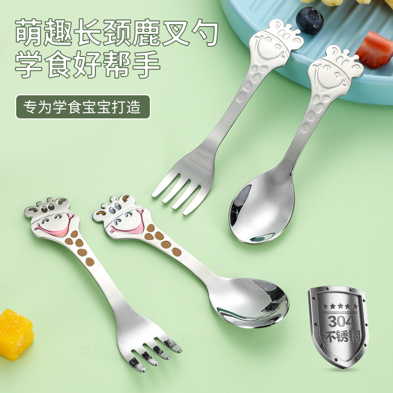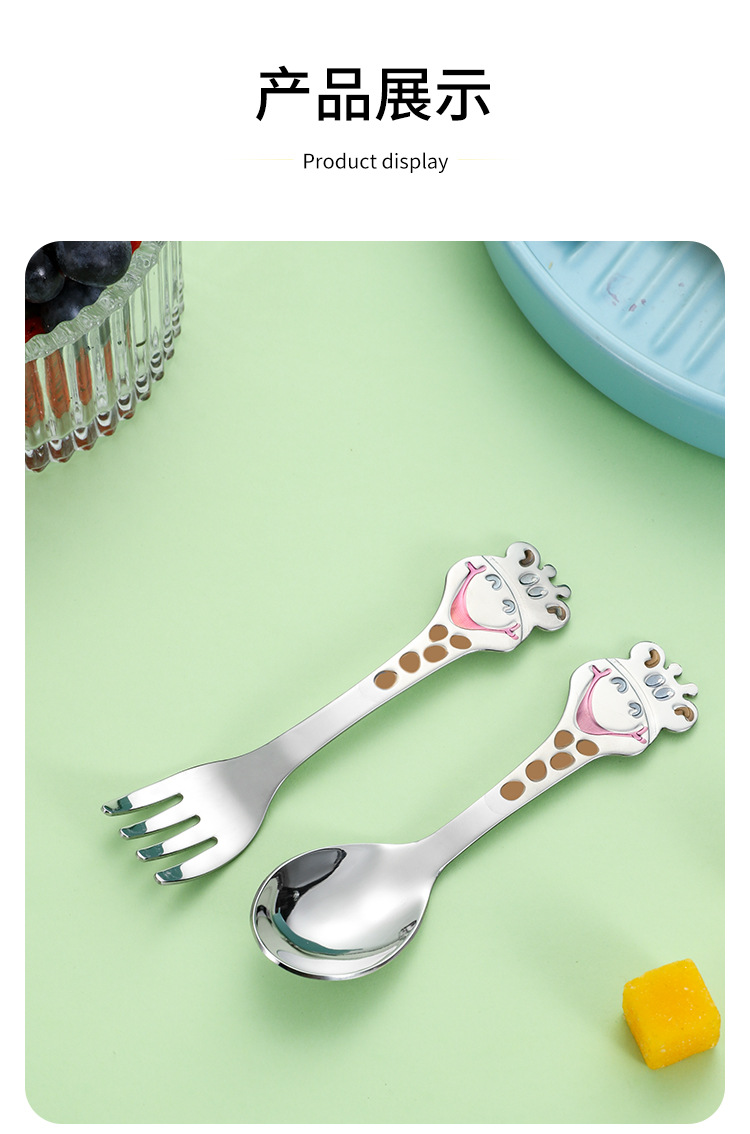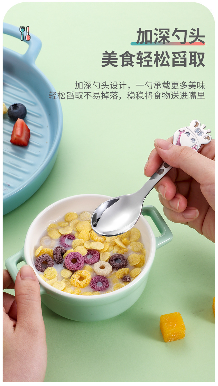 스테인레스 스틸 만화 어린이 숟가락 포크 유치원 아기 가정 수유 작은 숟가락 식기 포크 스푼