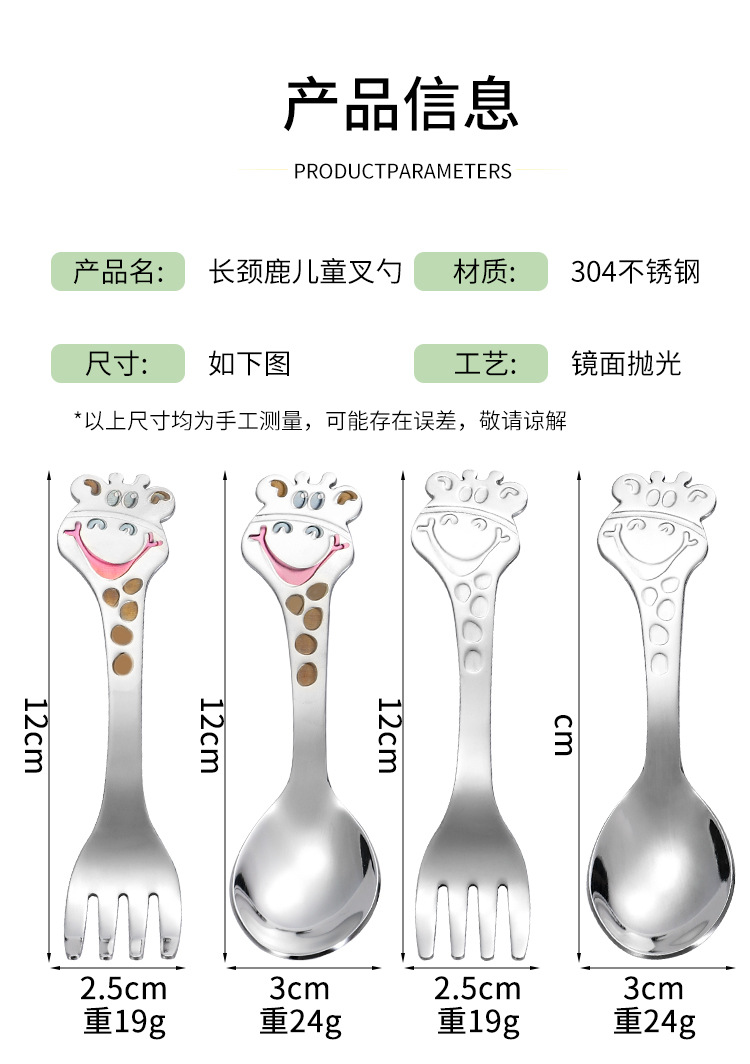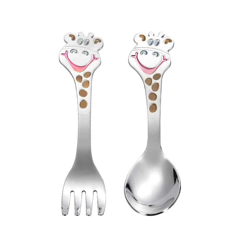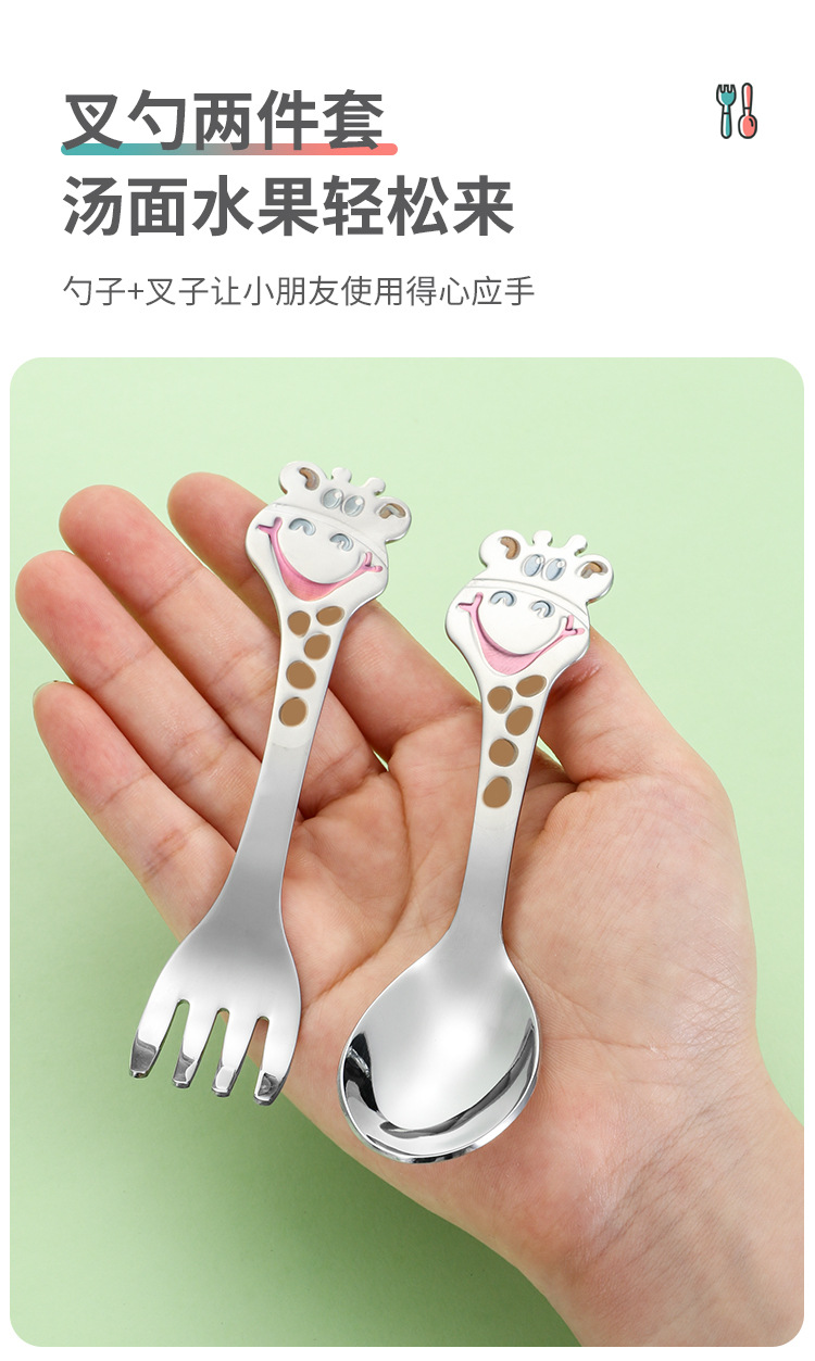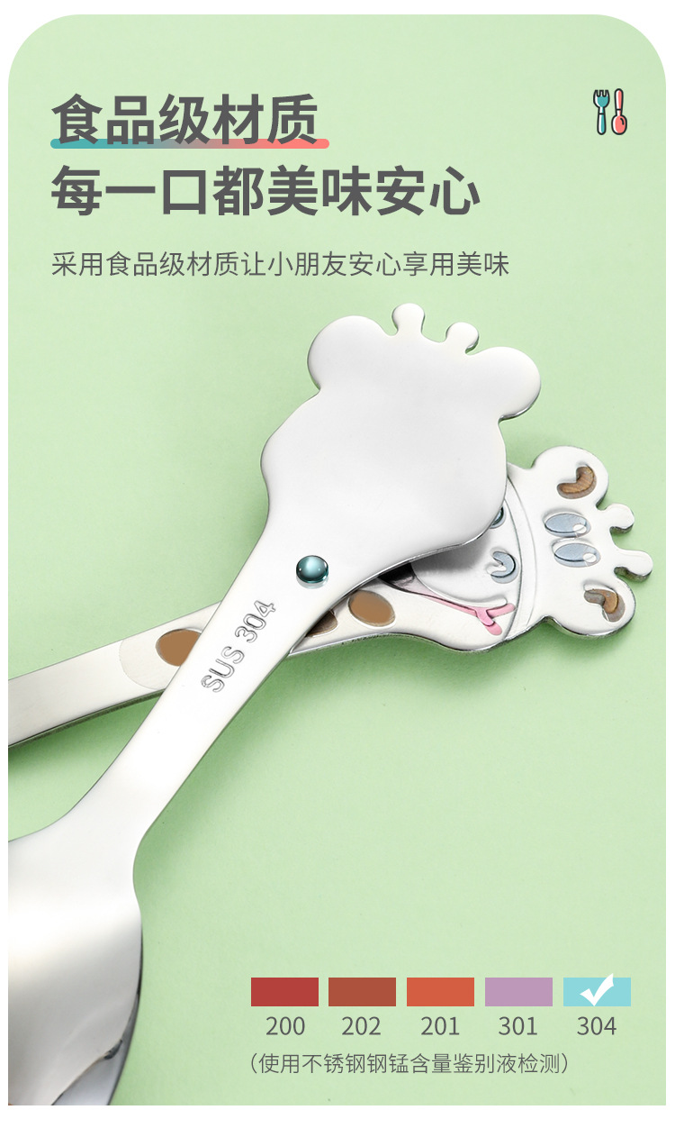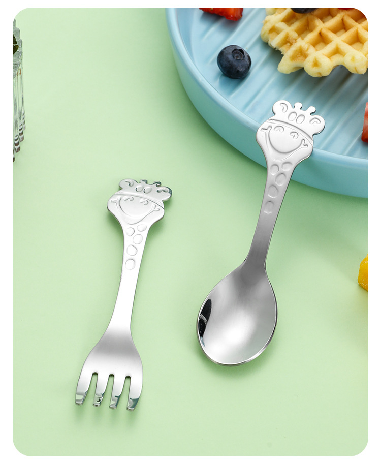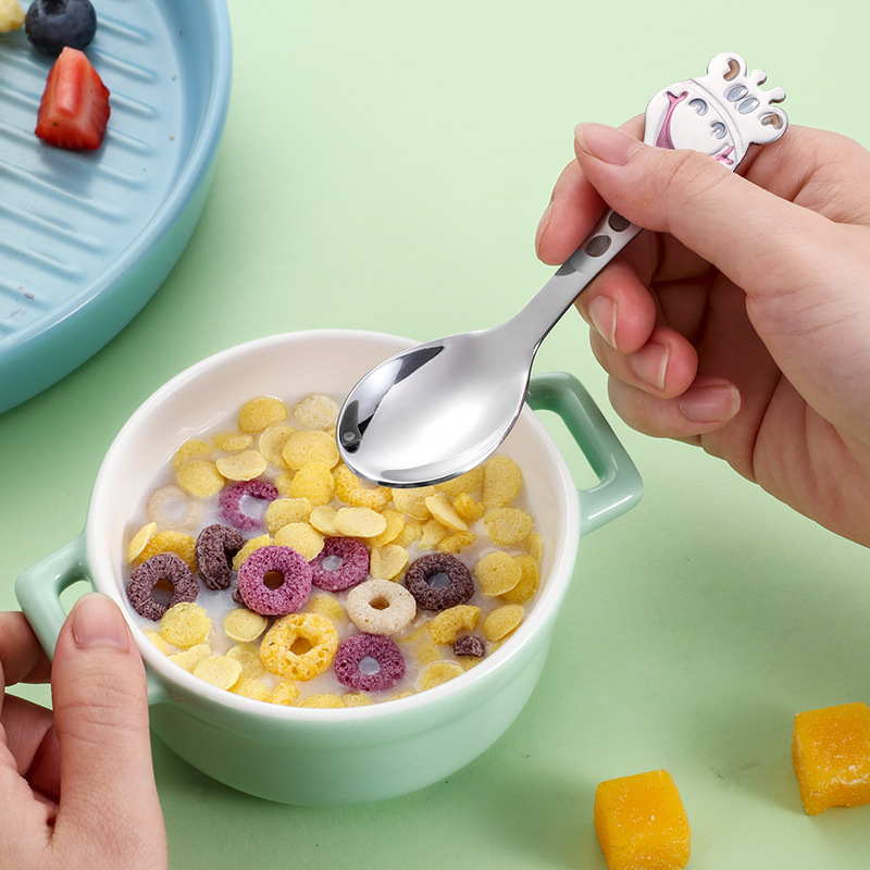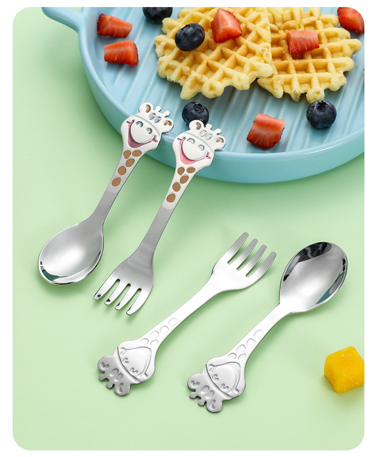 스테인레스 스틸 만화 어린이 숟가락 포크 유치원 아기 가정 수유 작은 숟가락 식기 포크 스푼