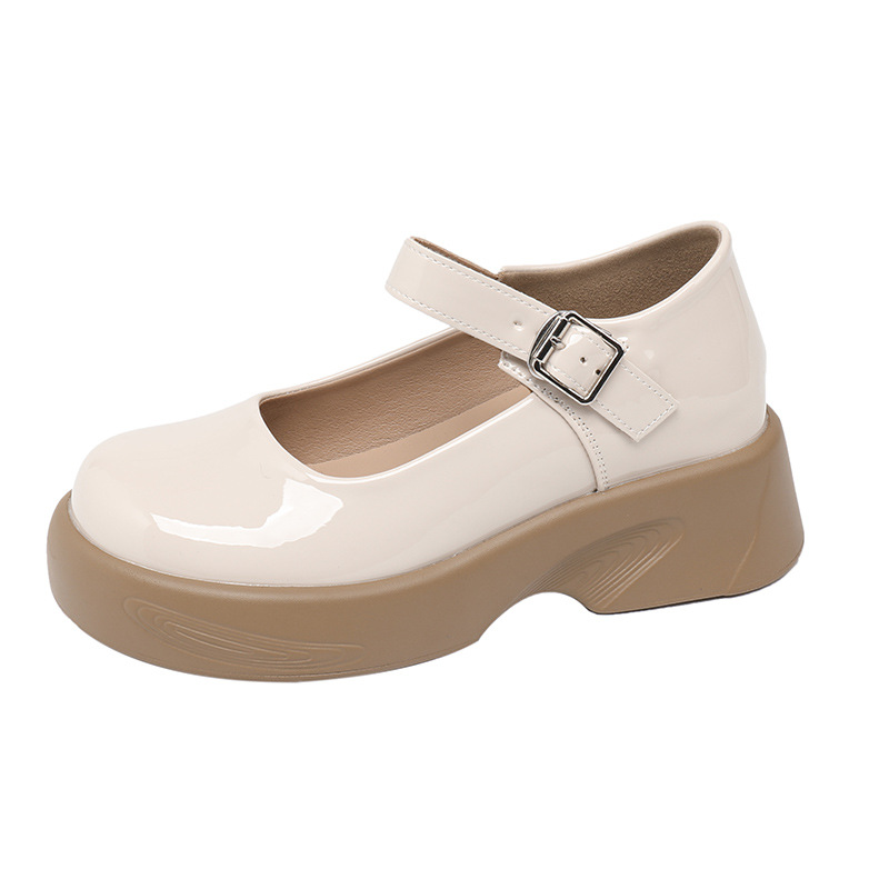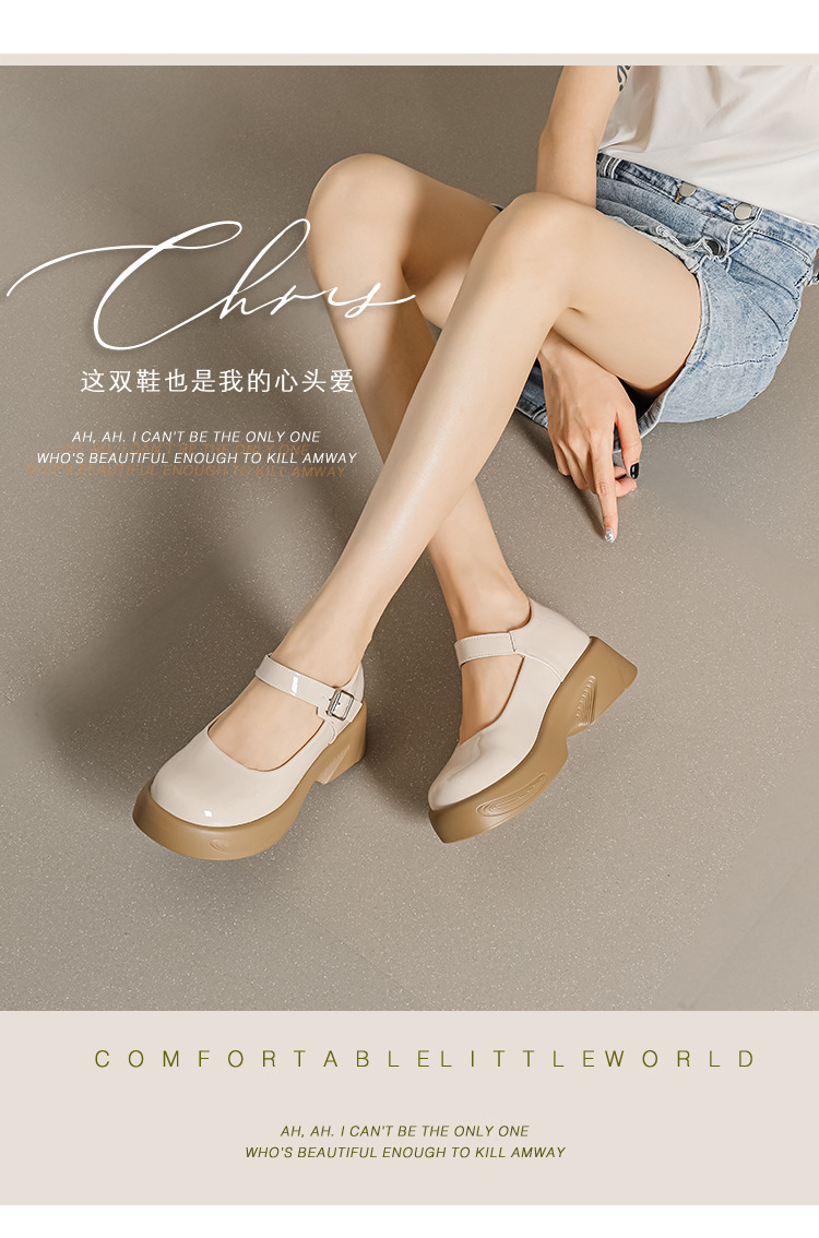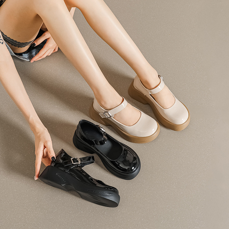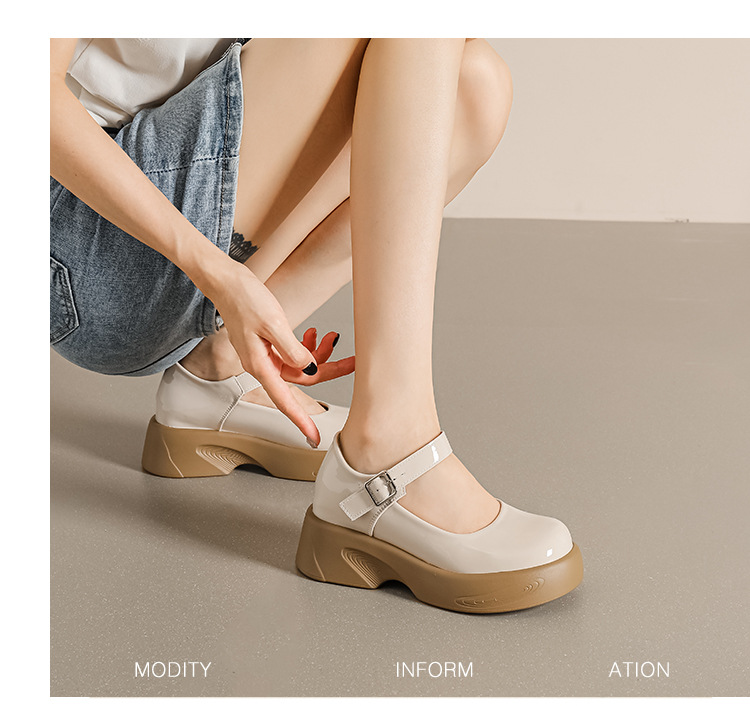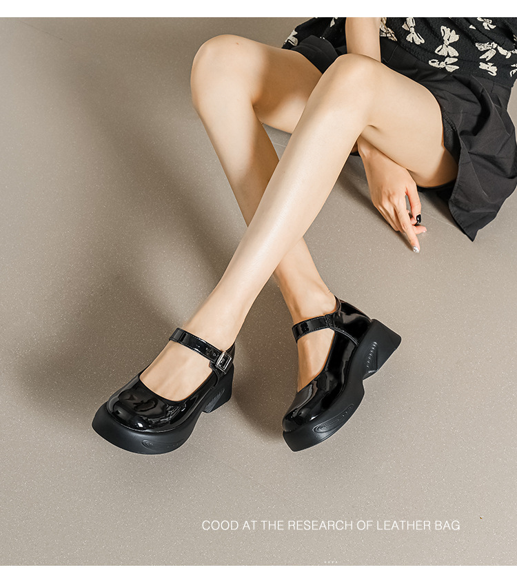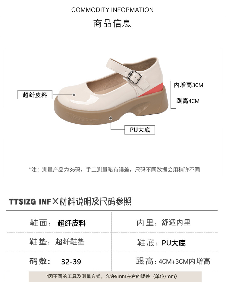 2023 새로운 두꺼운 밑창 작은 가죽 신발 내부 높이 증가 로퍼 하이힐 메리 제인 여성 신발 스몰 사이즈 323334