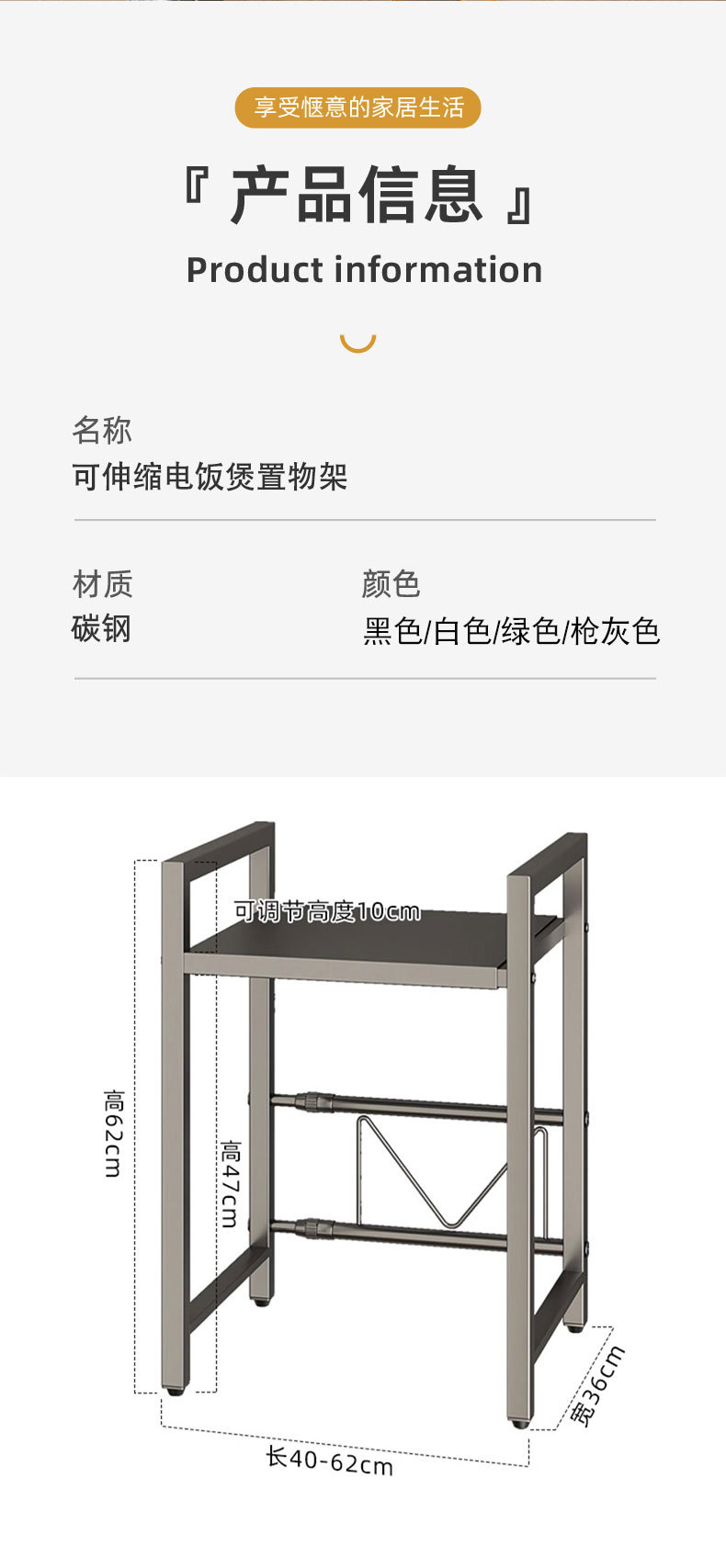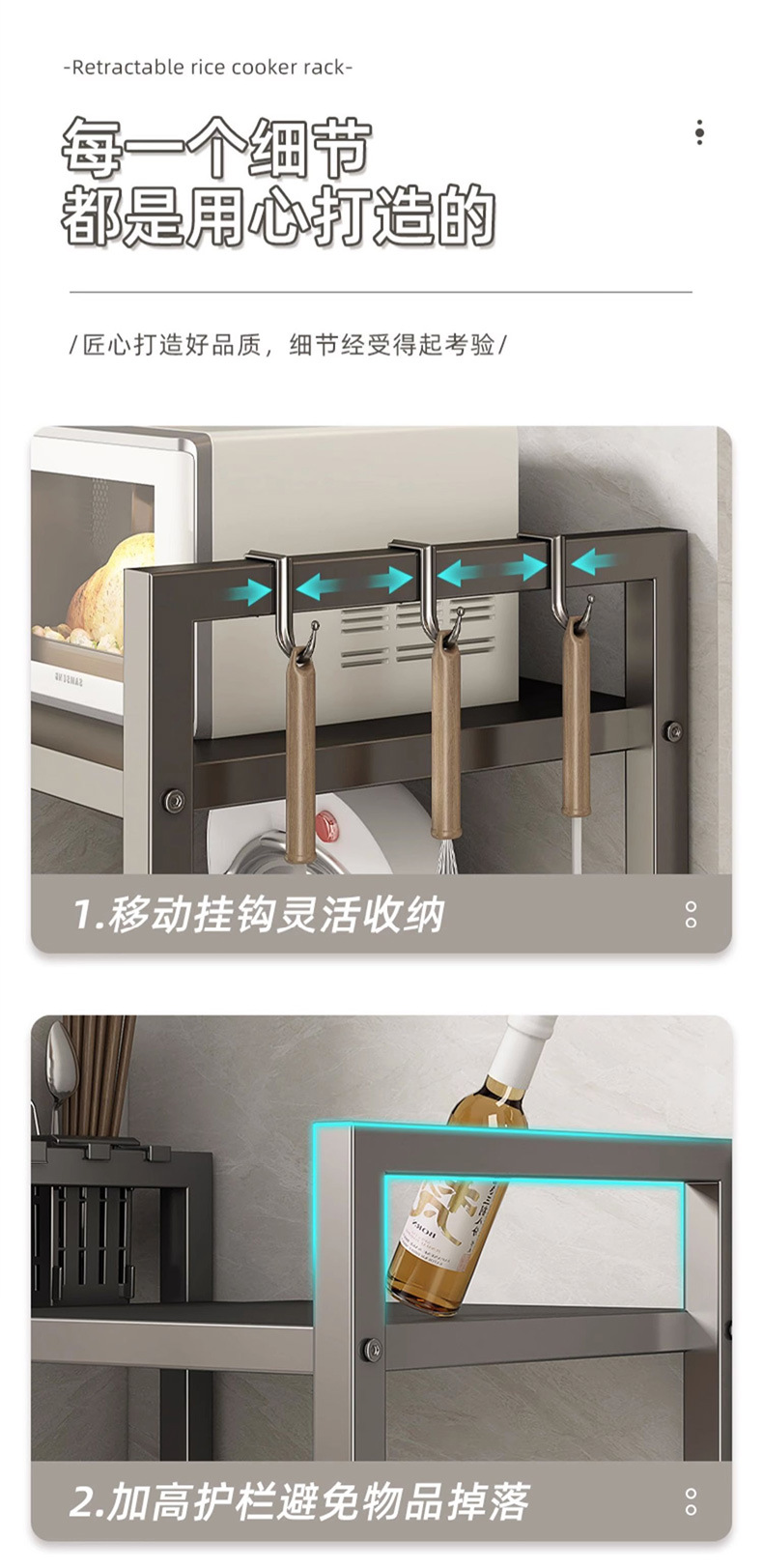 주방 보관 랙 밥솥 테이블 랙 조정 가능한 다기능 저장 가정용 전자 레인지 오븐 저장 랙