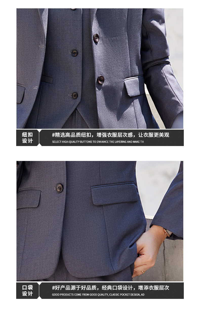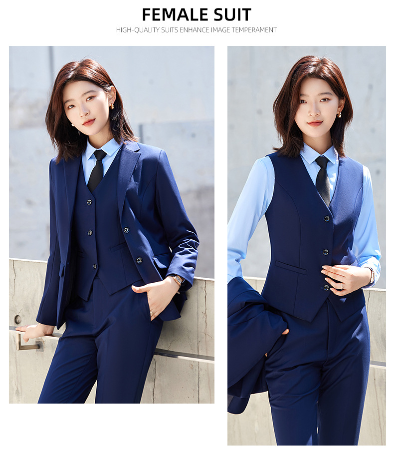 여성용 네이비 블루 슈트 + 바지 + 블루 셔츠 + 조끼