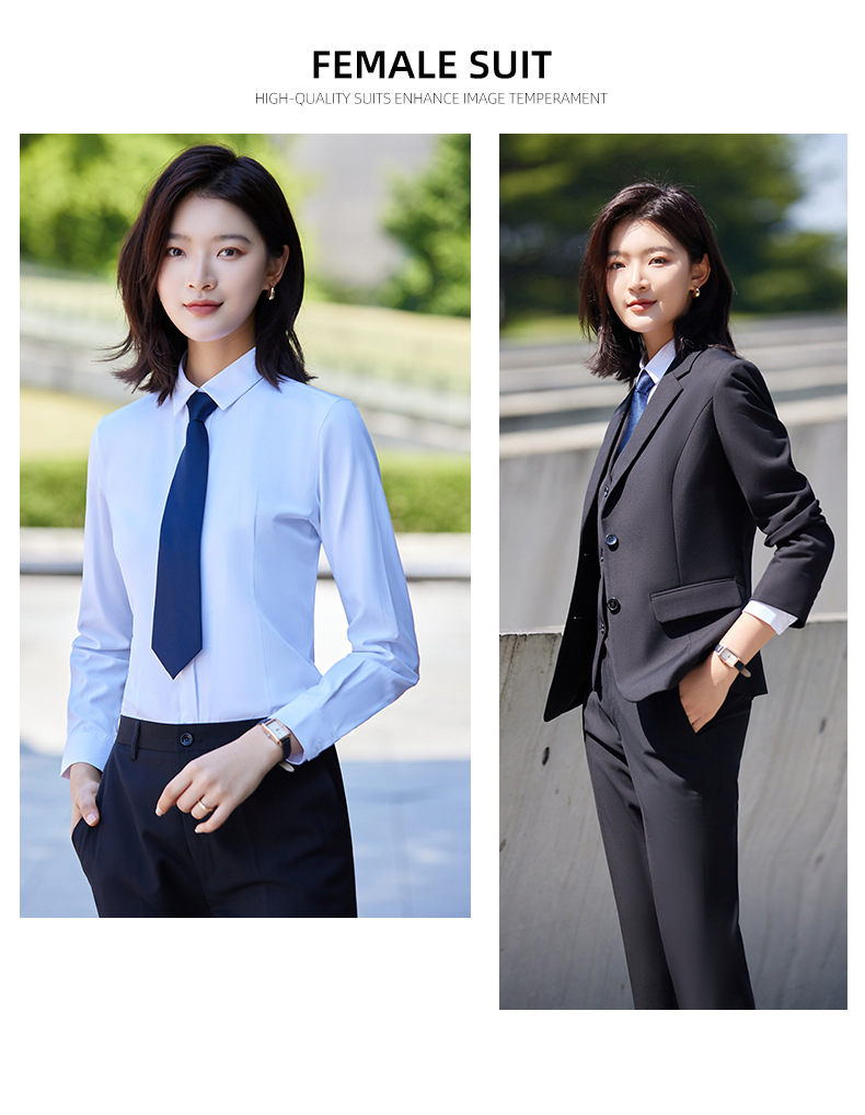 여성용 검은색 정장 + 바지 + 흰색 셔츠