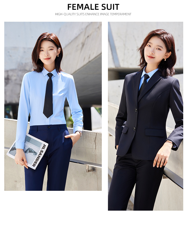 여성용 네이비 블루 슈트 + 바지 + 블루 셔츠