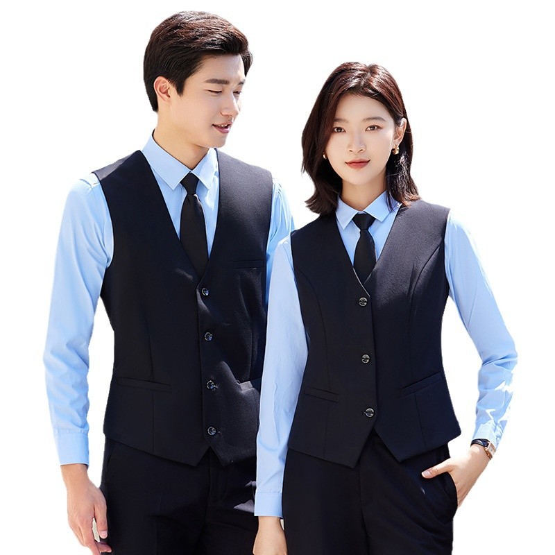 여성용 검은색 정장 + 바지 + 흰색 셔츠 + 조끼