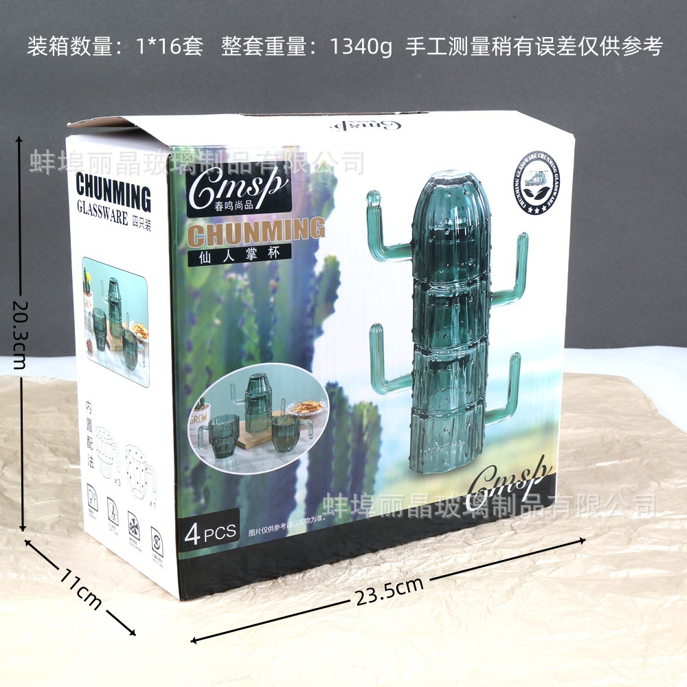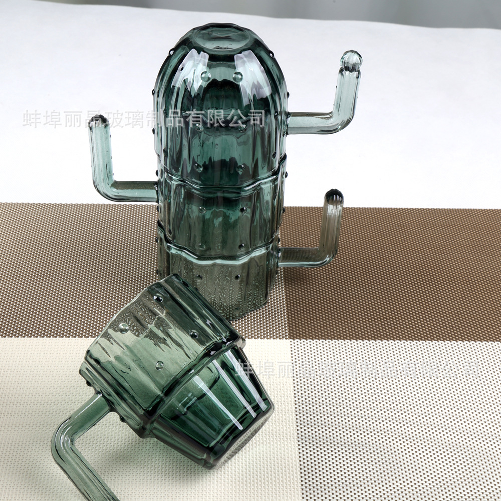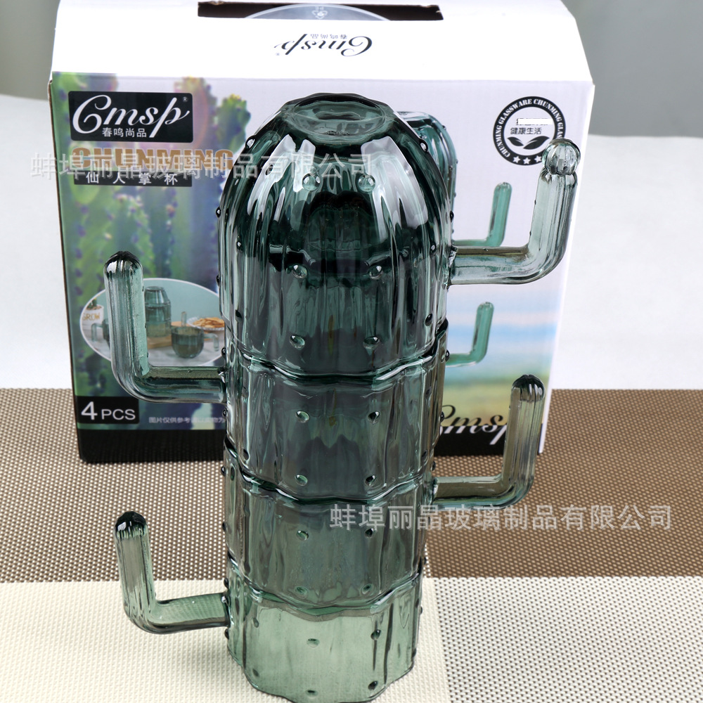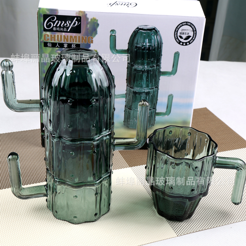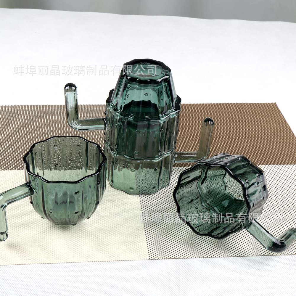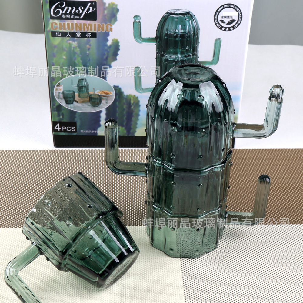 짙은 녹색 선인장 컵 세트 유리 물컵 고급스러운 가정용 식기 선물 상자 오프닝 선물 선물