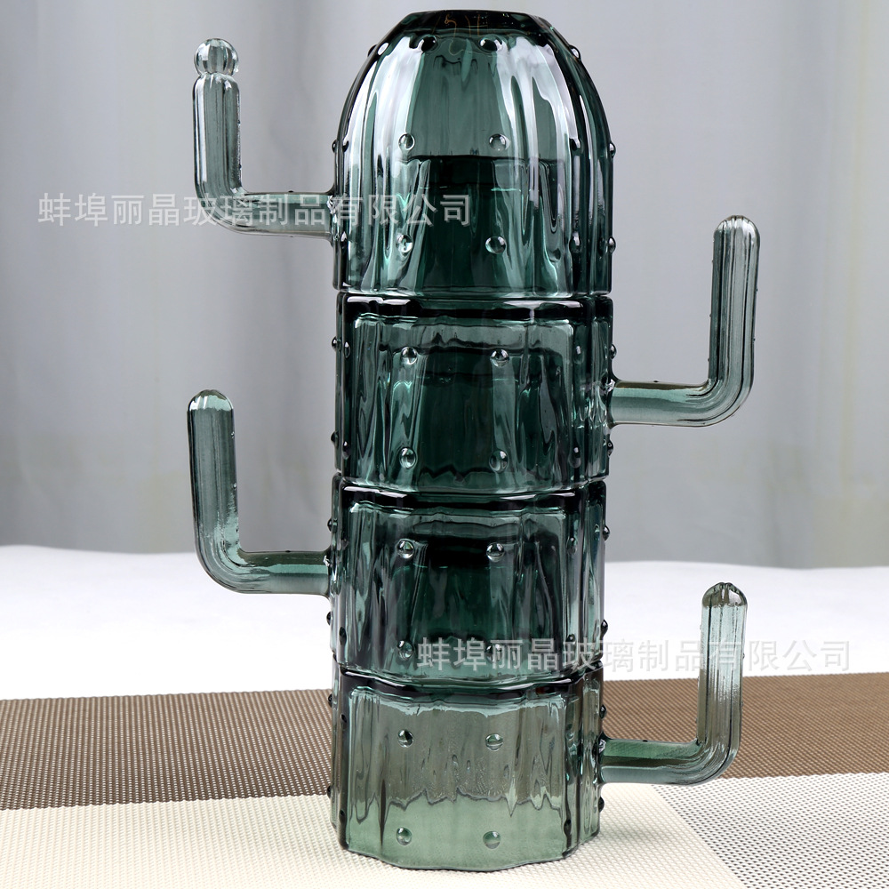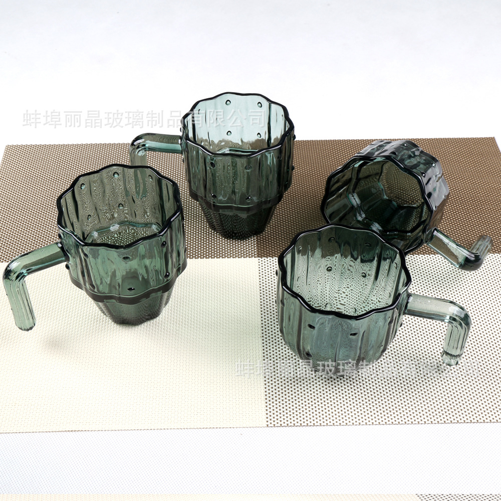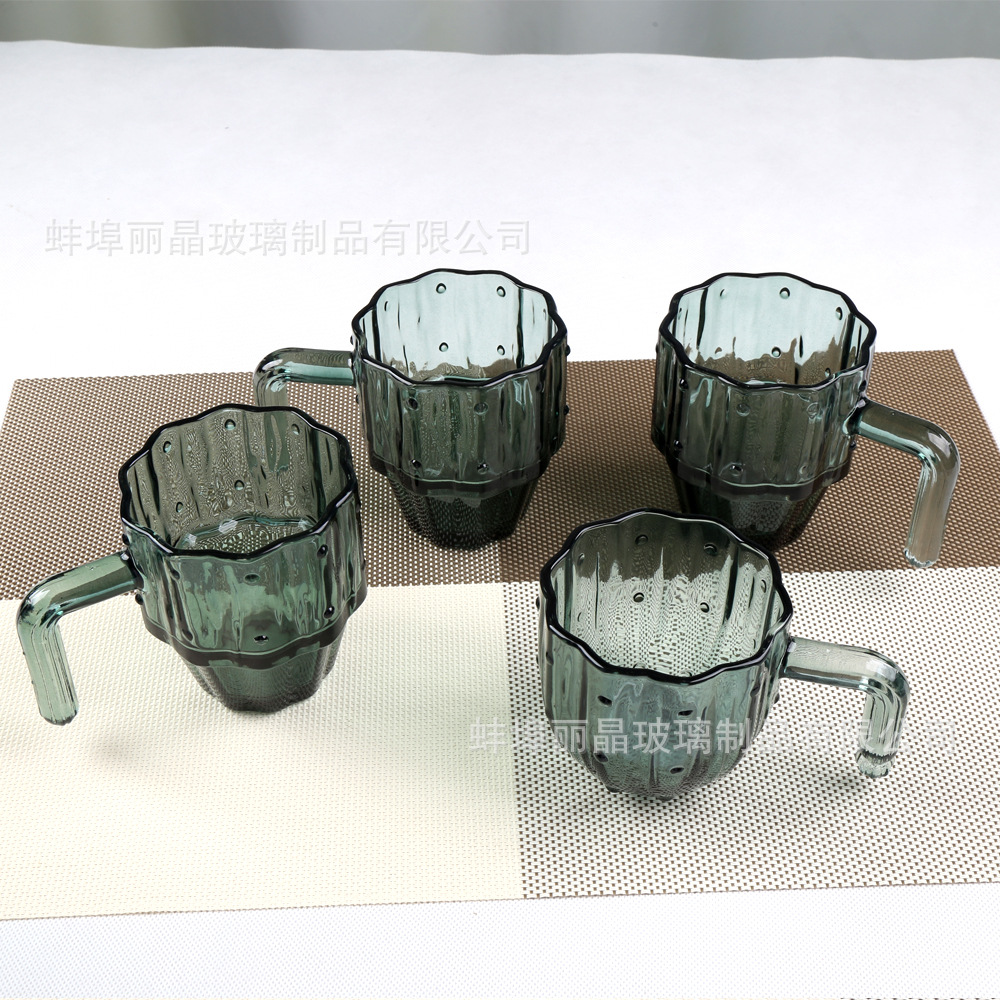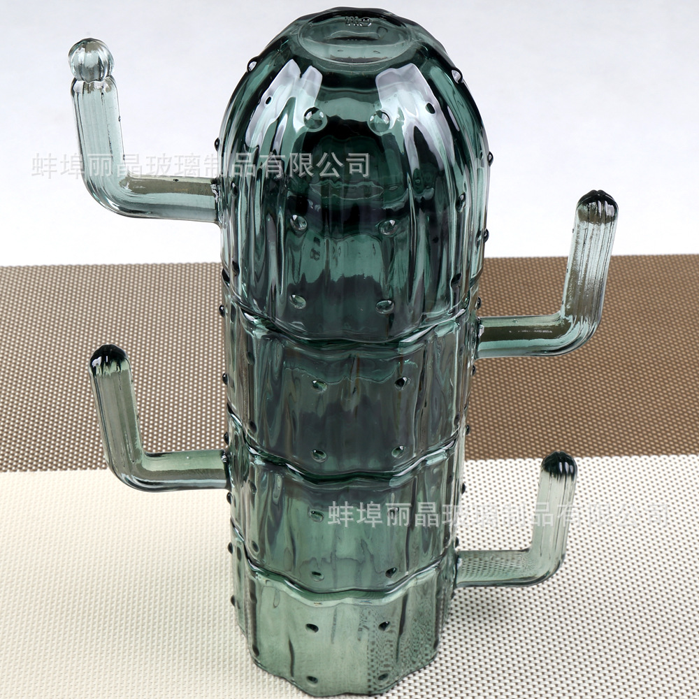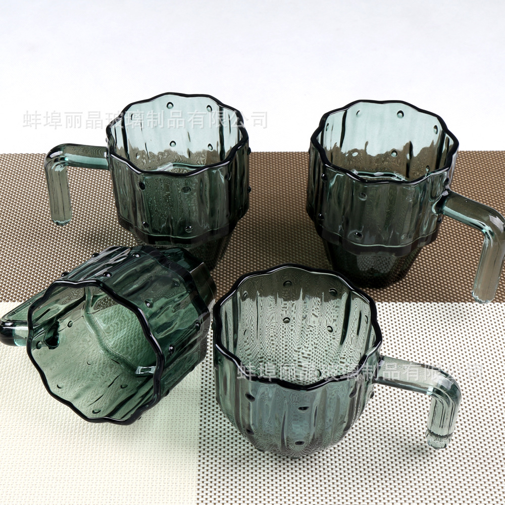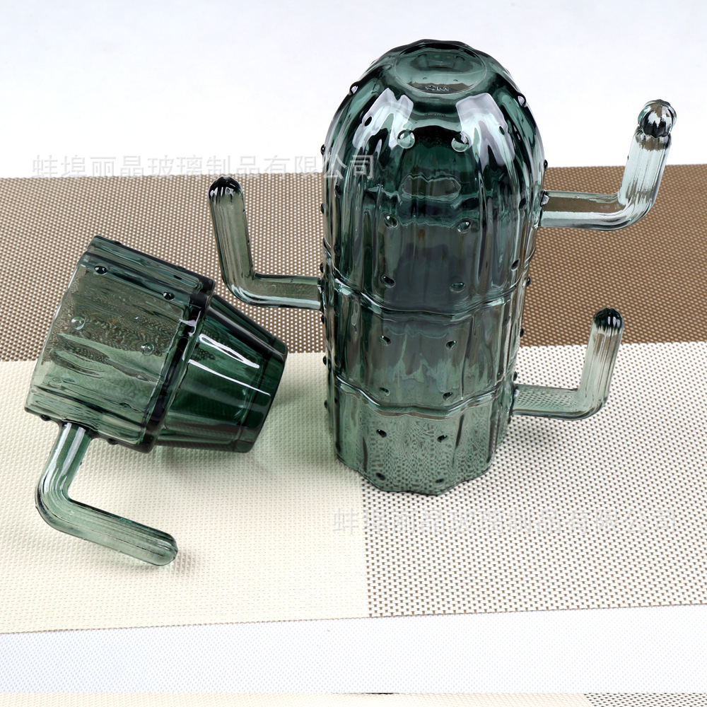 짙은 녹색 선인장 컵 세트 유리 물컵 고급스러운 가정용 식기 선물 상자 오프닝 선물 선물